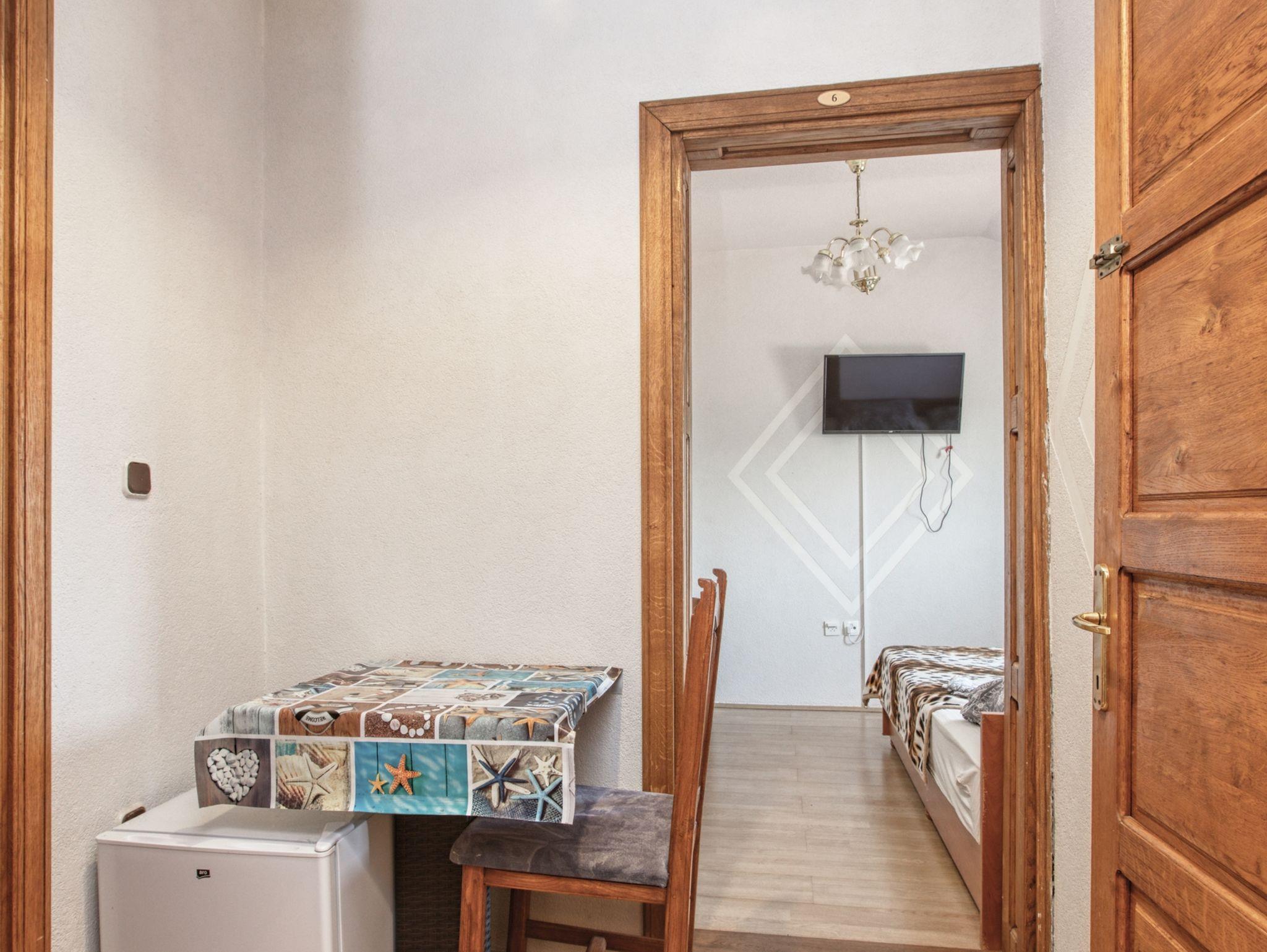 Zimmer bietet Platz für 3 Gäste. Die Betten sind in Schlafzimmern, die es 1 gibt, innerhalb einer Gesamtfläche von 19m2, angeordnet. Es ist erlaubt, Speisen auf dem Gemeinschafts-Grill vorzubereiten. In der Unterkunftseinheit besteht die Möglichkeit des Mitbringens von Haustieren gegen Aufpreis. Die reservierte Unterkunftseinheit ist ein Zimmer mit eigenem Badezimmer ohne die Möglichkeit der Nutzung einer Küche. Die reservierte Unterkunftseinheit verfügt über einen gemeinsamen Balkon. Unterkunftseinheit hat Räume, die von dem Rest der Einheit abgetrennt werden. IM PREIS INBEGRIFFEN: Kurtaxe, Endreinigung, Klimatisierung, Parkplatz, Internet. VERBINDLICHE ZUSÄTZLICHE KOSTEN: Aufzahlung für Kurzaufenthalte (prozentualer Zuschlag pro Nächtigungsanzahl: 30% - 1, 20% - 2, 10% - 3). UNVERBINDLICHE ZUSÄTZLICHE KOSTEN: Halbpension (15,00 €, 50% Nachlass für Kinder zwischen 4 und 12 Jahren, Kinder bis 4 Jahre sind frei.), Wäschewaschen (5,00 € Waschen), Haustiere (10,00 € pro Nacht), Fahrrad (10,00 € täglich (pro Stück)). Die Verfügbarkeit zusätzlicher Dienstleistungen in Ihrem reservierten Termin und die Preise derselben (falls nicht aufgeführt) müssen im Voraus überprüft werden. Zusätzliche Dienstleistungen die in der Zahlungsaufforderung nicht aufgeführt sind werden direkt beim Vermieter bezahlt, angenommen der Gast nutzt auch diese. Ermäßigung auf den Grundpreis: Gratistag 14=13 (bei einem Aufenthalt von 14 Tagen oder mehr erhalten Sie einen Gratistag für den Aufenthalt bis 31.12.26).