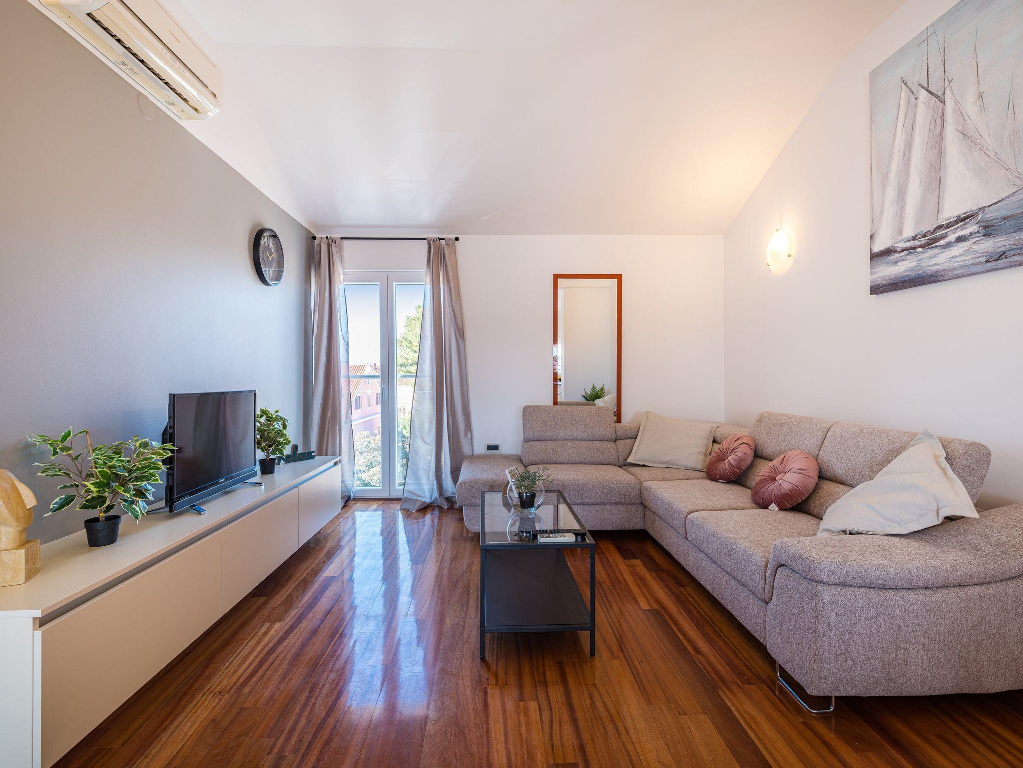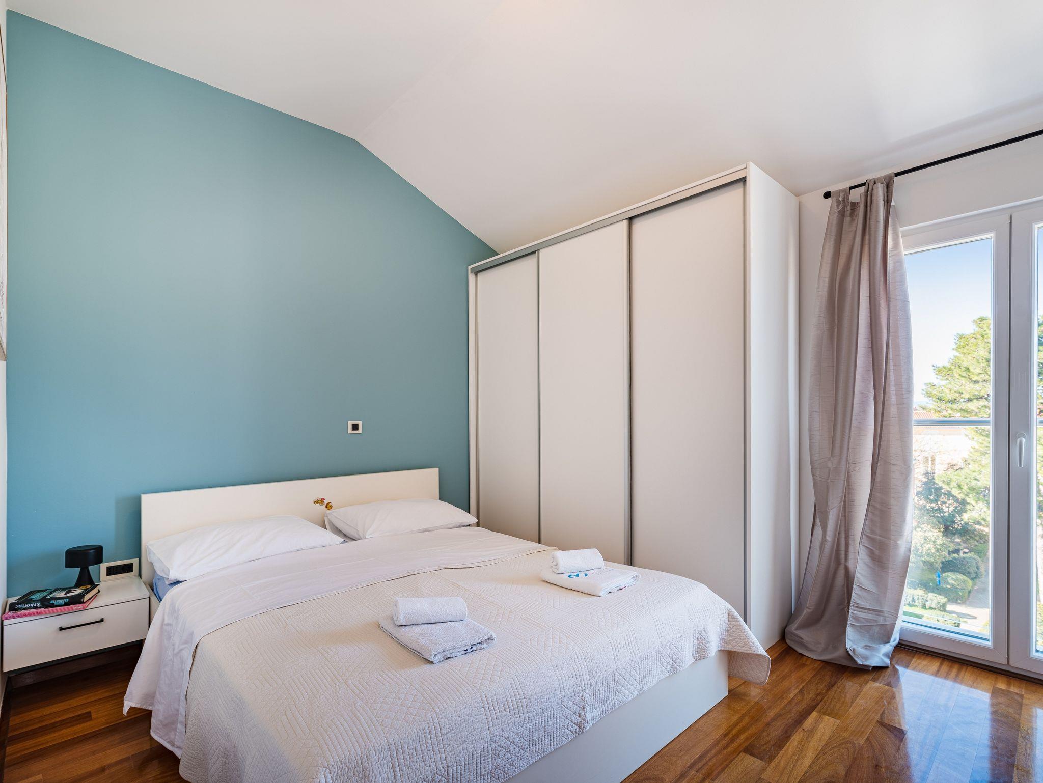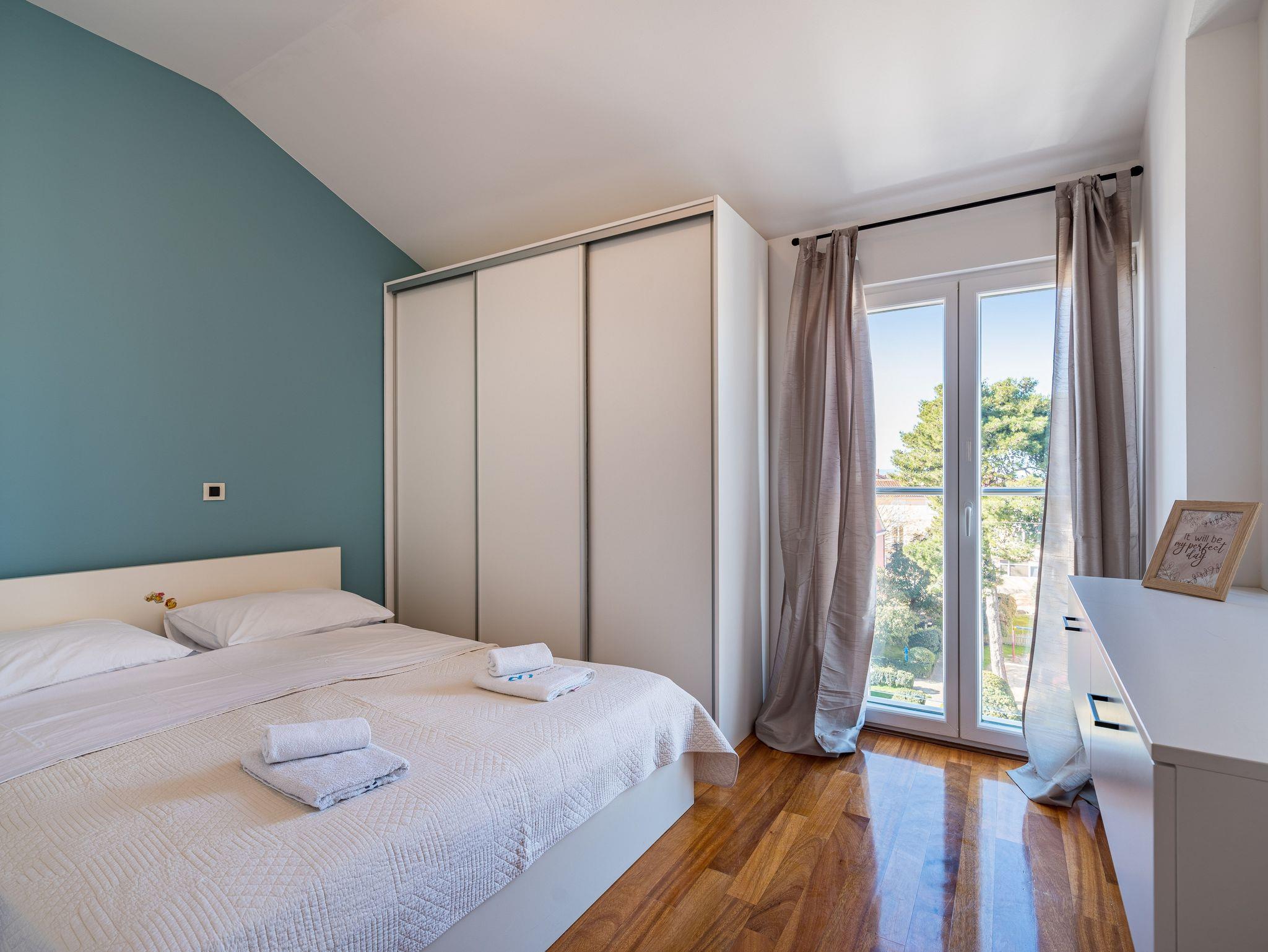 Ferienwohnung bietet Platz für 6 Gäste. Die Betten sind in Schlafzimmern, die es 2 gibt, und in Wohnzimmer, innerhalb einer Gesamtfläche von 46m2, angeordnet. Die Gäste haben einen eigenen Balkon zur Verfügung, auf der sie in warmen Sommernächten genießen können. Das Apartment bietet Meerblick. IM PREIS INBEGRIFFEN: Kurtaxe, Endreinigung, Klimatisierung, Parkplatz, Internet, Bügeleisen, Bügelbrett, Föhn. Die Verfügbarkeit zusätzlicher Dienstleistungen in Ihrem reservierten Termin und die Preise derselben (falls nicht aufgeführt) müssen im Voraus überprüft werden. Zusätzliche Dienstleistungen die in der Zahlungsaufforderung nicht aufgeführt sind werden direkt beim Vermieter bezahlt, angenommen der Gast nutzt auch diese. Ermäßigung auf den Grundpreis: Gratistag 14=13 (bei einem Aufenthalt von 14 Tagen oder mehr erhalten Sie einen Gratistag für den Aufenthalt bis 31.12.26).