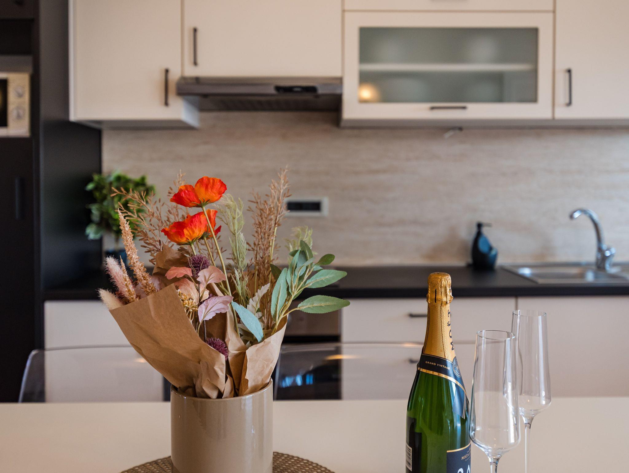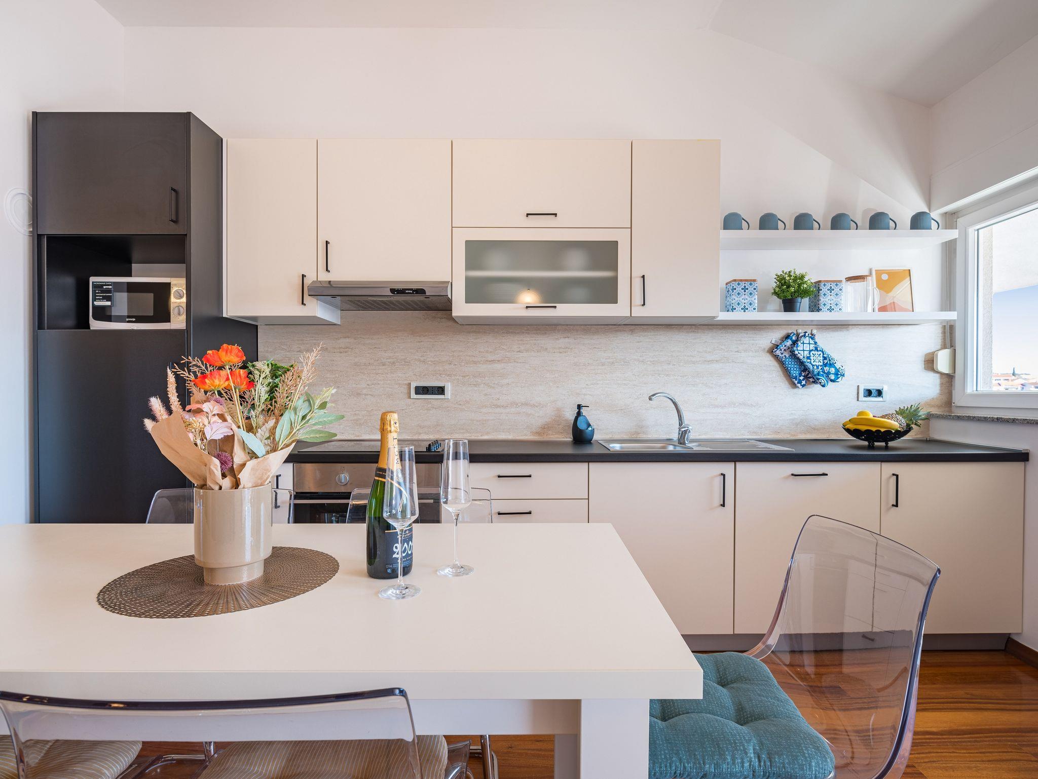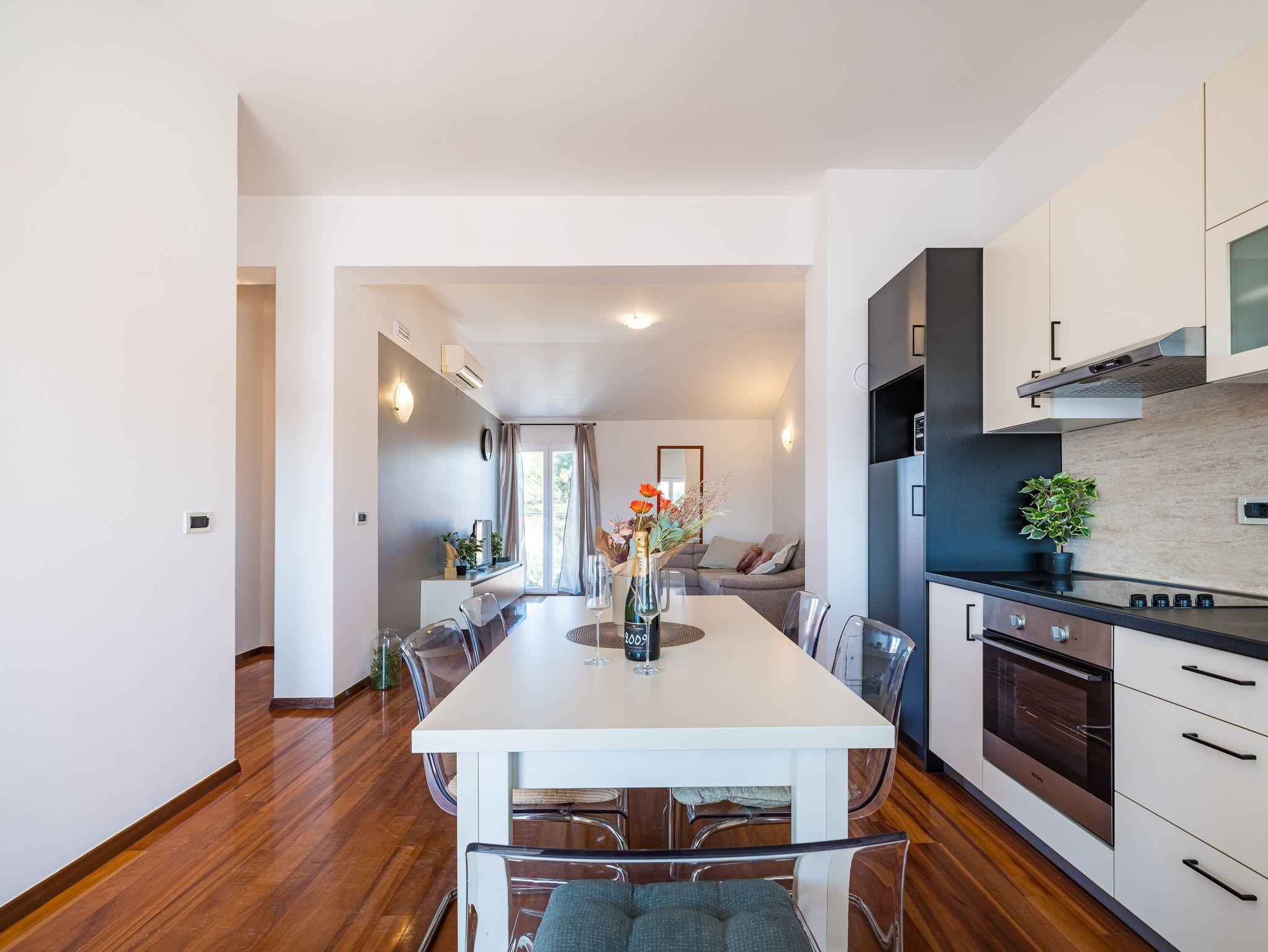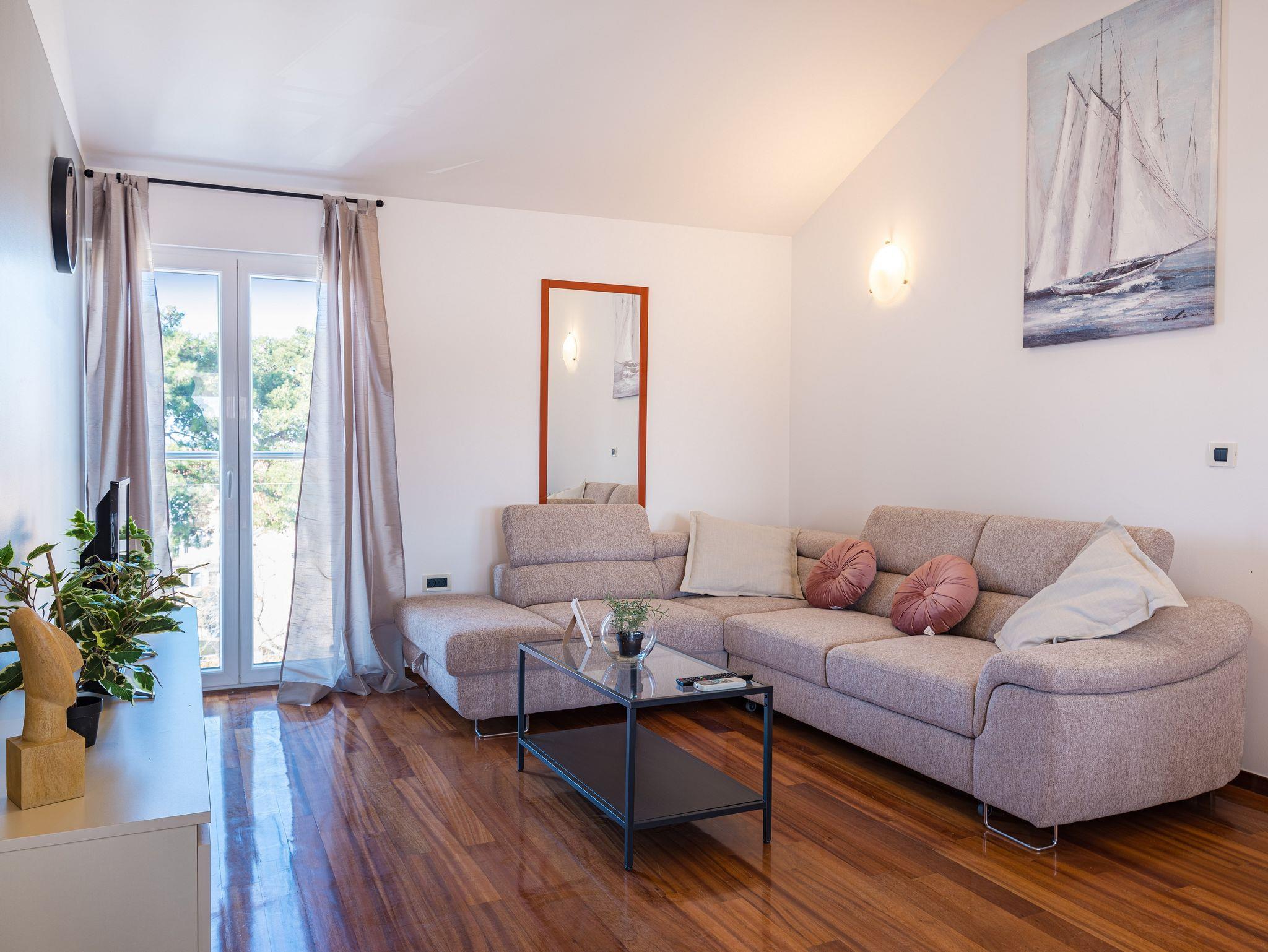 Ferienwohnung bietet Platz für 6 Gäste. Die Betten sind in Schlafzimmern, die es 2 gibt, und in Wohnzimmer, innerhalb einer Gesamtfläche von 46m2, angeordnet. Die Gäste haben einen eigenen Balkon zur Verfügung, auf der sie in warmen Sommernächten genießen können. Das Apartment bietet Meerblick. IM PREIS INBEGRIFFEN: Kurtaxe, Endreinigung, Klimatisierung, Parkplatz, Internet, Bügeleisen, Bügelbrett, Föhn. Die Verfügbarkeit zusätzlicher Dienstleistungen in Ihrem reservierten Termin und die Preise derselben (falls nicht aufgeführt) müssen im Voraus überprüft werden. Zusätzliche Dienstleistungen die in der Zahlungsaufforderung nicht aufgeführt sind werden direkt beim Vermieter bezahlt, angenommen der Gast nutzt auch diese. Ermäßigung auf den Grundpreis: Gratistag 14=13 (bei einem Aufenthalt von 14 Tagen oder mehr erhalten Sie einen Gratistag für den Aufenthalt bis 31.12.26).