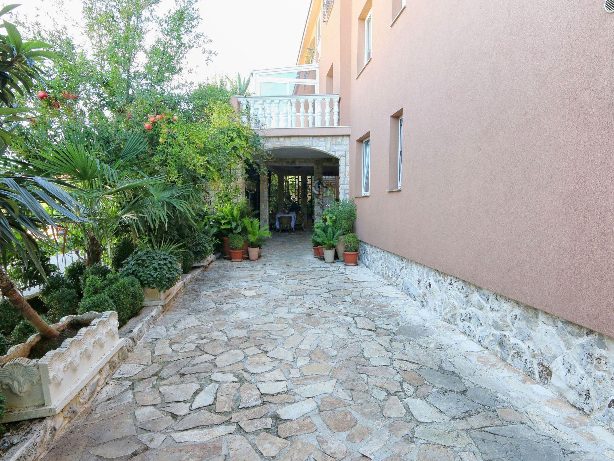 Ferienwohnung bietet Platz für 5 Gäste. Die Betten sind in Schlafzimmern, die es 2 gibt, innerhalb einer Gesamtfläche von 49m2, angeordnet. Die Gäste haben eine eigene Terrasse zur Verfügung, auf der sie in warmen Sommernächten genießen können. Es ist erlaubt, Speisen auf dem Gemeinschafts-Grill vorzubereiten. In der Unterkunftseinheit besteht die Möglichkeit des Mitbringens von Haustieren gegen Aufpreis. IM PREIS INBEGRIFFEN: Kurtaxe, Endreinigung, Klimatisierung, Zentralheizung, Parkplatz, Internet. VERBINDLICHE ZUSÄTZLICHE KOSTEN: Aufzahlung für Kurzaufenthalte (prozentualer Zuschlag pro Nächtigungsanzahl: 30% - 1, 20% - 2, 10% - 3). UNVERBINDLICHE ZUSÄTZLICHE KOSTEN: Haustiere (8,00 € pro Nacht). Die Verfügbarkeit zusätzlicher Dienstleistungen in Ihrem reservierten Termin und die Preise derselben (falls nicht aufgeführt) müssen im Voraus überprüft werden. Zusätzliche Dienstleistungen die in der Zahlungsaufforderung nicht aufgeführt sind werden direkt beim Vermieter bezahlt, angenommen der Gast nutzt auch diese.