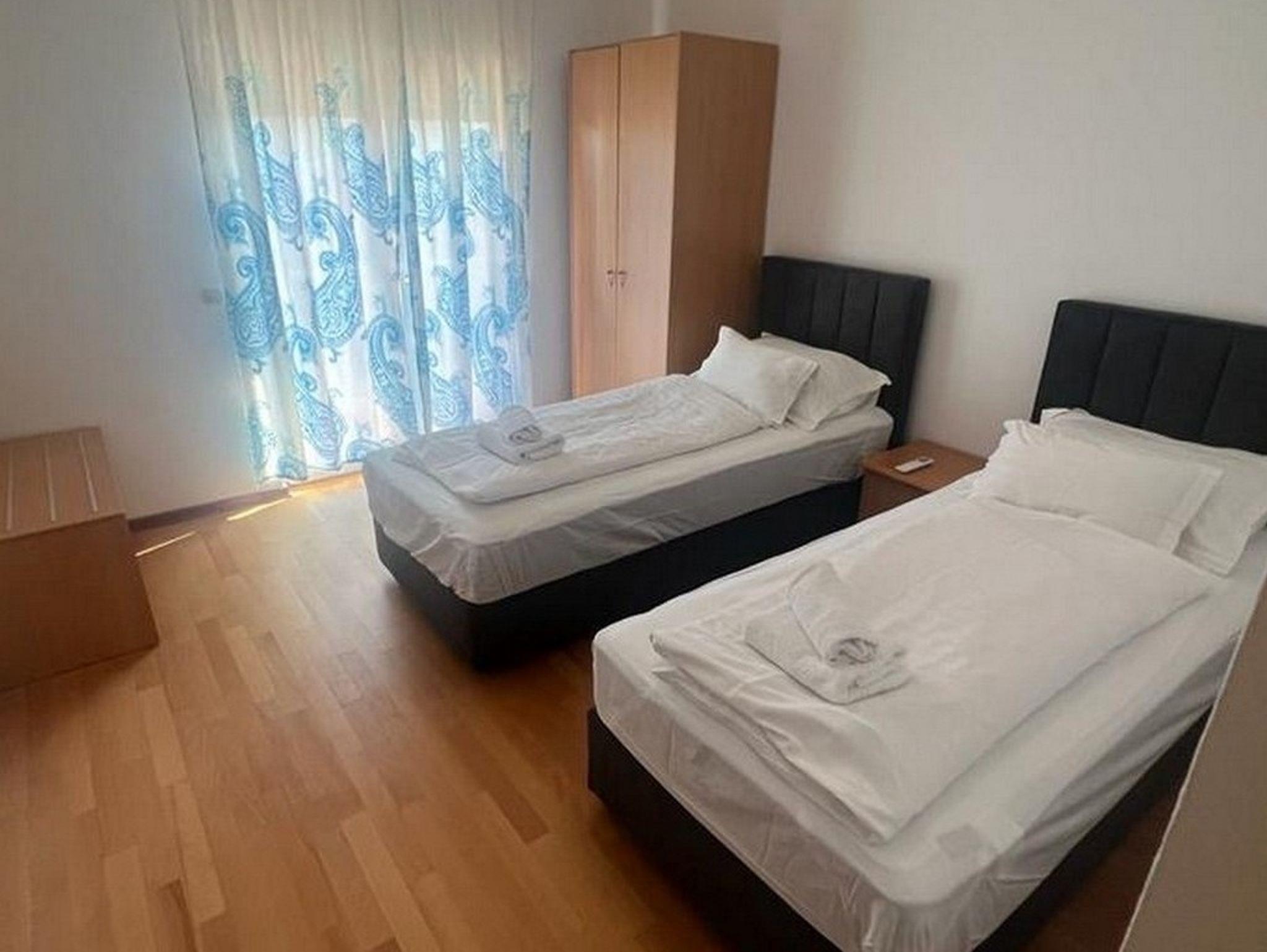 Ferienwohnung bietet Platz für 6 Gäste. Die Betten sind in Schlafzimmern, die es 2 gibt, und in Wohnzimmer, innerhalb einer Gesamtfläche von 65m2, angeordnet. Die Gäste haben eine eigene Terrasse zur Verfügung, auf der sie in warmen Sommernächten genießen können. Das Apartment bietet Meerblick. IM PREIS INBEGRIFFEN: Kurtaxe, Endreinigung, Klimatisierung, Parkplatz, Internet, Zusatzbett, Bügeleisen, Bügelbrett, Föhn. Die Verfügbarkeit zusätzlicher Dienstleistungen in Ihrem reservierten Termin und die Preise derselben (falls nicht aufgeführt) müssen im Voraus überprüft werden. Zusätzliche Dienstleistungen die in der Zahlungsaufforderung nicht aufgeführt sind werden direkt beim Vermieter bezahlt, angenommen der Gast nutzt auch diese.