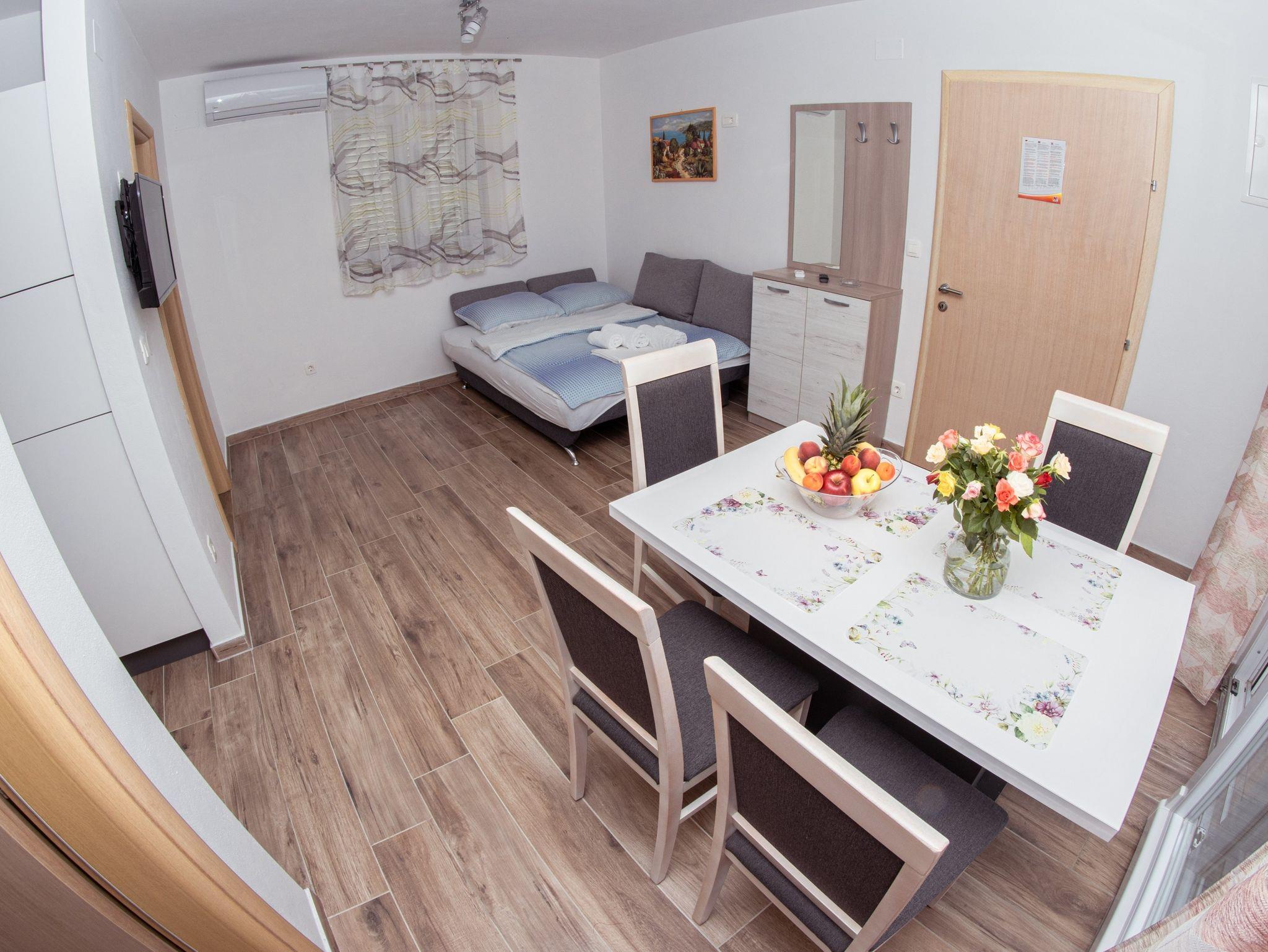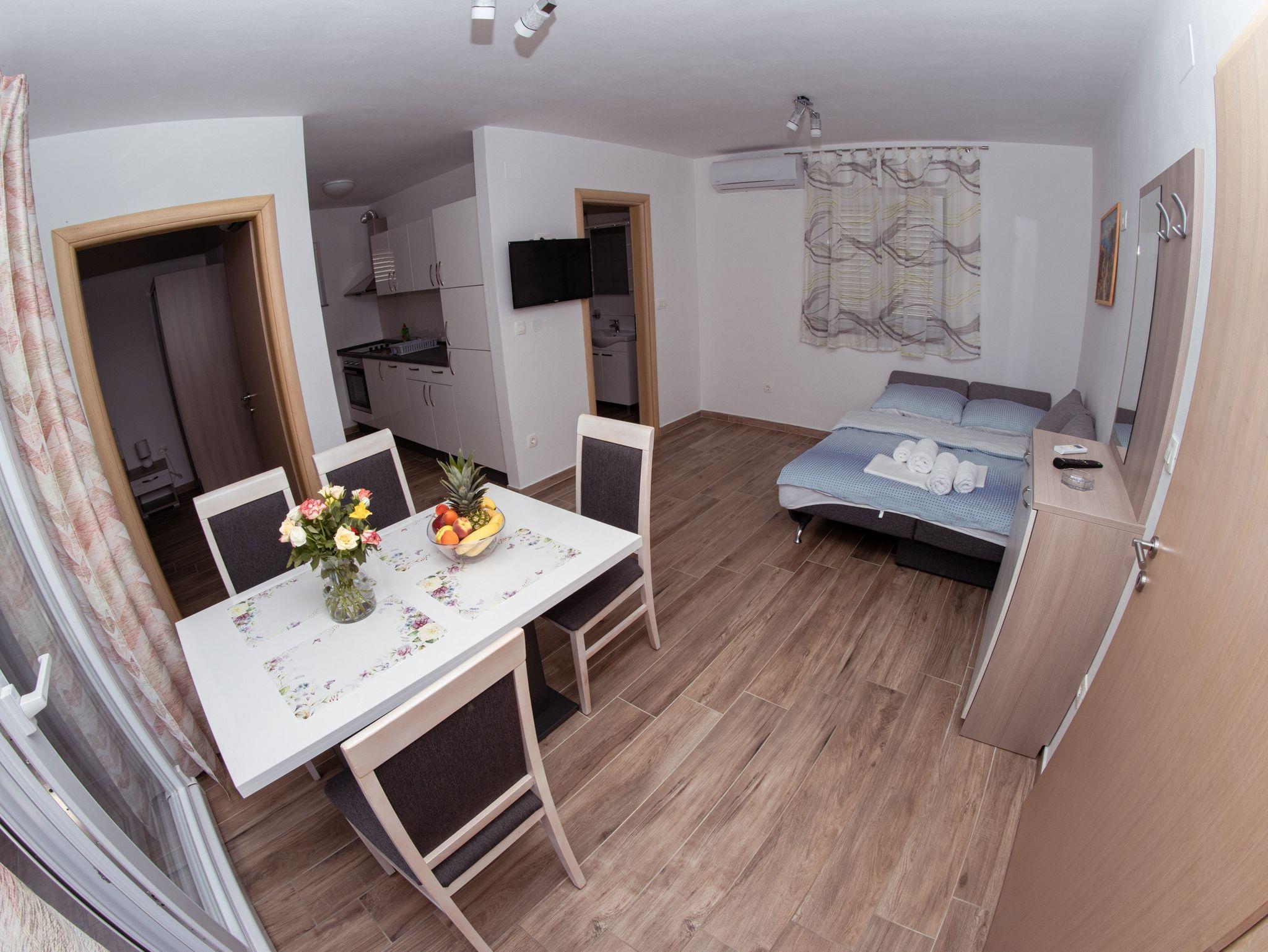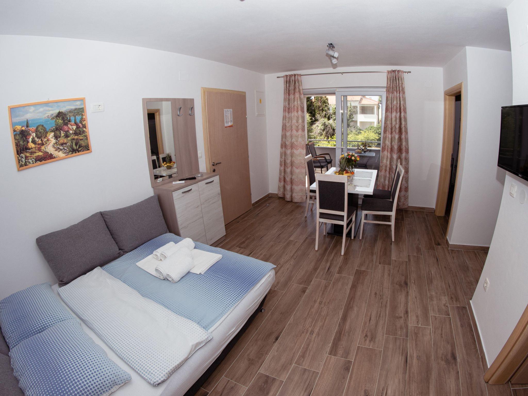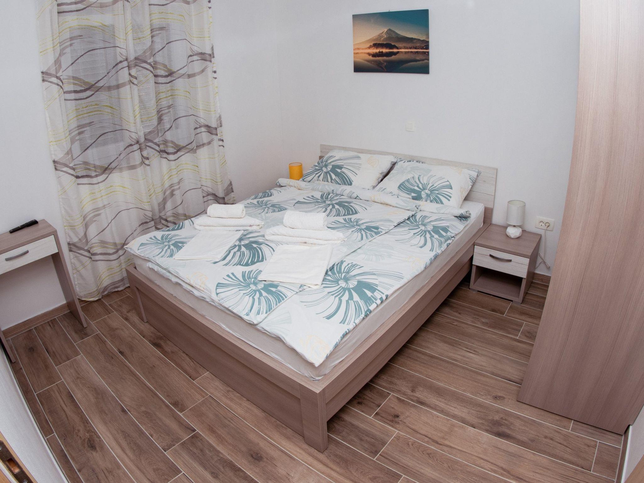 Ferienwohnung bietet Platz für 4 Gäste. Die Betten sind in Schlafzimmern, die es 1 gibt, und in Wohnzimmer, innerhalb einer Gesamtfläche von 38m2, angeordnet. Die Gäste haben einen eigenen Balkon zur Verfügung, auf der sie in warmen Sommernächten genießen können. Während ihres Aufenthalts können Gäste das gemeinsam zur Nutzung stehende Schwimmbad benutzen. IM PREIS INBEGRIFFEN: Kurtaxe, Endreinigung, Klimatisierung, Pool, Parkplatz, Internet. Die Verfügbarkeit zusätzlicher Dienstleistungen in Ihrem reservierten Termin und die Preise derselben (falls nicht aufgeführt) müssen im Voraus überprüft werden. Zusätzliche Dienstleistungen die in der Zahlungsaufforderung nicht aufgeführt sind werden direkt beim Vermieter bezahlt, angenommen der Gast nutzt auch diese. Ermäßigung auf den Grundpreis: Gratistag 14=13 (bei einem Aufenthalt von 14 Tagen oder mehr erhalten Sie einen Gratistag für den Aufenthalt bis 31.12.26).