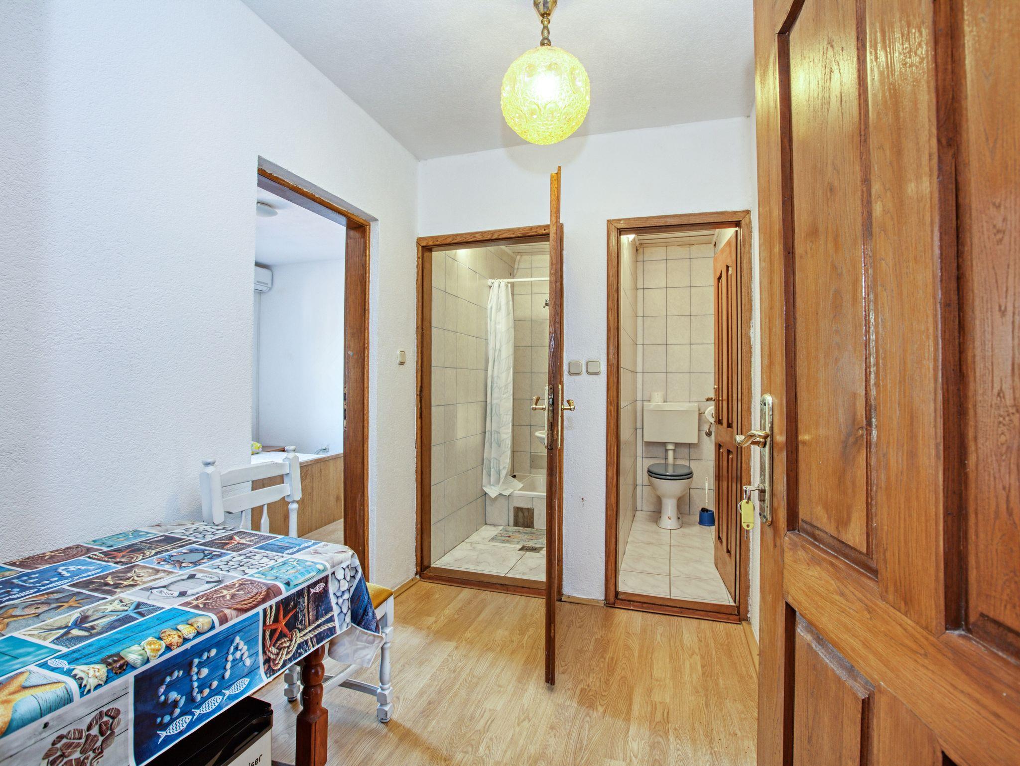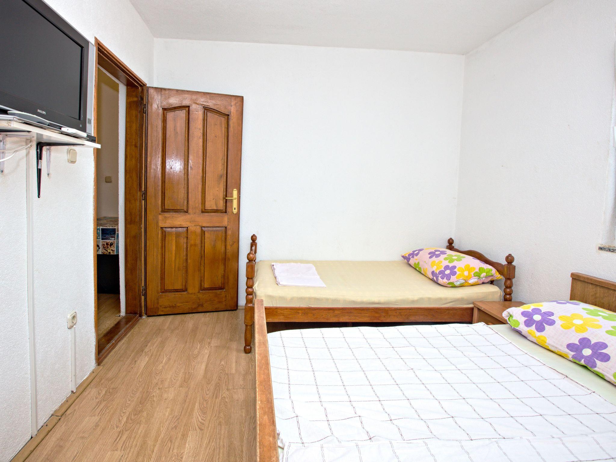 Zimmer bietet Platz für 3 Gäste. Die Betten sind in Schlafzimmern, die es 1 gibt, innerhalb einer Gesamtfläche von 19m2, angeordnet. Es ist erlaubt, Speisen auf dem Gemeinschafts-Grill vorzubereiten. In der Unterkunftseinheit besteht die Möglichkeit des Mitbringens von Haustieren gegen Aufpreis. Die reservierte Unterkunftseinheit ist ein Zimmer mit eigenem Badezimmer ohne die Möglichkeit der Nutzung einer Küche. Die reservierte Unterkunftseinheit verfügt über einen gemeinsamen Balkon. Unterkunftseinheit hat Räume, die von dem Rest der Einheit abgetrennt werden. IM PREIS INBEGRIFFEN: Kurtaxe, Endreinigung, Klimatisierung, Parkplatz, Internet. VERBINDLICHE ZUSÄTZLICHE KOSTEN: Aufzahlung für Kurzaufenthalte (prozentualer Zuschlag pro Nächtigungsanzahl: 30% - 1, 20% - 2, 10% - 3). UNVERBINDLICHE ZUSÄTZLICHE KOSTEN: Halbpension (15,00 €, 50% Nachlass für Kinder zwischen 4 und 12 Jahren, Kinder bis 4 Jahre sind frei.), Wäschewaschen (5,00 € Waschen), Haustiere (10,00 € pro Nacht), Fahrrad (10,00 € täglich (pro Stück)). Die Verfügbarkeit zusätzlicher Dienstleistungen in Ihrem reservierten Termin und die Preise derselben (falls nicht aufgeführt) müssen im Voraus überprüft werden. Zusätzliche Dienstleistungen die in der Zahlungsaufforderung nicht aufgeführt sind werden direkt beim Vermieter bezahlt, angenommen der Gast nutzt auch diese. Ermäßigung auf den Grundpreis: Gratistag 14=13 (bei einem Aufenthalt von 14 Tagen oder mehr erhalten Sie einen Gratistag für den Aufenthalt bis 31.12.26).