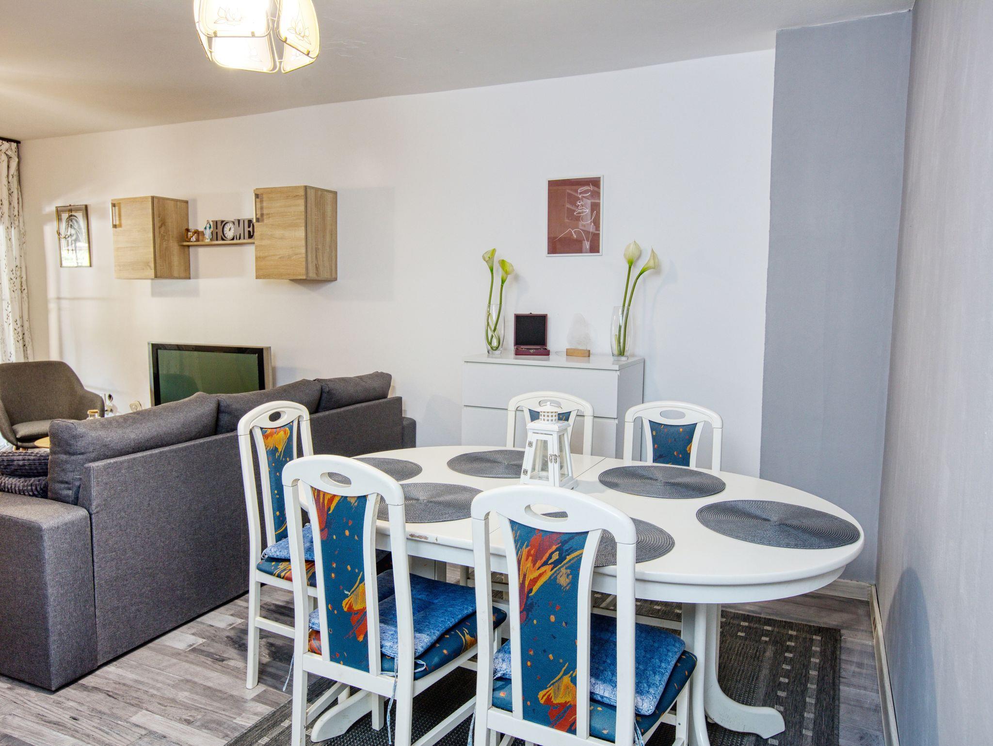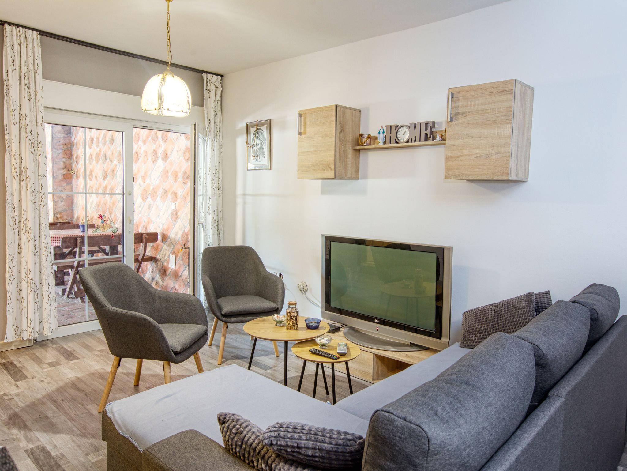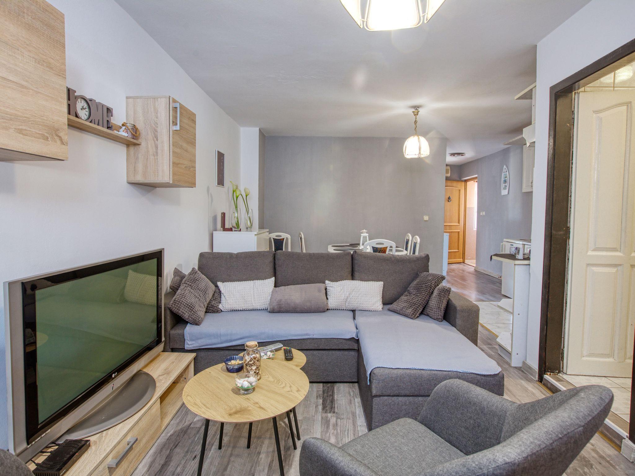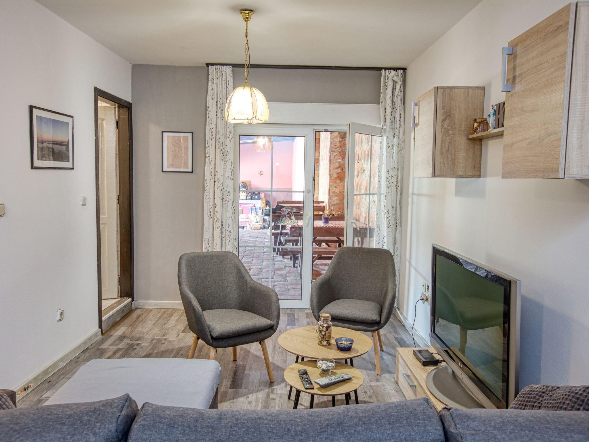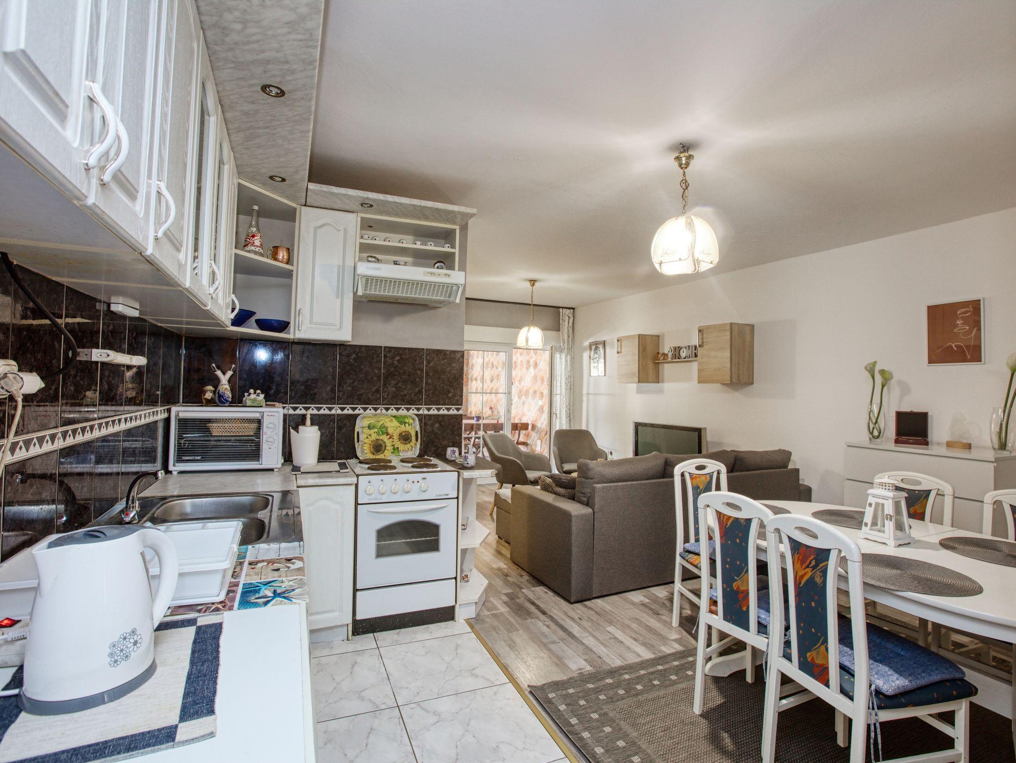 Ferienwohnung bietet Platz für 4 Gäste. Die Betten sind in Schlafzimmern, die es 1 gibt, und in Wohnzimmer, innerhalb einer Gesamtfläche von 36m2, angeordnet. Es ist erlaubt, Speisen auf dem Gemeinschafts-Grill vorzubereiten. In der Unterkunftseinheit besteht die Möglichkeit des Mitbringens von Haustieren gegen Aufpreis. Die reservierte Unterkunftseinheit hat keinen Balkon und keine Terrasse. IM PREIS INBEGRIFFEN: Kurtaxe, Endreinigung, Klimatisierung, Parkplatz, Internet. VERBINDLICHE ZUSÄTZLICHE KOSTEN: Aufzahlung für Kurzaufenthalte (prozentualer Zuschlag pro Nächtigungsanzahl: 30% - 1, 20% - 2, 10% - 3). UNVERBINDLICHE ZUSÄTZLICHE KOSTEN: Halbpension (15,00 €, 50% Nachlass für Kinder zwischen 4 und 12 Jahren, Kinder bis 4 Jahre sind frei.), Wäschewaschen (5,00 € Waschen), Haustiere (10,00 € pro Nacht), Fahrrad (10,00 € täglich (pro Stück)). Die Verfügbarkeit zusätzlicher Dienstleistungen in Ihrem reservierten Termin und die Preise derselben (falls nicht aufgeführt) müssen im Voraus überprüft werden. Zusätzliche Dienstleistungen die in der Zahlungsaufforderung nicht aufgeführt sind werden direkt beim Vermieter bezahlt, angenommen der Gast nutzt auch diese. Ermäßigung auf den Grundpreis: Gratistag 14=13 (bei einem Aufenthalt von 14 Tagen oder mehr erhalten Sie einen Gratistag für den Aufenthalt bis 31.12.26).
