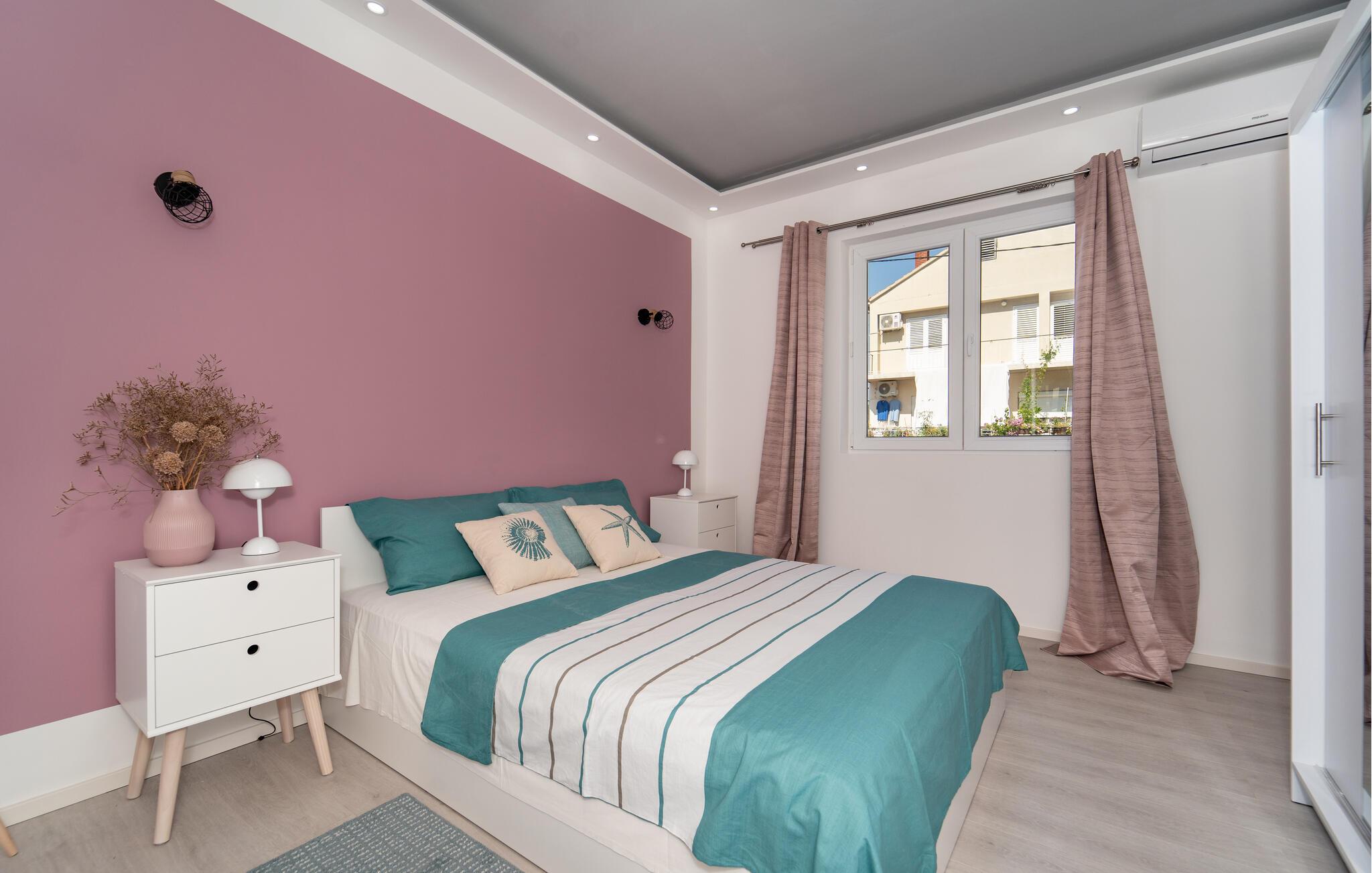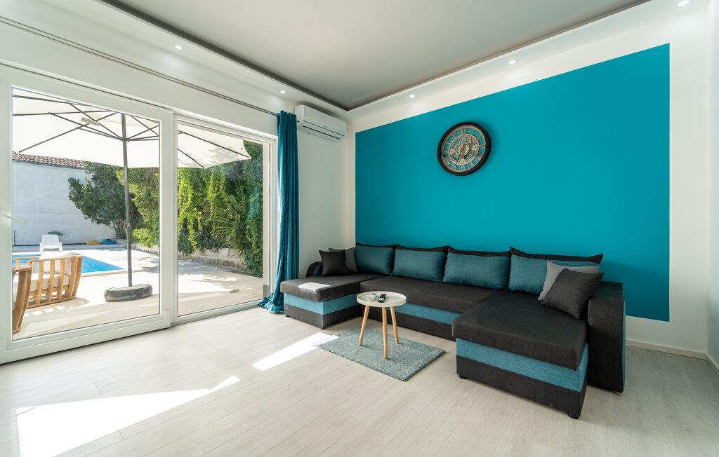 Dieses moderne und farbenfrohe Ferienhaus im Herzen von Biograd bietet Ihnen eine stilvolle Oase der Entspannung. Die liebevoll gestalteten Innenräume überzeugen mit einem harmonischen Mix aus modernen Möbeln, frischen Farben und stilvollen Dekorationen. Großzügige Wohnbereiche und gemütliche Schlafzimmer bieten reichlich Platz für zwei Familien, eine Großfamilie oder befreundete Paare. Gehen Sie Ihrem Ferienalltag entspannt nach, kochen, essen und genießen.