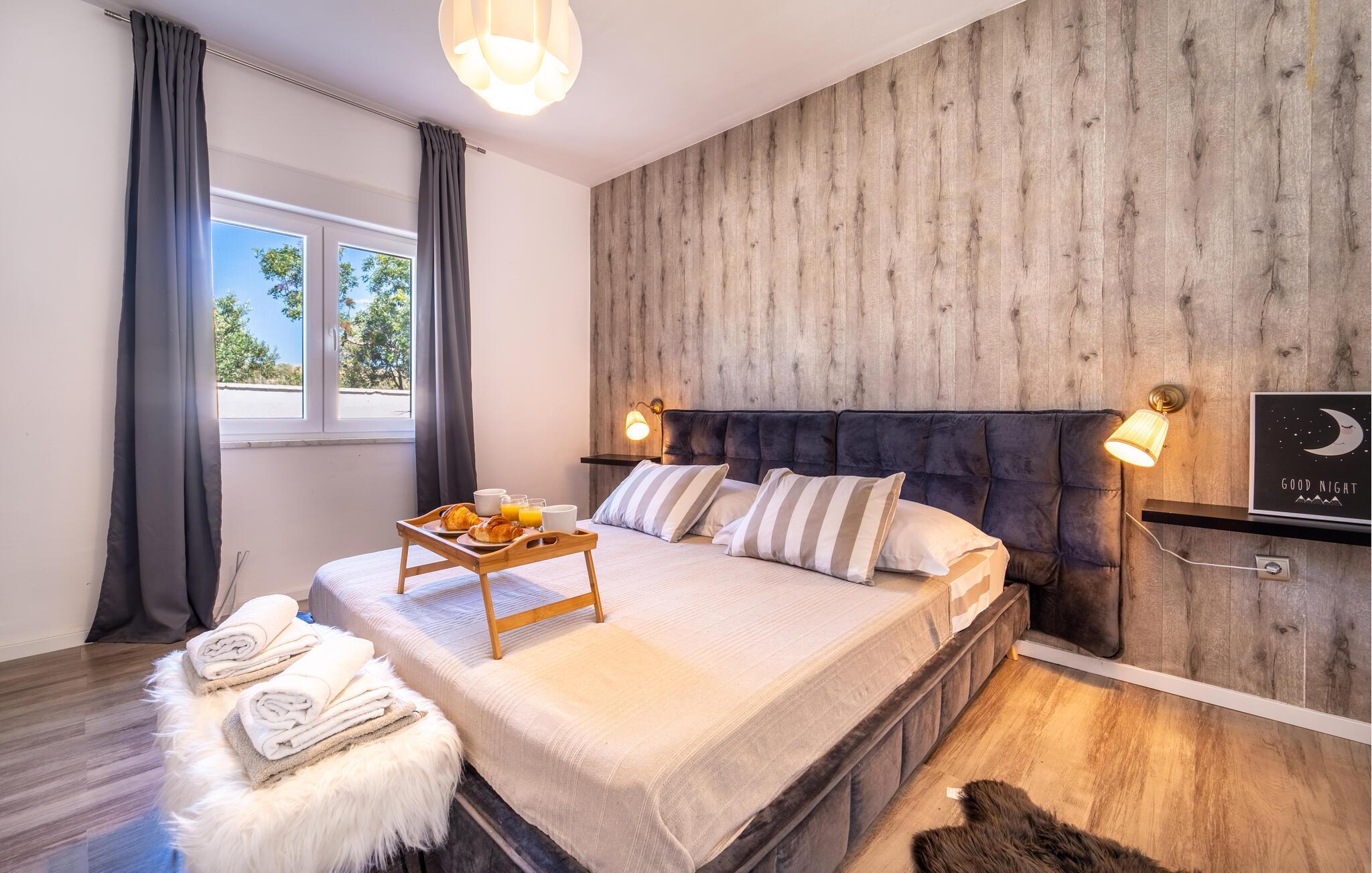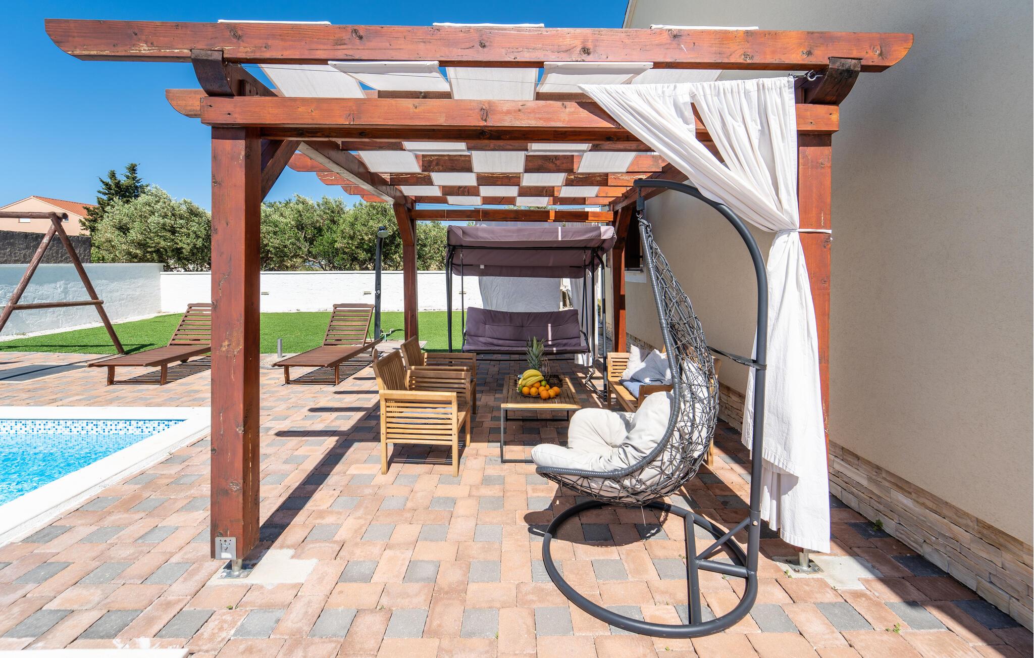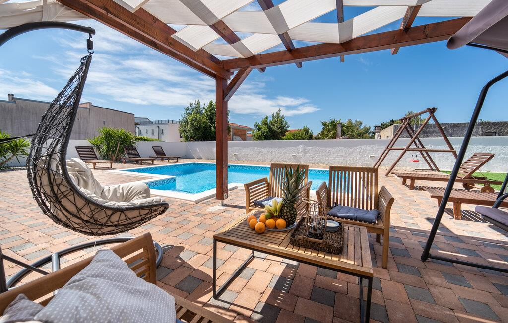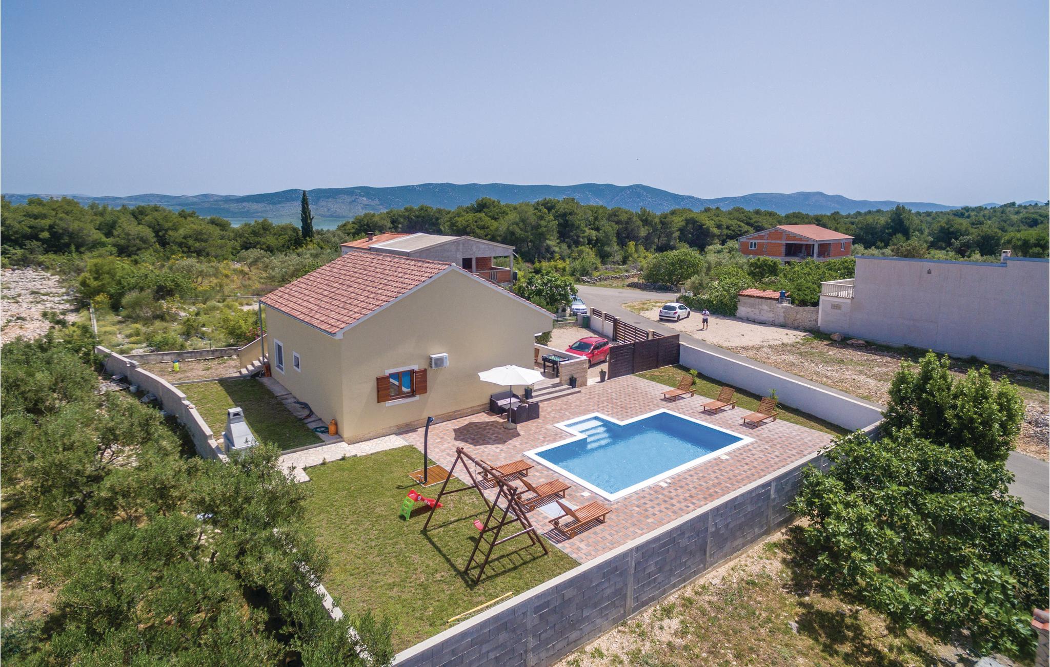 Dieses schöne und äußerst elegante Ferienhaus, geschmackvoll und stilvoll eingerichtet, befindet sich auf einem Naturgrundstück, nicht weit von der attraktiven und immer lebendigen Stadt Biograd na moru entfernt. Auf der offenen und großzügigen Terrasse können Sie bei einem leckeren Morgenkaffee die ersten, warmen Sonnenstrahlen genießen. Um Ihren Urlaubstagen viel Entspannung und viel Spaß zu verleiehn, gibt es einen Außenpool mit Liegestühlen und Grill, während die jüngsten Gäste auch viele Annehmlichkeiten genießen.