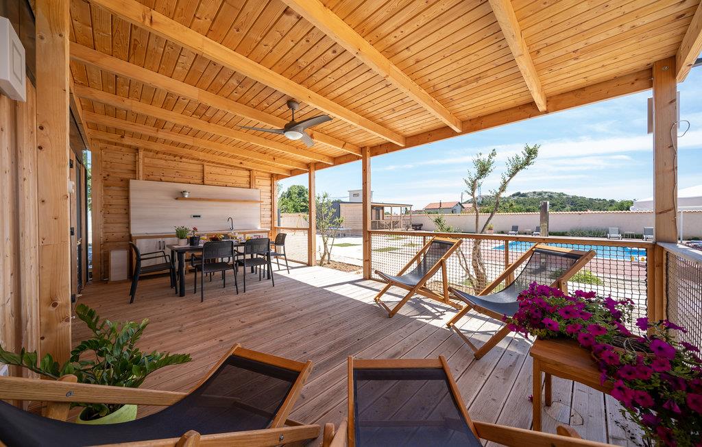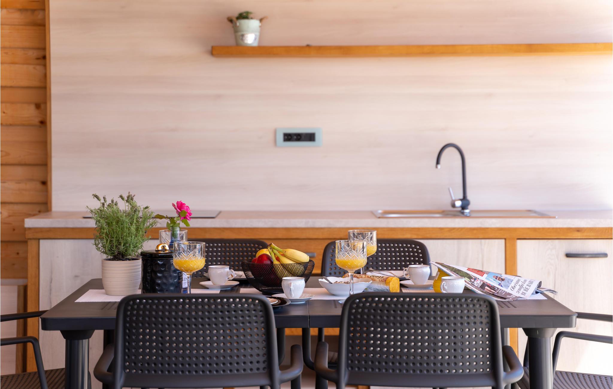 In dieser modernen und überaus attraktiv gestalteten Anlage mit 6 separaten Gebäuden finden mehrere Familien oder eine große Gruppe von Freunden Platz, der Fantasie sind hier kaum Grenzen gesetzt. In jedem der Häuser befinden sich zwei Bäder und zwei Schlafzimmer, eine Küche haben Sie auch in jedem Haus zur Verfügung, die Einrichtung ist insgesamt freundlich und modern.