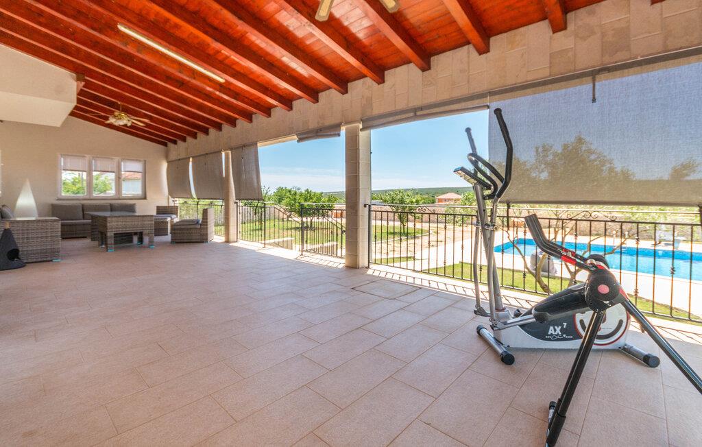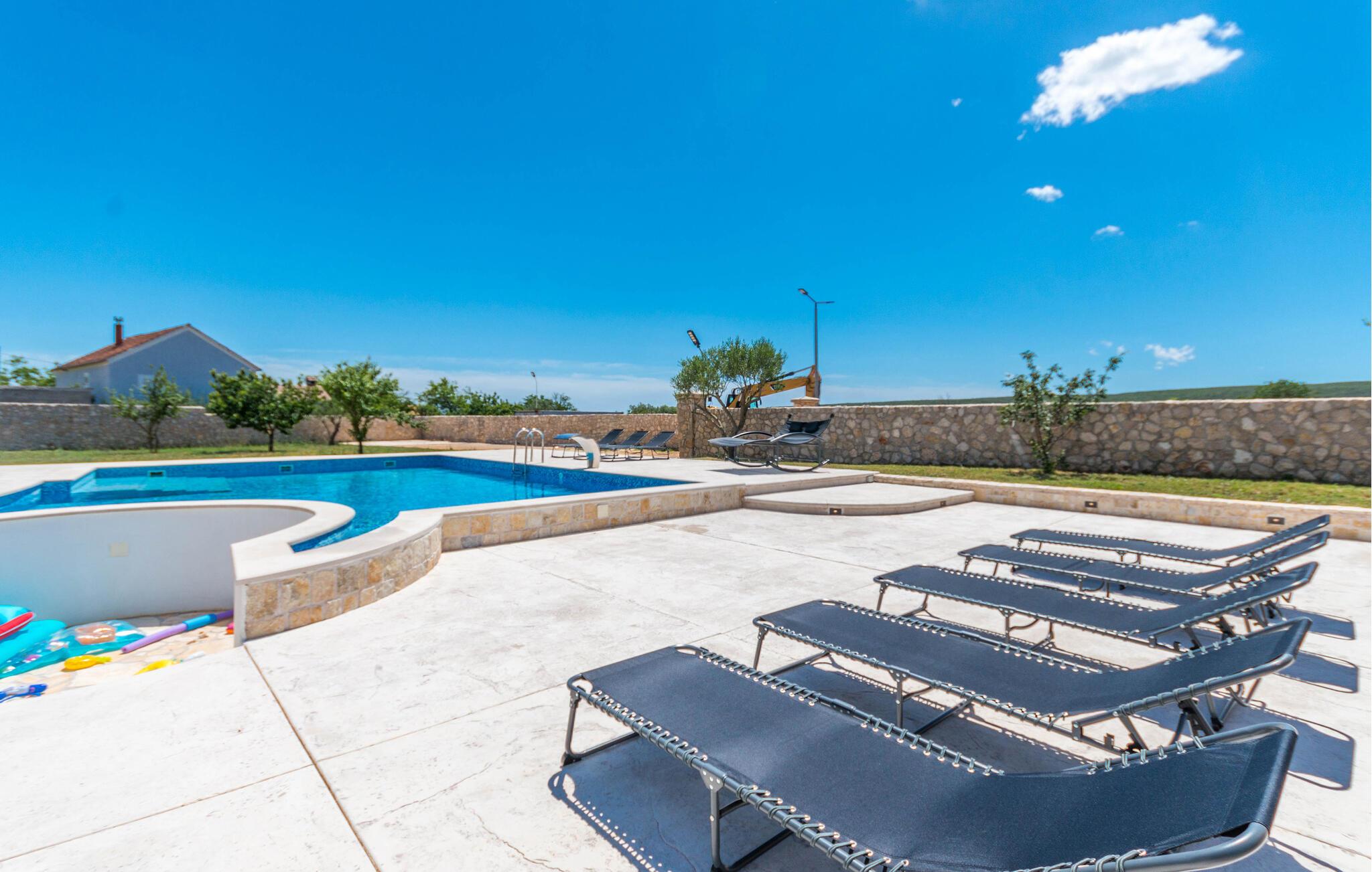 Ihr gemütliches Ferienhaus in Gornje Rastane bietet ideale Voraussetzungen für einen entspannten Familienurlaub. Der weitläufige Außenbereich mit einem großzügigen, privaten Pool und bequemen Sonnenliegen sowie einer Hängematte lädt dazu ein, die sonnigen Tage in vollen Zügen zu genießen. Lehnen Sie sich zurück und vergessen Sie den Alltag, während Sie am Pool entspannen. Auf der überdachten Terrasse ist viel Platz für verschiedene Aktivitäten. Nutzen Sie die Fitnessgeräte für sportliche Betätigung und speisen Sie gemeinsam in der Lounge-Ecke, während Sie den schönen Blick auf den Pool genießen.