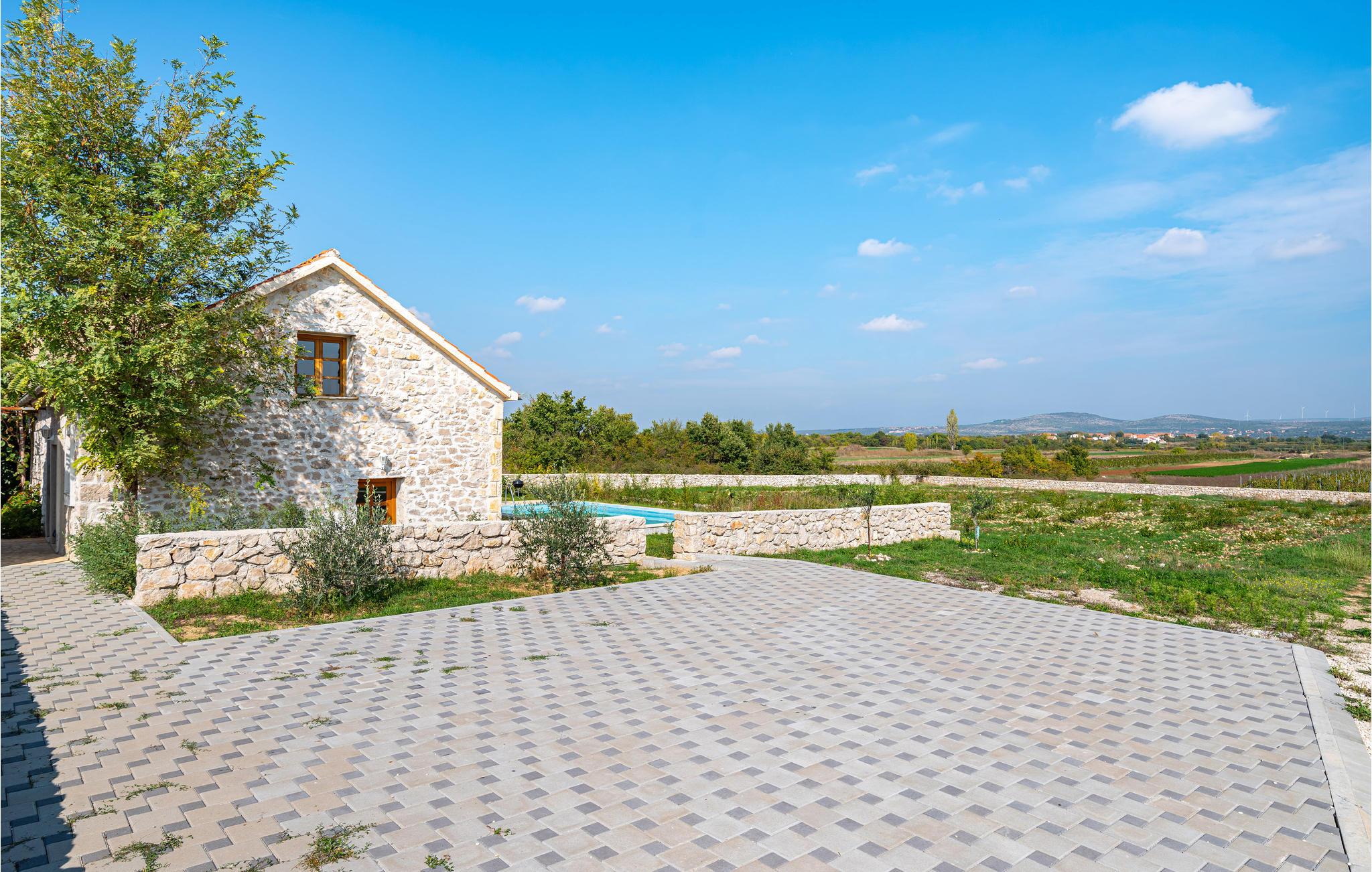 Das fantastische Steinhaus liegt in der grünen Umgebung eines Ökodorfes auf einem schönen Grundstück und besteht aus zwei Häusern. Dem Anwesen wurde eine Verjüngungskur verpasst und so erstrahlt es von Innen und Außen in gepflegtem Glanz. Eine Wohnung besteht aus einer Wohnküche, Bad, Toilette und zwei Schlafzimmern, während die andere Wohneinheit zwei Schlafzimmer und zwei Badezimmer beinhaltet. Auf dem Grundstück steht Ihnen ein eigener Pool zur Verfügung, von dem sich eine schöne Aussicht auf die Umgebung bietet. Innerhalb des Ökodorfes in Richtung der weitläufigen Felder gibt es eine große Laube, die gemeinschaftlich genutzt wird. Die nächste Stadt ist Biodgrad. die für ihre zwei Yachthäfen bekannt ist. Sehenswert sind die Altstadt von Zadar und der Naturpark am Vrana See.