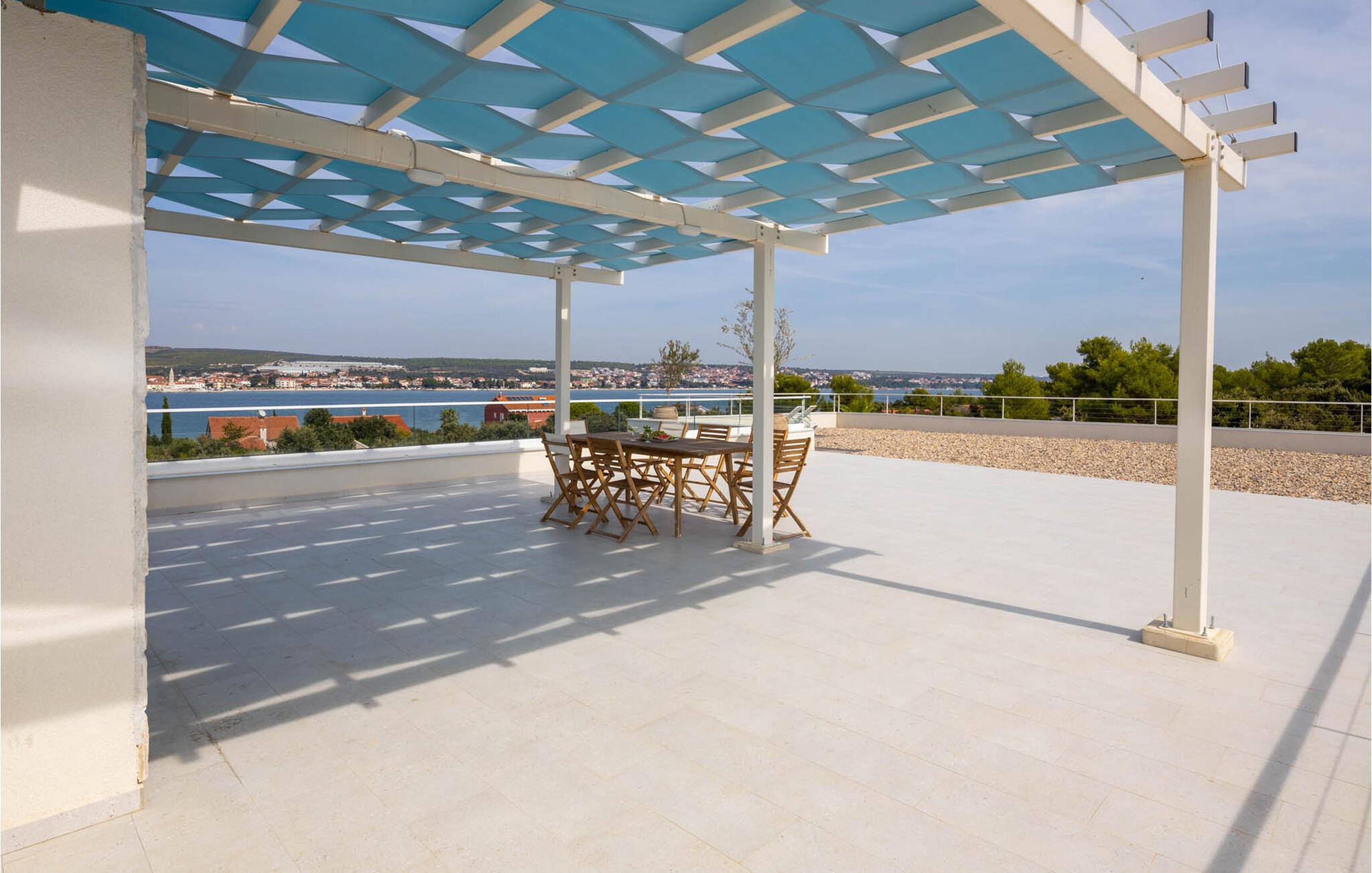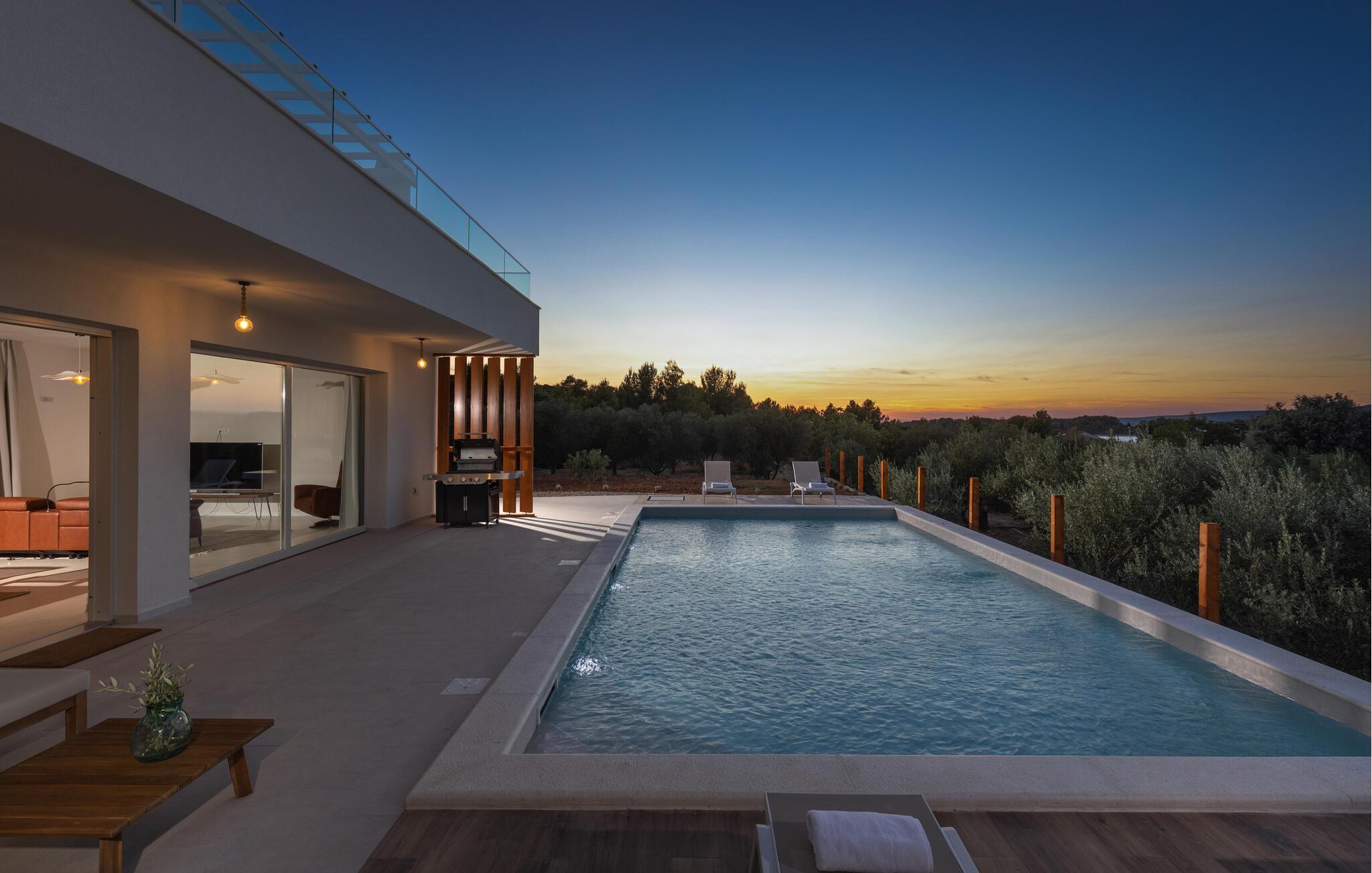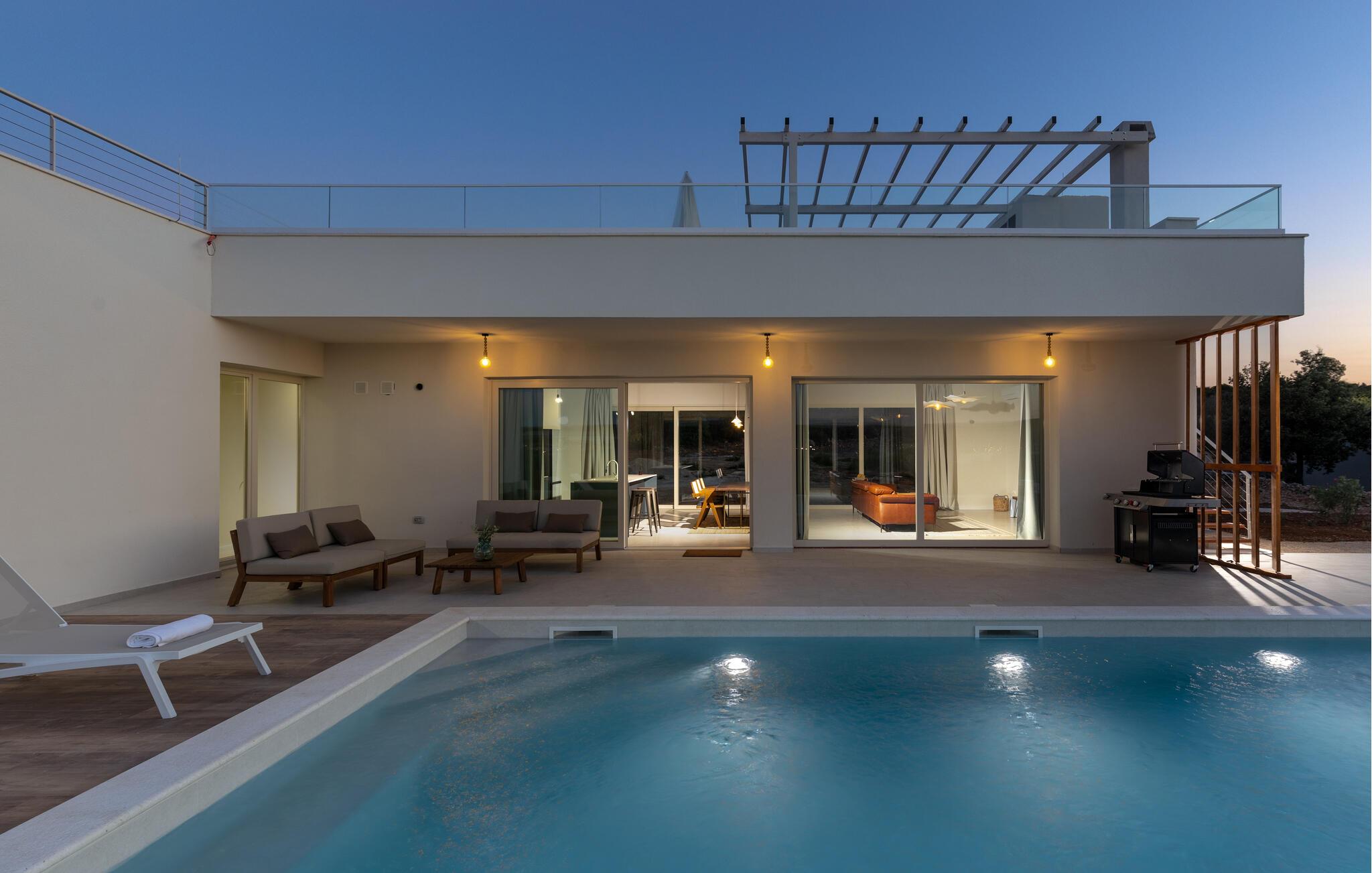 Die Villa Santa Lucia liegt auf der Insel Babac, die zwischen der Stadt Biograd na Moru und der Insel Pašman liegt. Die Insel Babac ist die einzige bewohnte Insel im Archipel aus 16 Inseln vor der Insel Pašman. Die Insel ist voller versteckter Buchten und Sandstrände und eignet sich ideal für einen ruhigen und ruhigen Urlaub. Wenn Sie dem hektischen Alltag entfliehen und den Charme dieser wunderschönen Insel genießen möchten, dann ist Villa Santa Lucia die richtige Wahl für Sie! Es wurde 2022 im zeitgenössischen Baustil erbaut, hat von allen Zimmern aus einen Blick auf die klare Adria und bietet seinen Gästen 207 m2 Wohnfläche, während die Gesamtfläche des Anwesens 780 m2 beträgt. In der Villa können maximal 8 Personen übernachten. Im Erdgeschoss können Sie es sich im Wohnzimmer bequem machen, das über ein Sofa, einen Sessel und einen Fernseher verfügt, und die Kinder werden sich über die PlayStation-Spielekonsole freuen. Außerdem gibt es eine voll ausgestattete Küche und ein Esszimmer mit einem Esstisch für 8 Personen. Sie werden sich in 4 Schlafzimmern wohlfühlen, von denen 2 mit einem Doppelbett und die restlichen zwei mit jeweils zwei Einzelbetten ausgestattet sind. Jedes Schlafzimmer verfügt über ein eigenes Badezimmer mit Dusche. Im Obergeschoss finden Sie eine 220 m² große, begehbare Dachterrasse mit einem Weber-Gasgrill für den Außenbereich, einem Esstisch mit 8 Sitzplätzen sowie Liegestühlen und Trainingsgeräten. Auf der Außenterrasse gibt es einen beheizten Pool von 45 m2, 1,4 m tief, der als zusätzliche Funktionalität über Massage verfügt. Daneben können Sie sich auf den 8 bereitgestellten Sonnenliegen sonnen. Zu den weiteren Annehmlichkeiten der Villa Santa Lucia gehören eine Waschmaschine, ein Bügeleisen und ein separates WC. Wenn Kinder in den Urlaub mitkommen, können Sie einen Futtertrog und ein Babybett nutzen. Wenn Sie mit Ihrem eigenen Boot anreisen, haben Sie die Möglichkeit, den Bootsliegeplatz zu nutzen. Wir bieten Ihnen die Vermietung eines 8-Meter-Bootes MF 795 und eines Skippers für den Transport zum Ufer für Besichtigungen der Inseln Pašman, Komornik und Galesnjak (eine herzförmige Insel) an. Im Preis inbegriffen: