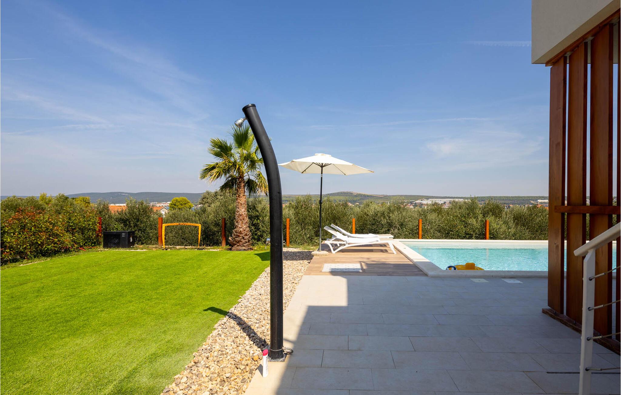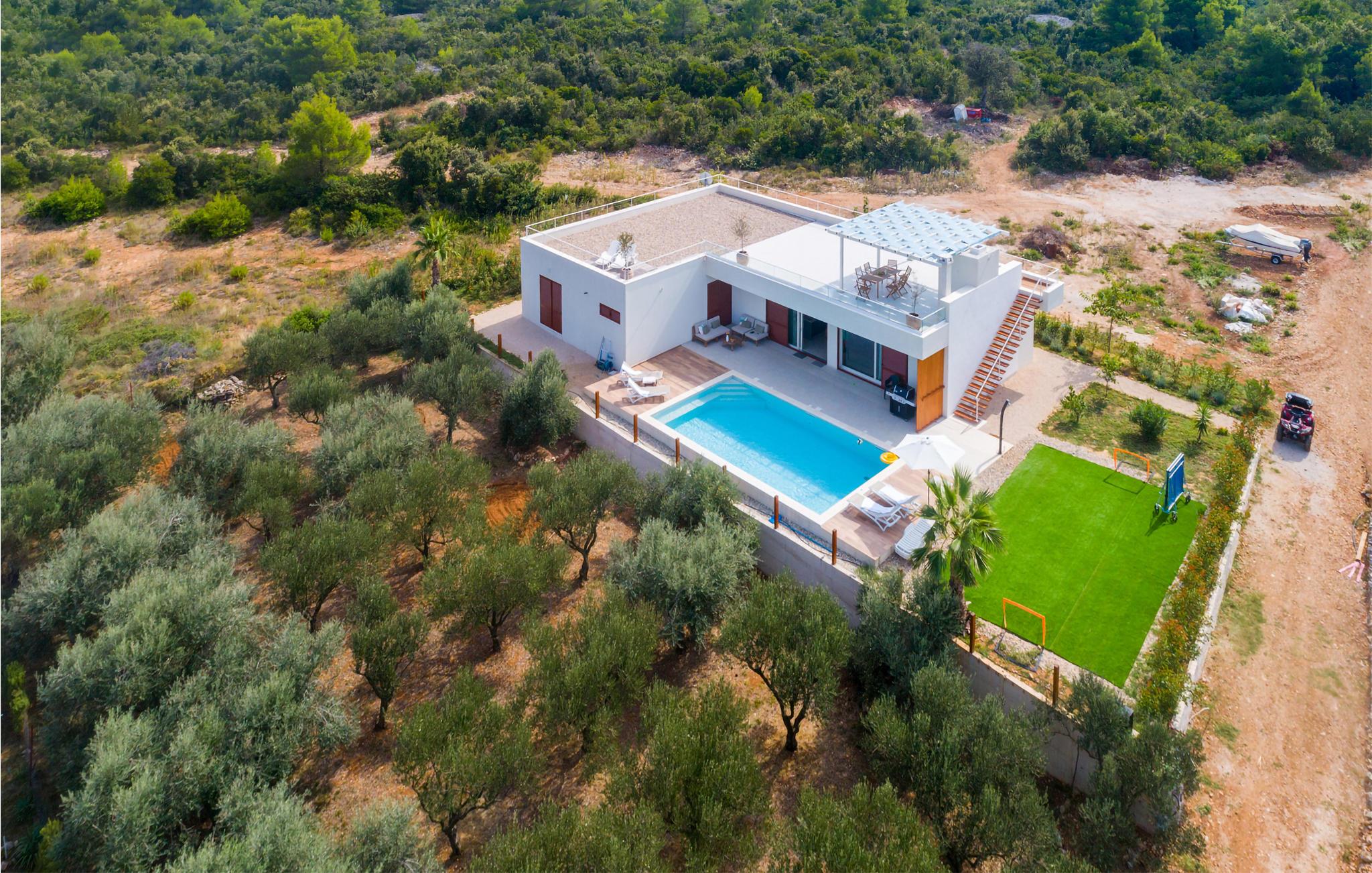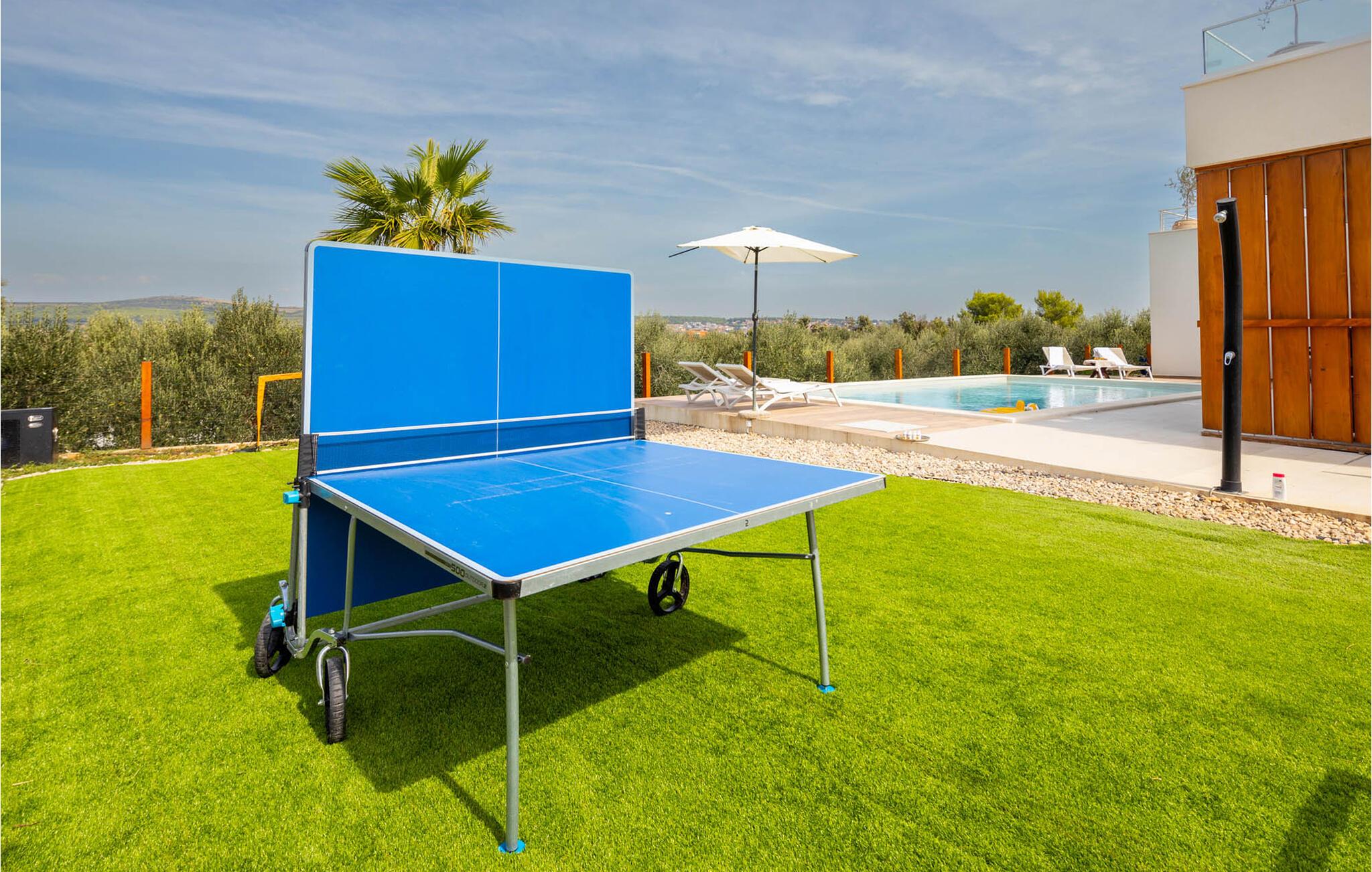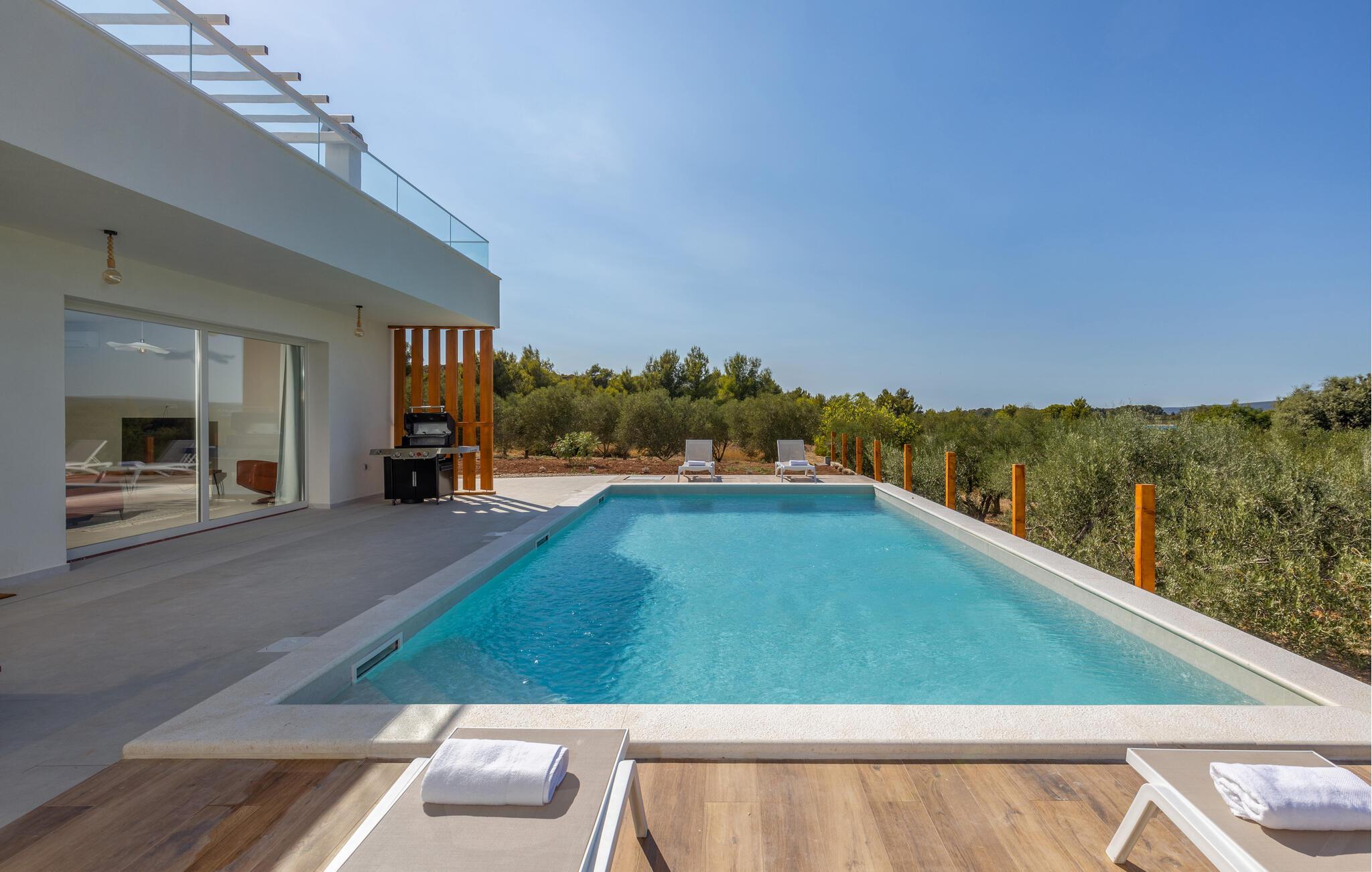 Die Villa Santa Lucia liegt auf der Insel Babac, die zwischen der Stadt Biograd na Moru und der Insel Pašman liegt. Die Insel Babac ist die einzige bewohnte Insel im Archipel aus 16 Inseln vor der Insel Pašman. Die Insel ist voller versteckter Buchten und Sandstrände und eignet sich ideal für einen ruhigen und ruhigen Urlaub. Wenn Sie dem hektischen Alltag entfliehen und den Charme dieser wunderschönen Insel genießen möchten, dann ist Villa Santa Lucia die richtige Wahl für Sie! Es wurde 2022 im zeitgenössischen Baustil erbaut, hat von allen Zimmern aus einen Blick auf die klare Adria und bietet seinen Gästen 207 m2 Wohnfläche, während die Gesamtfläche des Anwesens 780 m2 beträgt. In der Villa können maximal 8 Personen übernachten. Im Erdgeschoss können Sie es sich im Wohnzimmer bequem machen, das über ein Sofa, einen Sessel und einen Fernseher verfügt, und die Kinder werden sich über die PlayStation-Spielekonsole freuen. Außerdem gibt es eine voll ausgestattete Küche und ein Esszimmer mit einem Esstisch für 8 Personen. Sie werden sich in 4 Schlafzimmern wohlfühlen, von denen 2 mit einem Doppelbett und die restlichen zwei mit jeweils zwei Einzelbetten ausgestattet sind. Jedes Schlafzimmer verfügt über ein eigenes Badezimmer mit Dusche. Im Obergeschoss finden Sie eine 220 m² große, begehbare Dachterrasse mit einem Weber-Gasgrill für den Außenbereich, einem Esstisch mit 8 Sitzplätzen sowie Liegestühlen und Trainingsgeräten. Auf der Außenterrasse gibt es einen beheizten Pool von 45 m2, 1,4 m tief, der als zusätzliche Funktionalität über Massage verfügt. Daneben können Sie sich auf den 8 bereitgestellten Sonnenliegen sonnen. Zu den weiteren Annehmlichkeiten der Villa Santa Lucia gehören eine Waschmaschine, ein Bügeleisen und ein separates WC. Wenn Kinder in den Urlaub mitkommen, können Sie einen Futtertrog und ein Babybett nutzen. Wenn Sie mit Ihrem eigenen Boot anreisen, haben Sie die Möglichkeit, den Bootsliegeplatz zu nutzen. Wir bieten Ihnen die Vermietung eines 8-Meter-Bootes MF 795 und eines Skippers für den Transport zum Ufer für Besichtigungen der Inseln Pašman, Komornik und Galesnjak (eine herzförmige Insel) an. Im Preis inbegriffen:
