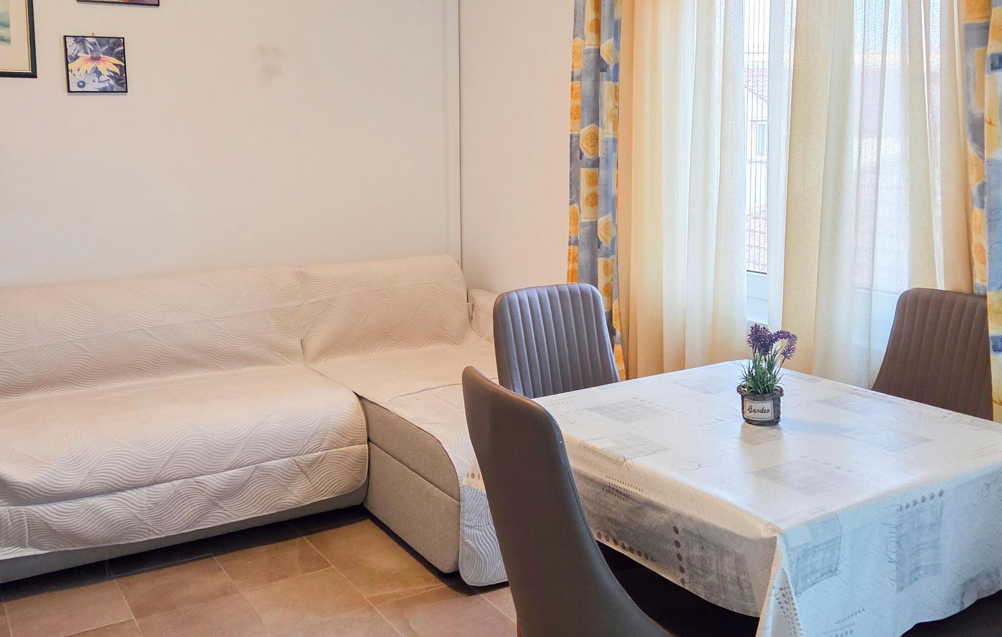 Diese helle und behagliche Ferienwohnung begrüßt Sie im reizvollen Ferienort Pakostane und bietet Ihnen zwischen Meer, Naturpark und See den idealen Ausgangspunkt für abwechslungsreiche Ausflüge. Bereiten Sie Ihre Lieblingsmahlzeiten zu und planen Sie den Tag bei harmonischen Mahlzeiten im einladenden Wohnbereich. Legen Sie nach einer langen Tour die Füße auf dem Sofa hoch, vertiefen Sie sich in Ihre Urlaubslektüre oder widmen Sie sich einem Brettspiel.