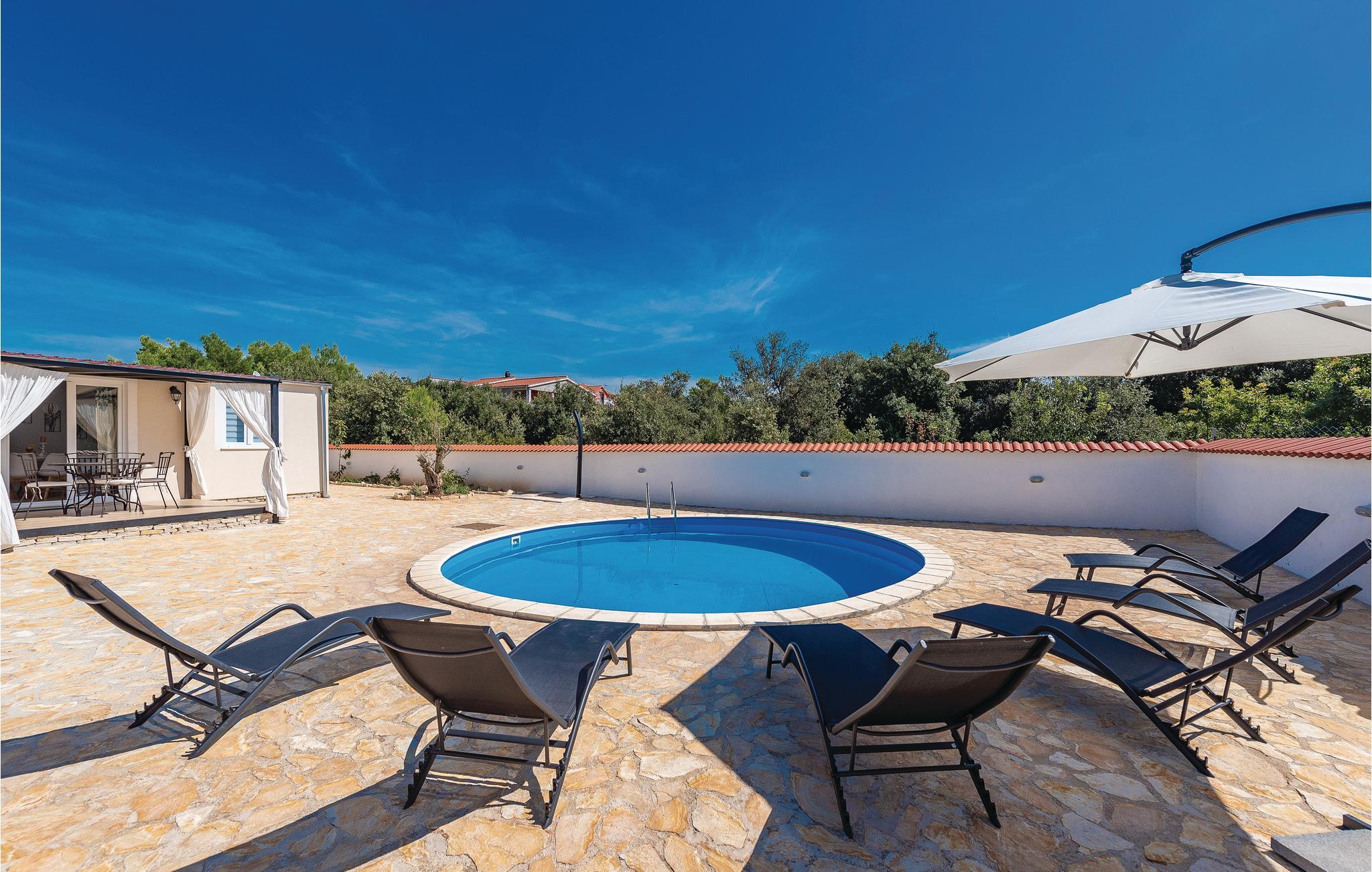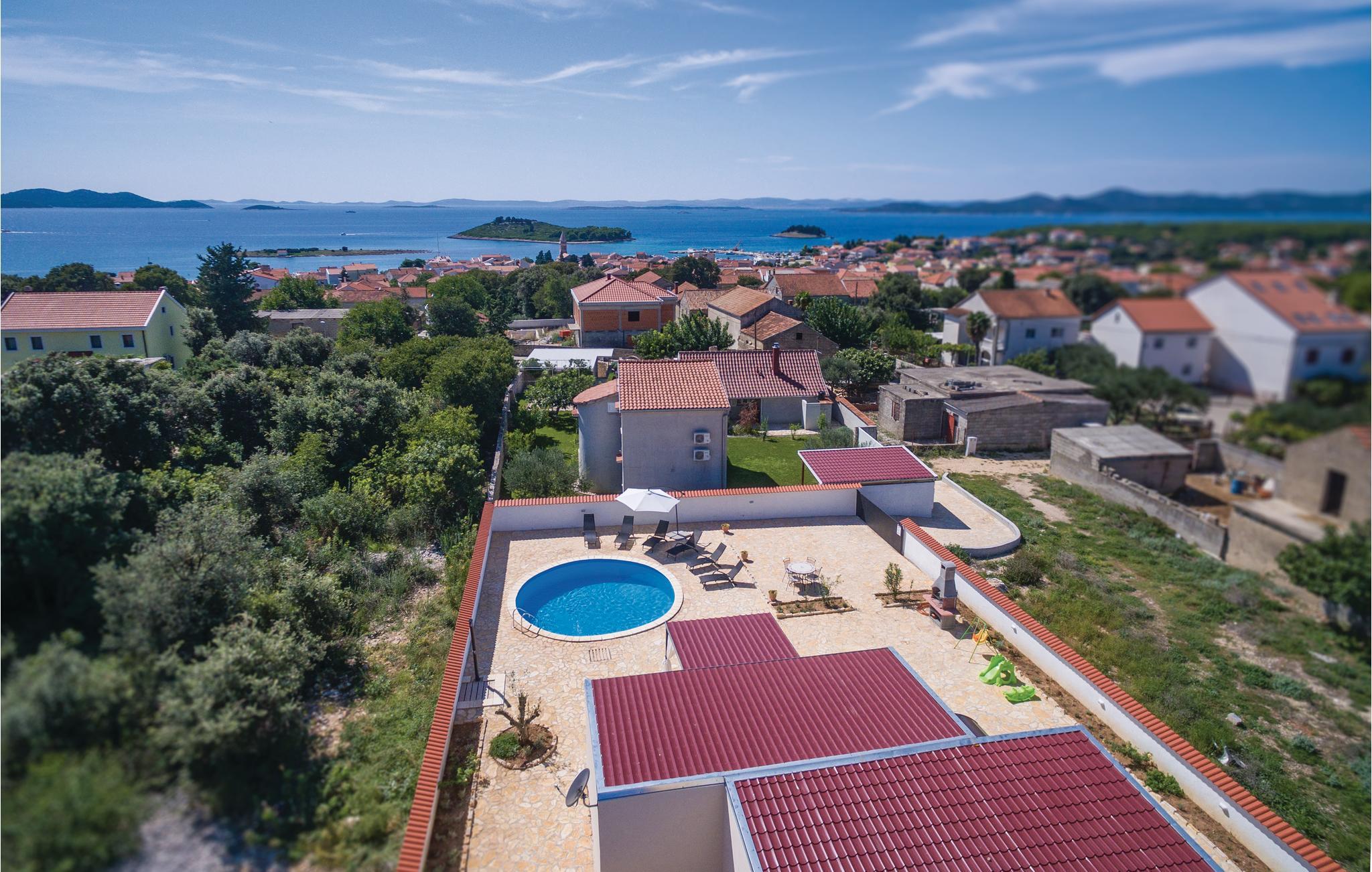Im kleinen Küstenort Pakoštane, das zwischen dem Meer und den Vrana See liegt befindet sich dieses wunderbare Ferienhaus mit Pool. Es ist komplett ausgestattet und geschmackvoll eingerichtet und bietet seinen Gästen eine angenehme Wohnatmosphäre. Auf dem gepflegten Grundstück stehen Ihnen eine Terrasse zum Entspannen sowie ein erfrischender Pool zur Verfügung. Da das Fischerdorf Pakoštane zwischen den schönen Städten Zadar und Šibenik liegt, haben Sie viele Ausflugsmöglichkeiten: Zur einst königlichen Stadt Biograd, Naturparks Vrana See und Telešcica, die Nationalparks Krka und Kornati. Empfehlenswert ist auch ein Besuch des nahe gelegenen Freizeitparks, der aus drei Themenbereichen, Wilder Westen, Piratenstadt und Universum, besteht.