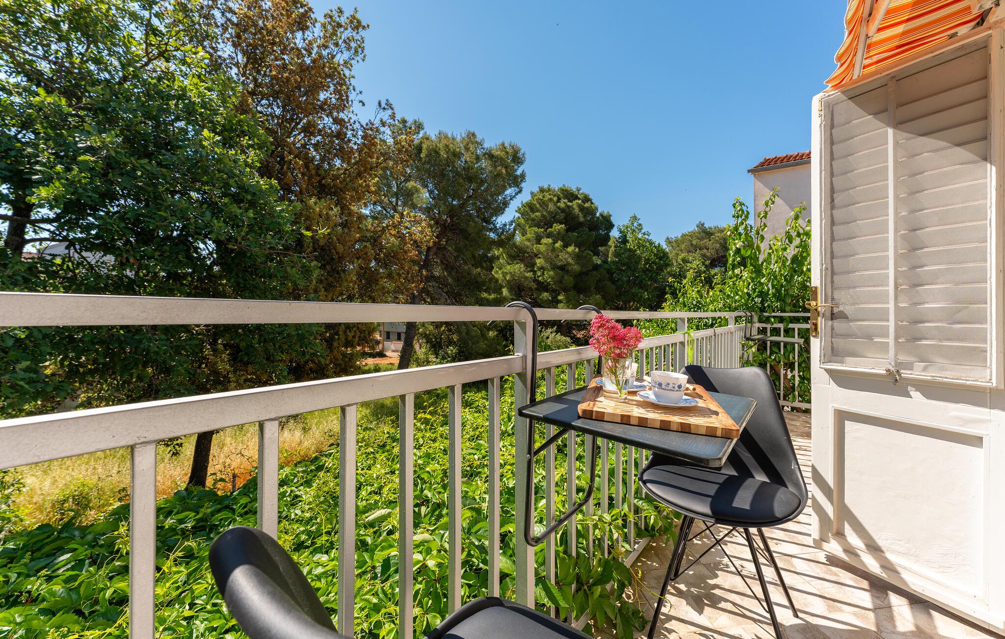 Ihr sonniger Balkon bietet einen schönen Blick ins Grüne – starten Sie hier mit einem Frühstück in den Tag. Entspannen Sie im schattigen Gemeinschaftsbereich mit Ihrer Urlaubslektüre und knüpfen Sie nette Kontakte am Grill.