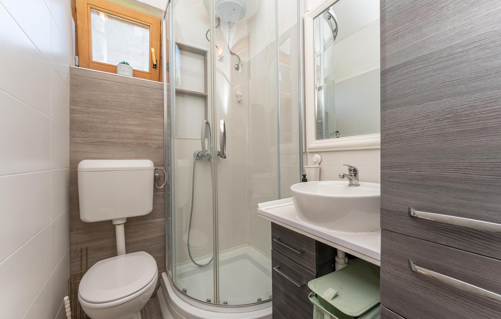 - WC mit warmem und kaltem Wasser, Dusche