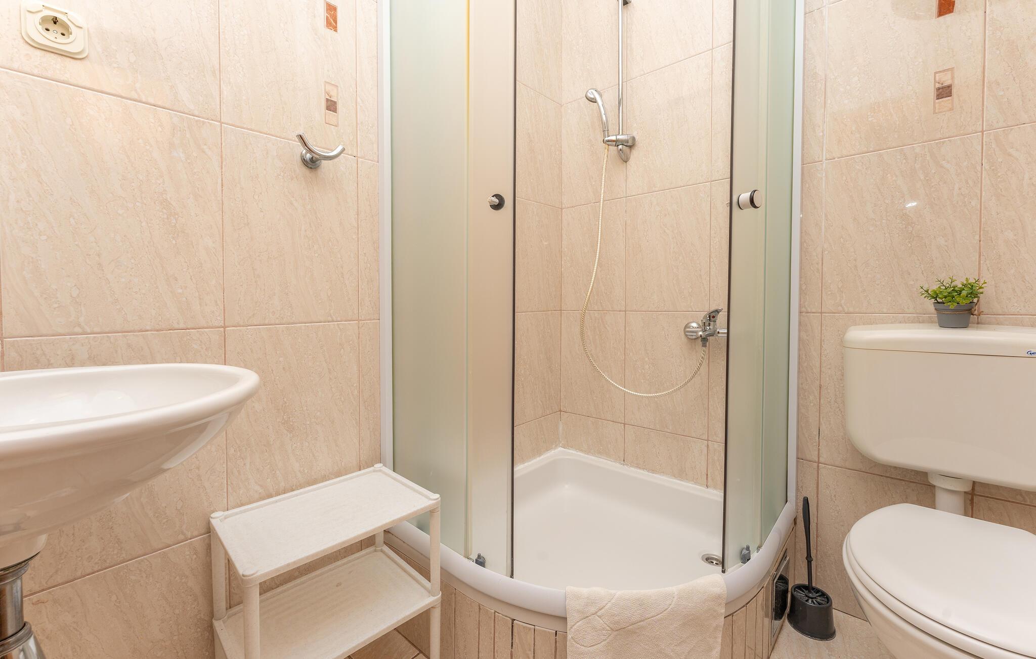 - WC mit warmem und kaltem Wasser, Dusche