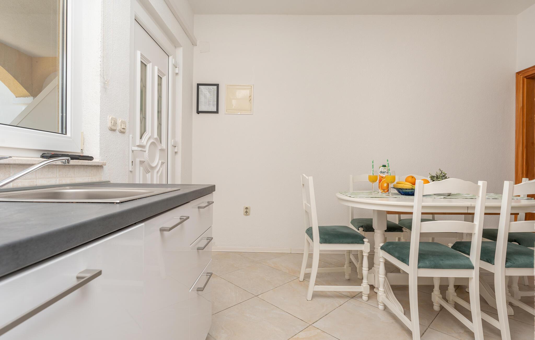 In dieser hellen Wohnung sind eine praktische Ausstattung und rustikaler Charme miteinander kombiniert. Eine Holzbalkendecke, Natursteine und dezente Farben ergeben ein harmonisches Ganzes, in dem Sie schnell abschalten können. Schmökern Sie auf dem bequemen Sofa in Ihrer Urlaubslektüre, kochen Sie gemeinsam schmackhafte Gerichte und lassen Sie den Abend entspannt bei Brett- oder Kartenspielen ausklingen.