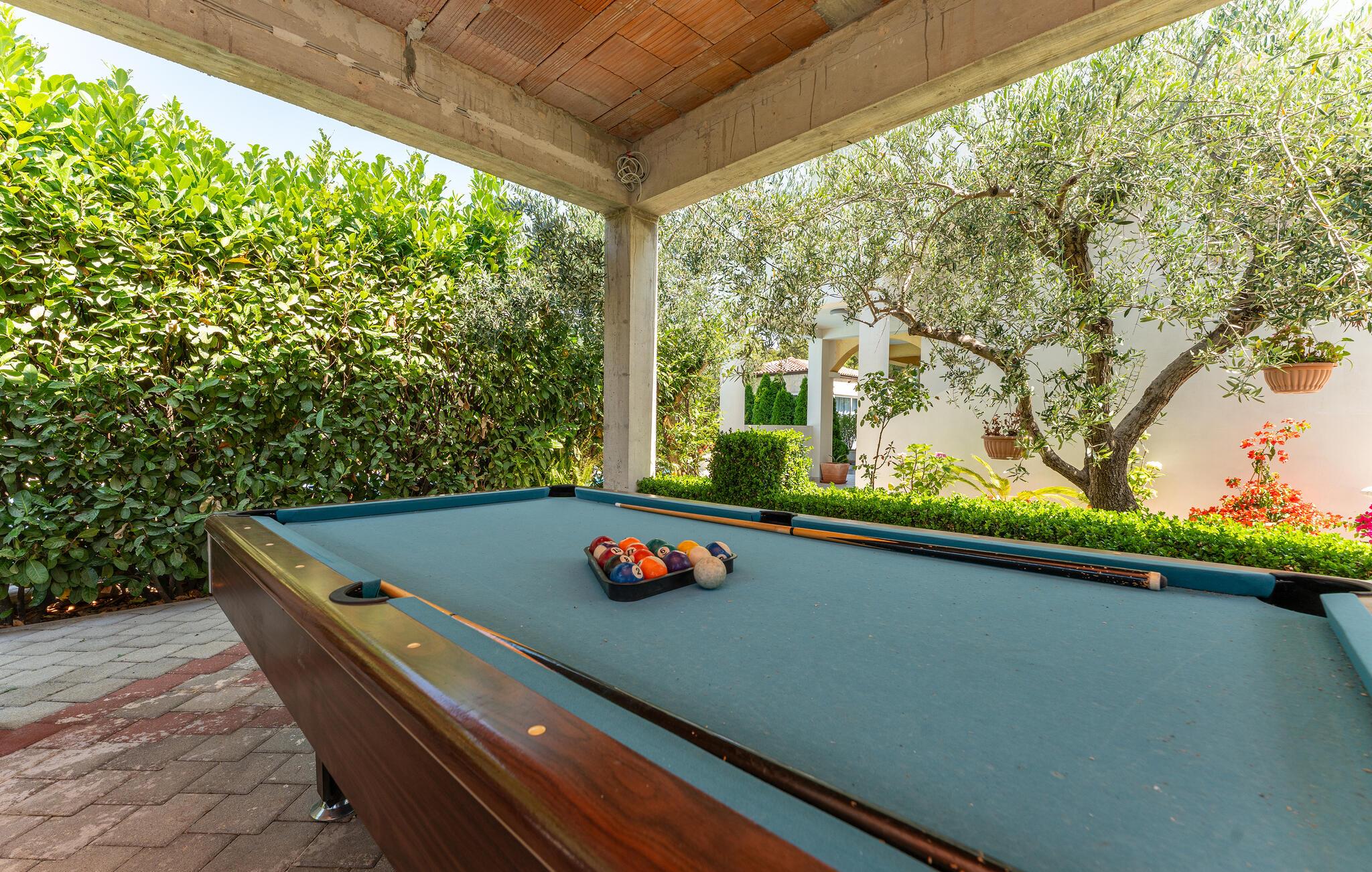 Beginnen Sie den Tag mit einem Sprung ins erfrischende Wasser und ziehen Sie entspannt Ihre Bahnen im gemeinschaftlich genutzten Pool. Danach laden Sonnenliegen zum Verweilen ein. Wer Lust auf etwas Abwechslung hat, kann sich beim Billard oder Tischfußball mit anderen Gästen messen und den Sieger anschließend mit einem Glas Wein feiern.