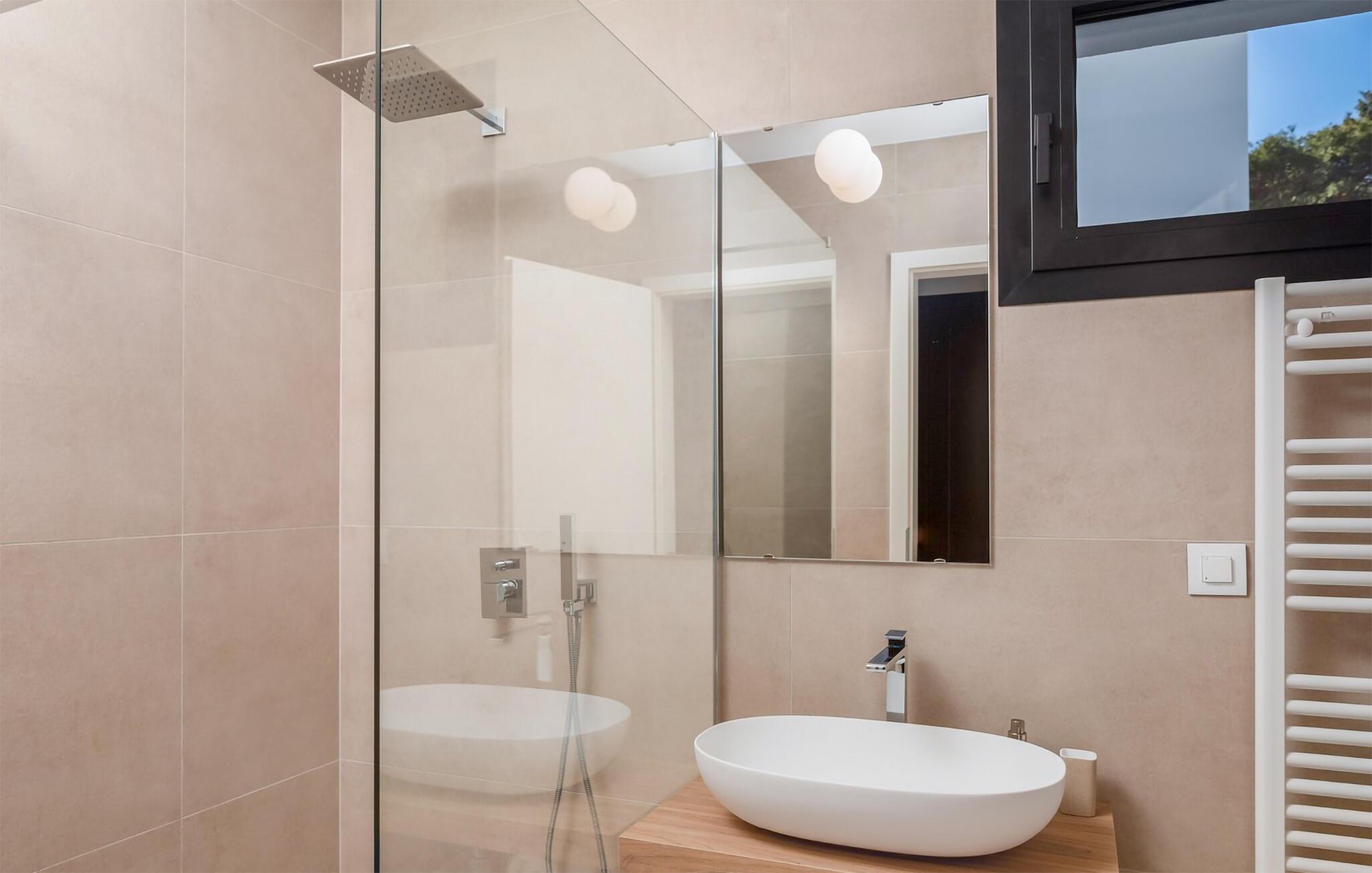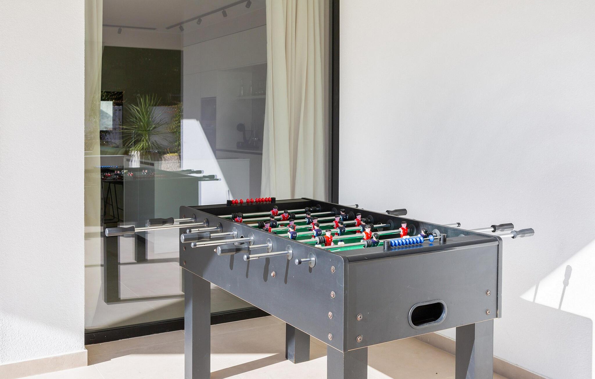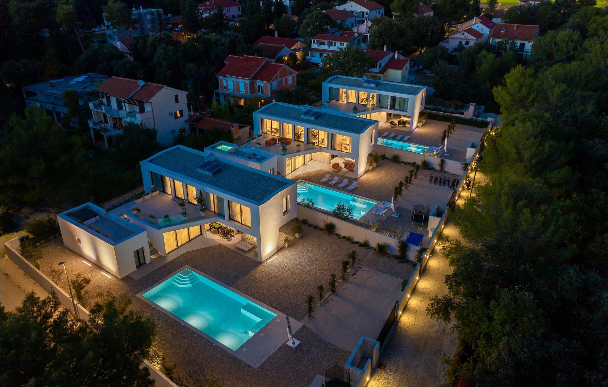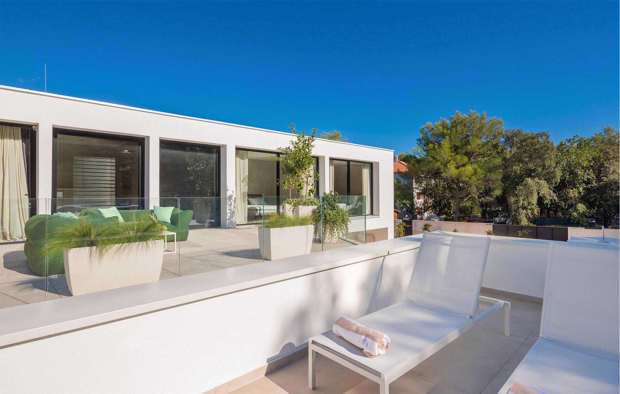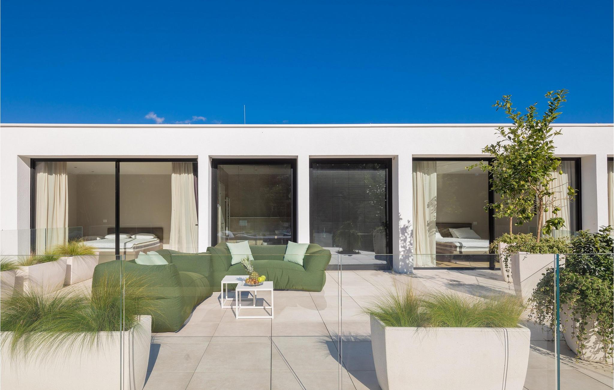 Auch der elegante Außenbereich lässt keine Wünsche offen. Servieren Sie sich Ihr Frühstück auf der schönen Terrasse, erfrischen Sie sich im herrlichen Pool, plaudern Sie bei einem Glas Wein auf bequemen Lounge-Möbeln und nutzen Sie den Fitnessbereich für Ihr Workout. In der Sommerküche können Sie mediterrane Beilagen für stimmungsvolle Grillabende zubereiten, und auf der Terrasse im Obergeschoss lädt ein Whirlpool zu romantischen Momenten bei Sonnenuntergang ein.