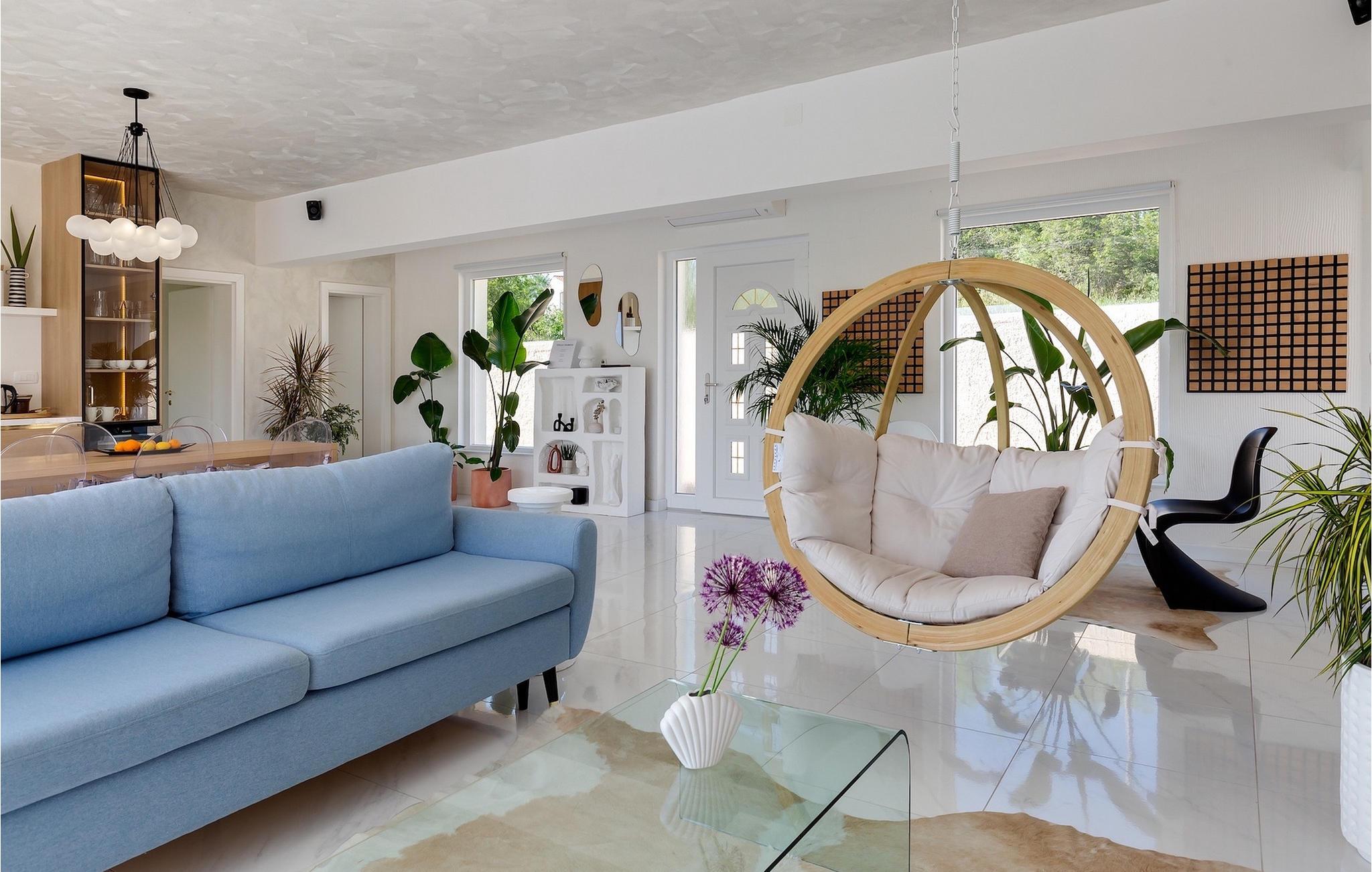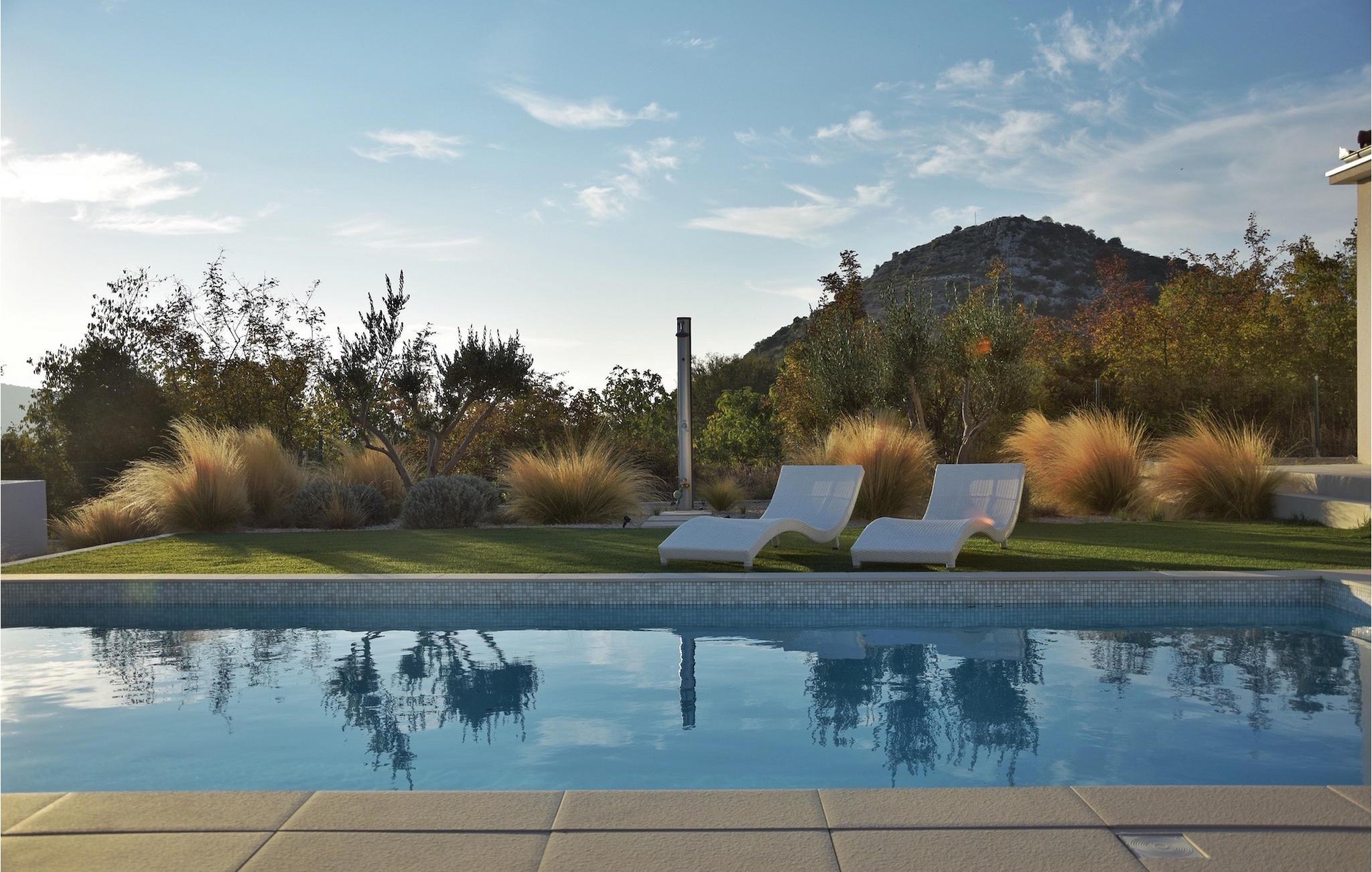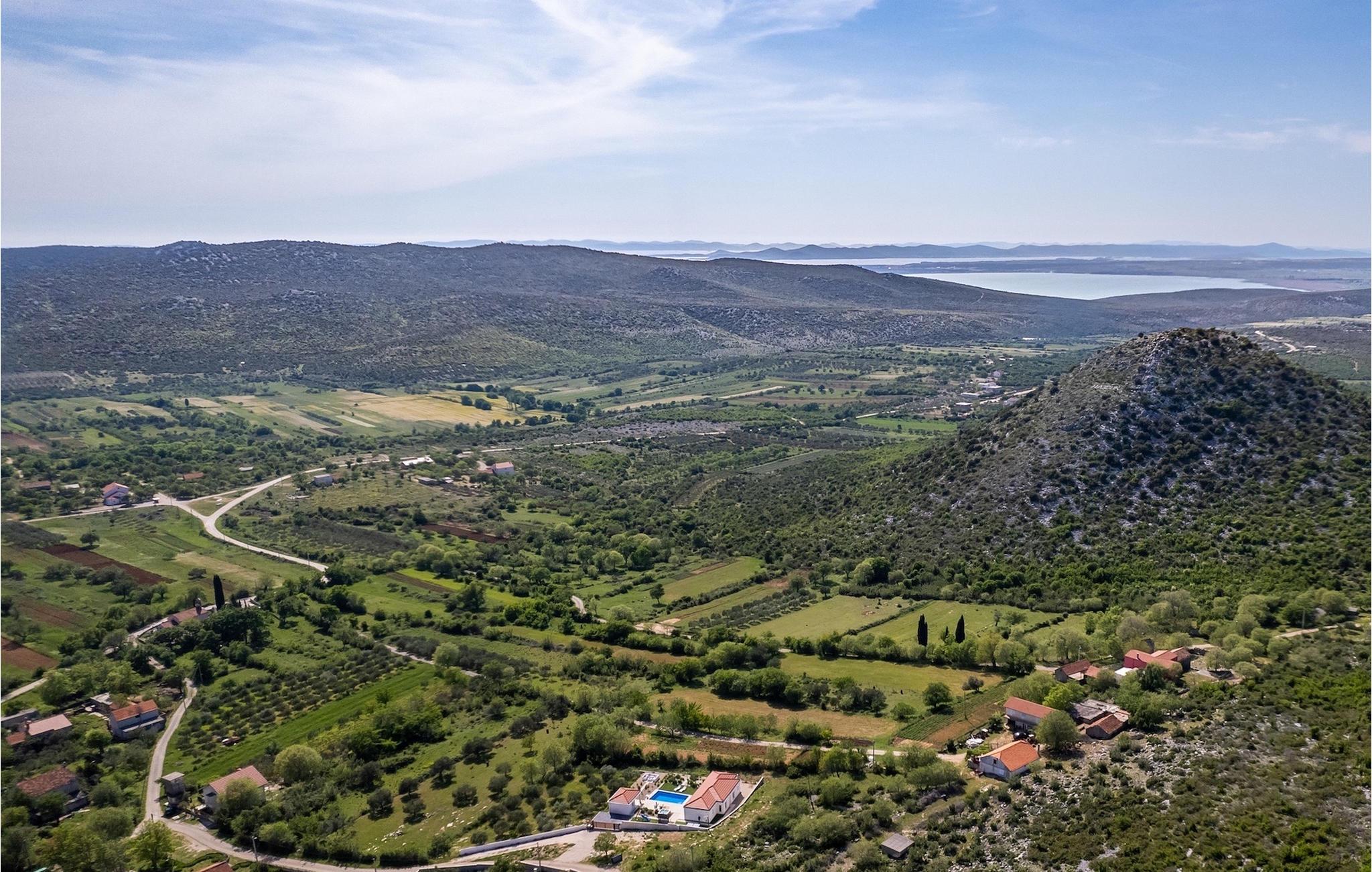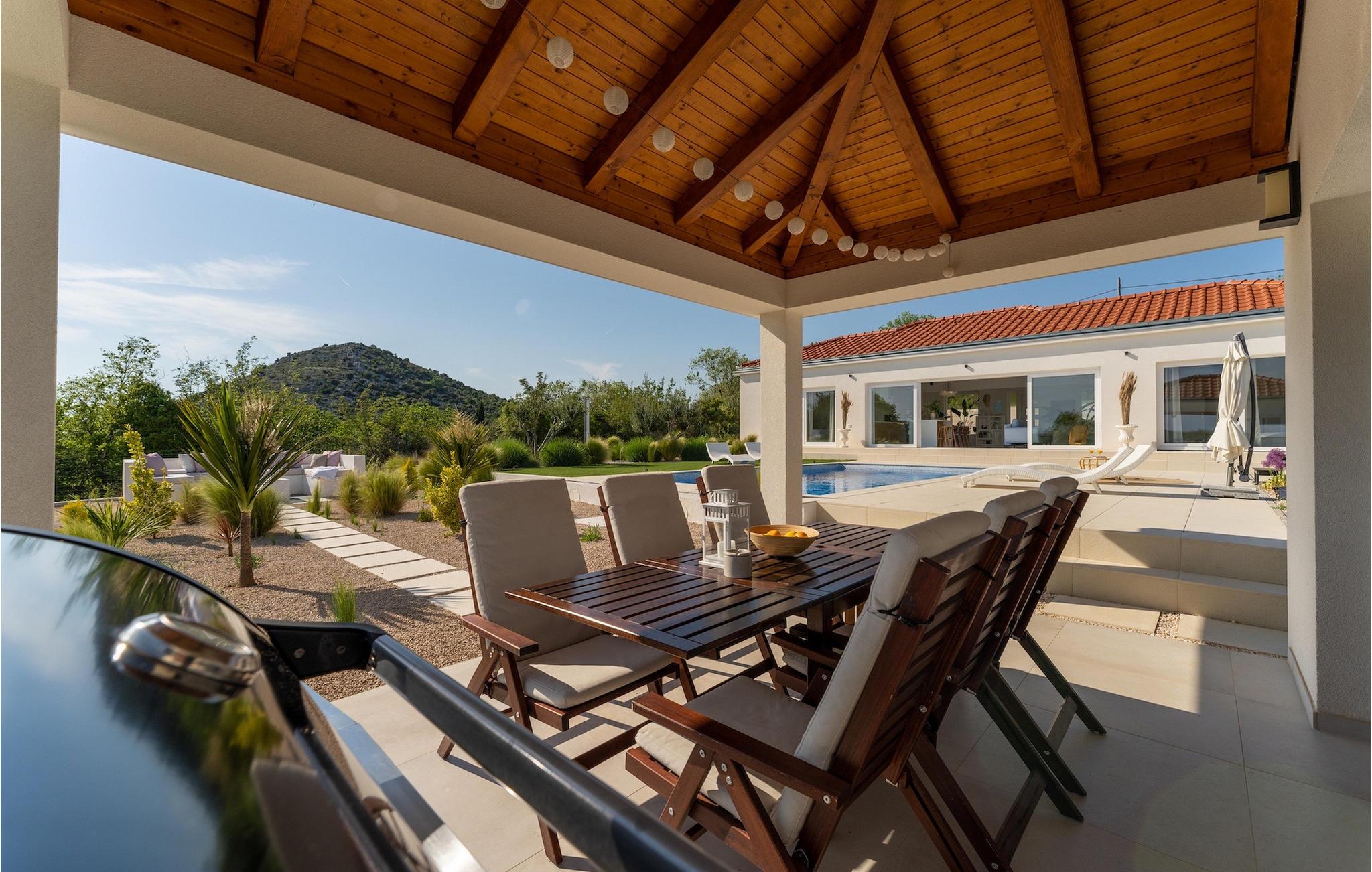Das Herzstück der Villa Nebesi ist sicherlich der helle offene Wohn- und Essbereich mit Küche und wundervollem Ausblick auf den Außenbereich. Die Mischung aus Naturtönen und stilvollen Farbakzenten erzeugt ein wohnliches Ambiente, in dem Sie sich wie zu Hause fühlen werden. In der modernen Küche können Sie Ihr Lieblingsgericht zubereiten und anschließend mit Blick auf den schönen Außenbereich der Villa genießen. Der Wohnbereich mit Hängesessel und gemütlichem Sofa am Kamin lädt zum Verweilen ein. Ein Sitzecke mit Schachspiel rundet diesen Bereich ab. Im Erdgeschoss befinden sich außerdem zwei komfortable Schlafzimmer mit jeweils eigenem Bad sowie ein Gäste-WC. Praktischerweise verfügen die Schlafzimmer und der Wohn- und Essbereich über große Glastüren, die Sie zum nicht minder attraktiven Außenbereich der Villa führen. Im Mittelpunkt steht der private Pool, in dem Sie sich an warmen Sommertagen erfrischen können. Um ihn herum befinden sich zahlreiche Sonnenliegen sowie die Außendusche. Die kleinen Gäste werden sich sicherlich über den Spielplatz mit Trampolin und Tischtennisplatte freuen, was Villa Nebesi zum idealen Ferienhaus für Kleinfamilien macht. Außerdem befindet sich am Pool ein Sitzbereich und eine Sommerküche mit überdachtem Außenessbereich und Gasgrill. Buchen Sie Villa Nebesi für einen unvergesslichen Urlaub in Dalmatien.Die charmante Villa Nebesi befindet sich im Ort Radasinovci in der Gemeinde Benkovac und in der Nähe größerer touristischer Städte wie Zadar (55 km Entfernung) oder Sibenik (40 km Entfernung). Die Lage ist ein guter Ausgangspunkt falls Sie gerne die Schönheit der Inseln (z. B. Pasman, Ugljan, Iz) bewundern möchten. Besuchen Sie naheliegende Inseln und genießen Sie einsame Buchten, das kristallklare Meer und den natürlichen Duft der Kiefern. Nur 11 km von der Villa entfernt befindet sich auch der größte See Kroatiens - der Vrana-See, der seit dem 21. Juli 1999 Naturschutzgebiet ist. Erkunden Sie den See direkt am Meer, umgeben von Bergen. Hier können Sie wandern, Rad fahren oder ein Camping Ausflug machen. Außerdem gibt es mehrere Nationalparks (Kornati, Krka, Paklenica, Nördlicher Velebit und die weiter entfernten Plitvicer Seen) und zahlreiche kulturelle und historische Sehenswürdigkeiten in Zadar und Sibenik zu entdecken. Der berühmte Touristenort Biograd na Moru (20 km Entfernung) bietet unzählige gastronomische Einrichtungen und Strände sowie den Fun Park Mirnovec, falls Sie zusätzliche Aktivitäten für Ihre Familie wünschen.