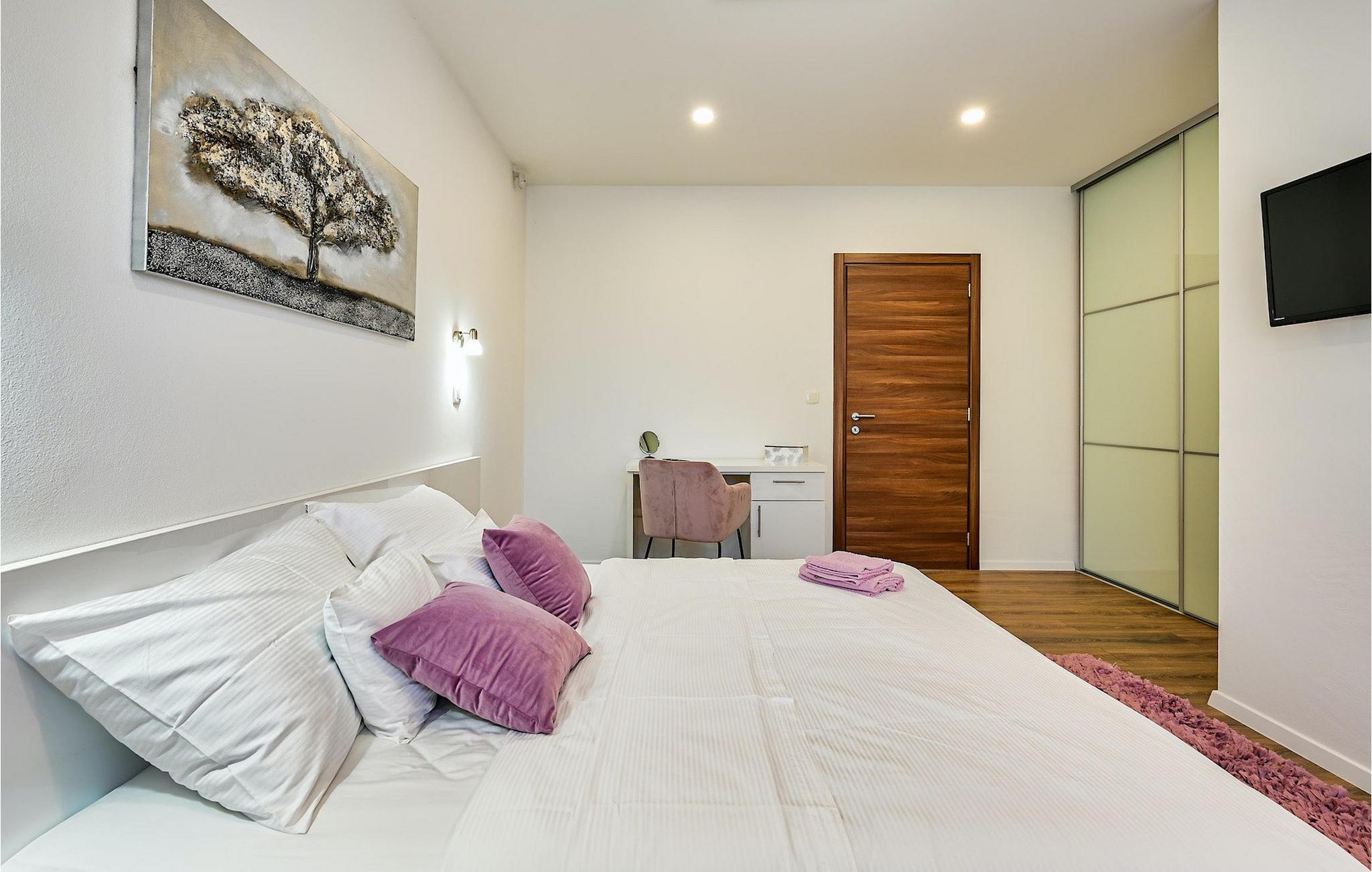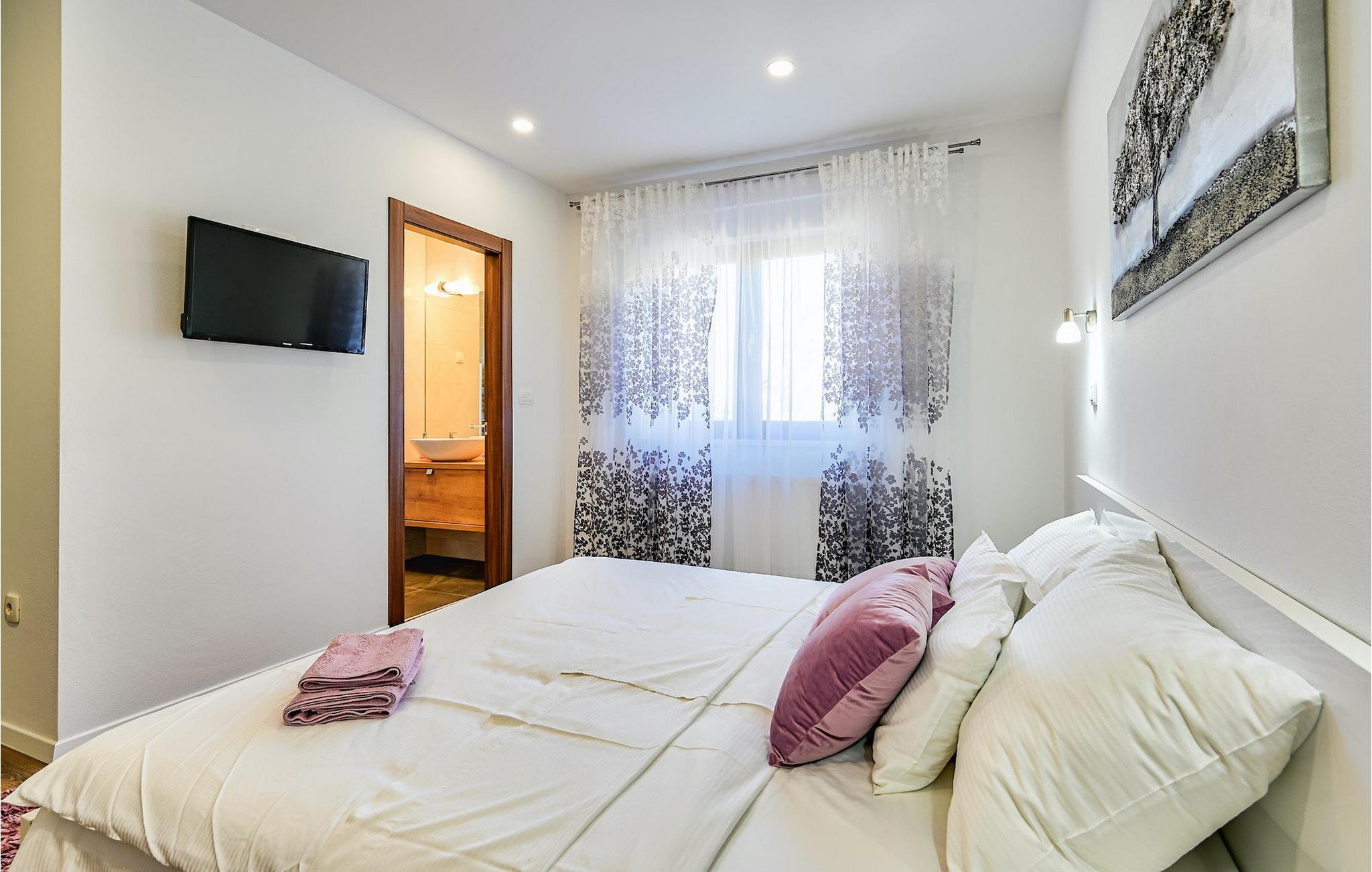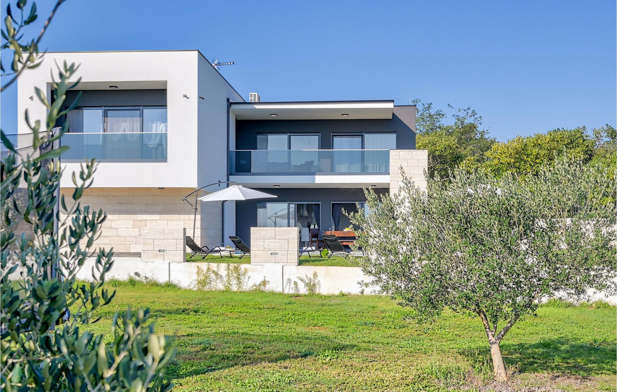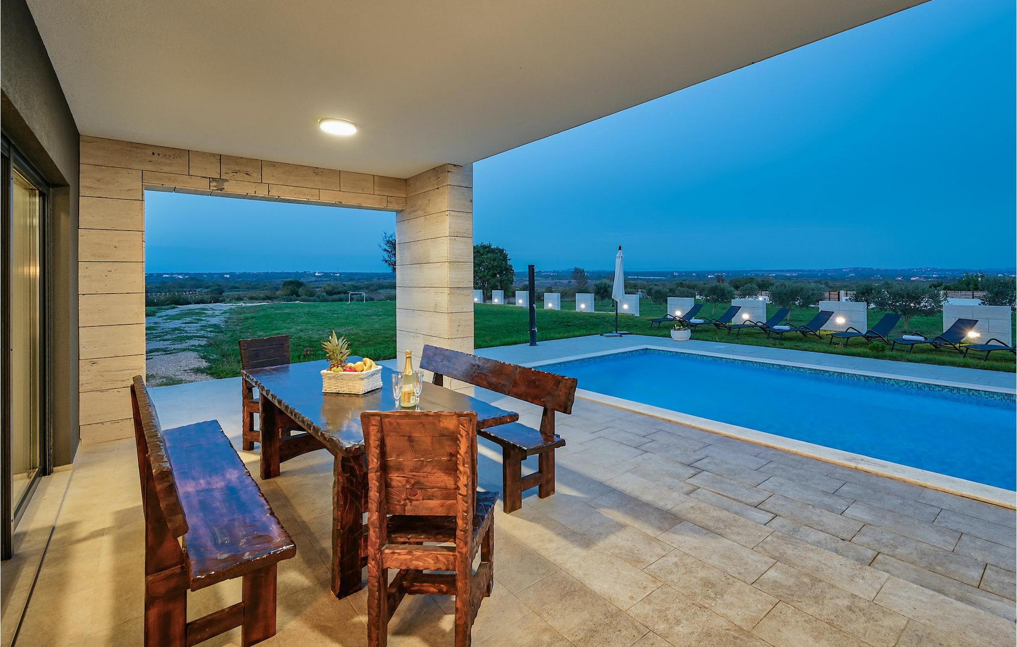 If you are looking for a beautiful, modern villa close to the sea and untouched nature, Villa FA Exclusive is your right choice! This wonderful villa can accommodate 8 guests in 4 bedrooms and it has much more to offer. If you are looking for entertainment or a little work-out session you will find some fitness equipment and darts on the ground floor. The ground floor also offers a spacious, contemporary furnished area with a living and dining room and a nice, furnished kitchen. Here you will also find a bedroom, while the other 3 are located on the first floor. All the bedrooms have double beds, air conditioners and TVs at disposal and the ones on the floor also have en suite bathrooms. The outdoor area with the inviting pool is the perfect place for sunbathing and relaxation on one of the sun loungers. If you are traveling with kids the garden disposes over a playground for children as well as a trampoline. For al fresco dinner nights there is also a grill available and the first beach is only 3 km away.Die Villa FA Exclusive befindet sich in einen kleinen Ort Donje Rastane gegenüber der Pasman Insel und nur etwa 20 km entfernt von einem der sehenswerten Touristenzentrums Dalmatiens - Zadar. Diese Lage ist perfekt für diejenigen die gerne am Strand ausruhen, aber auch für aktive Urlauber da der Nationalpark Paklenica nur 50 km entfernt ist. In der Nähe befindet sich auch der Vrana See mit schöner Natu, zwischen Meer und den Bergen. Hier kann man schön wandern, Radtouren machen und die Natur bewundern. Besuchen Sie auch unbedingt die wunderschöne Stadt Zadar mit zahlreichen kulturellen und gastronomischen Angebot. Besuchen Sie viele Museen, bewundern Sie die antike Architektur oder genießen Sie natürliche Strände und das aktive Nachtleben. Im Stadtzentrum von Zadar dürfen Sie nicht verpassen das alte Forum mit der Kirche des hl. Donatus (aus den 9. Jahrhundert) zu besuchen. Dies ist eines der wichtigsten Denkmale von Zadar, mit der Kirche im romanischen Stil erbaut.