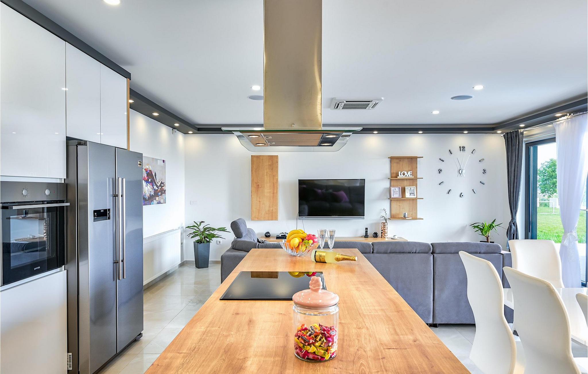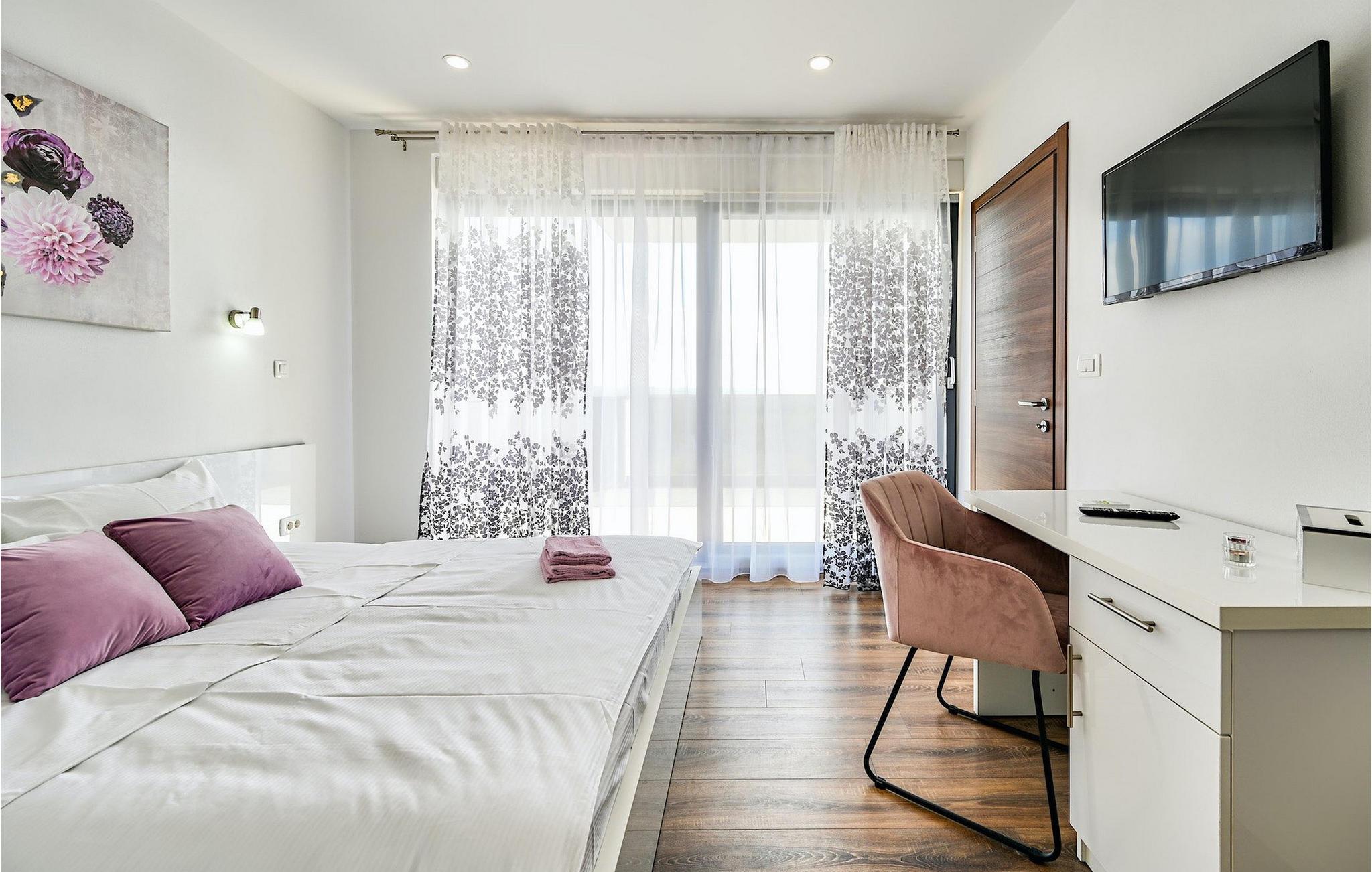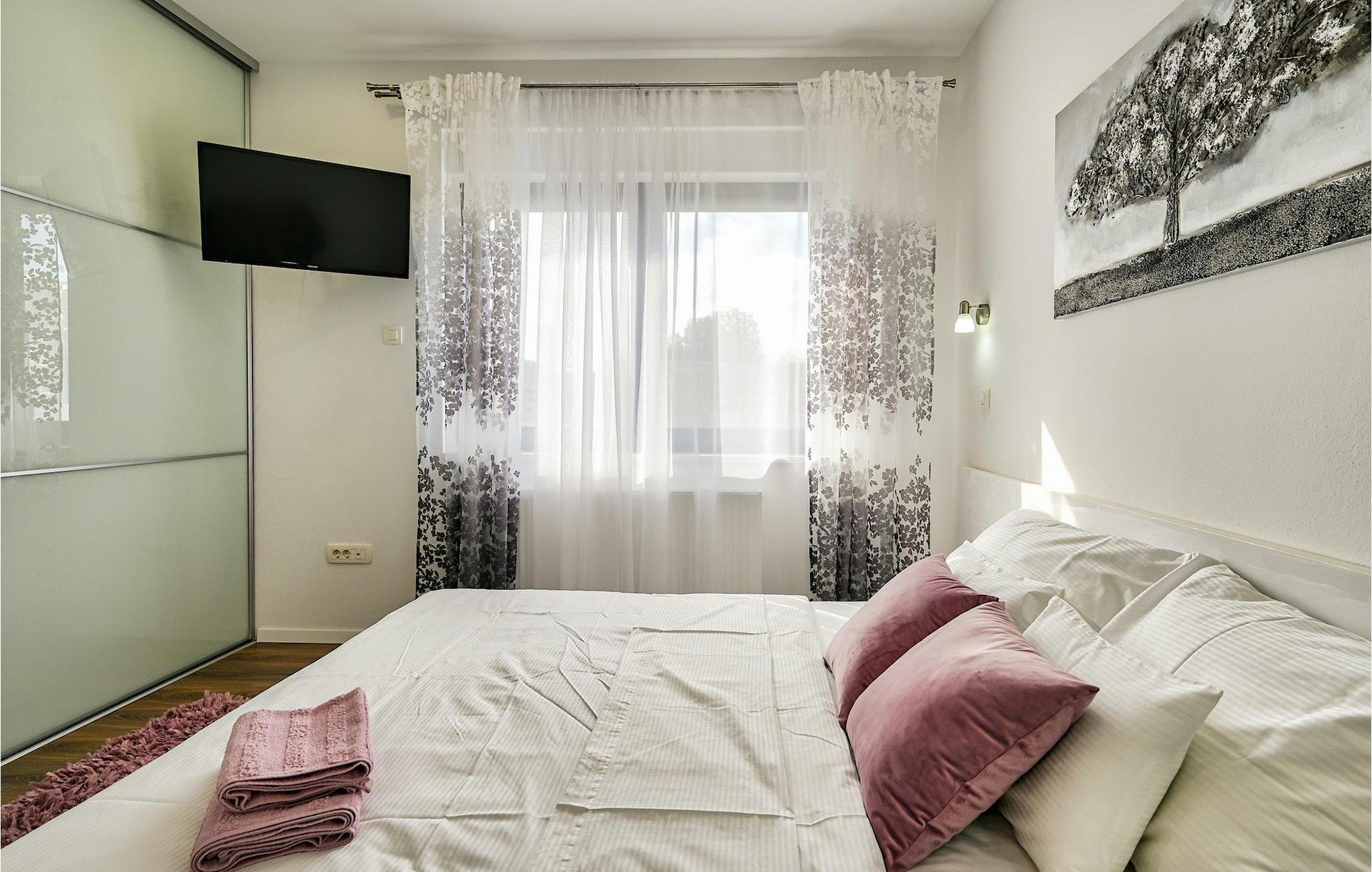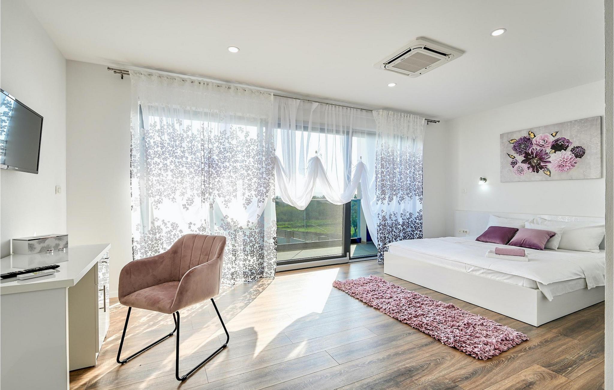 If you are looking for a beautiful, modern villa close to the sea and untouched nature, Villa FA Exclusive is your right choice! This wonderful villa can accommodate 8 guests in 4 bedrooms and it has much more to offer. If you are looking for entertainment or a little work-out session you will find some fitness equipment and darts on the ground floor. The ground floor also offers a spacious, contemporary furnished area with a living and dining room and a nice, furnished kitchen. Here you will also find a bedroom, while the other 3 are located on the first floor. All the bedrooms have double beds, air conditioners and TVs at disposal and the ones on the floor also have en suite bathrooms. The outdoor area with the inviting pool is the perfect place for sunbathing and relaxation on one of the sun loungers. If you are traveling with kids the garden disposes over a playground for children as well as a trampoline. For al fresco dinner nights there is also a grill available and the first beach is only 3 km away.Die Villa FA Exclusive befindet sich in einen kleinen Ort Donje Rastane gegenüber der Pasman Insel und nur etwa 20 km entfernt von einem der sehenswerten Touristenzentrums Dalmatiens - Zadar. Diese Lage ist perfekt für diejenigen die gerne am Strand ausruhen, aber auch für aktive Urlauber da der Nationalpark Paklenica nur 50 km entfernt ist. In der Nähe befindet sich auch der Vrana See mit schöner Natu, zwischen Meer und den Bergen. Hier kann man schön wandern, Radtouren machen und die Natur bewundern. Besuchen Sie auch unbedingt die wunderschöne Stadt Zadar mit zahlreichen kulturellen und gastronomischen Angebot. Besuchen Sie viele Museen, bewundern Sie die antike Architektur oder genießen Sie natürliche Strände und das aktive Nachtleben. Im Stadtzentrum von Zadar dürfen Sie nicht verpassen das alte Forum mit der Kirche des hl. Donatus (aus den 9. Jahrhundert) zu besuchen. Dies ist eines der wichtigsten Denkmale von Zadar, mit der Kirche im romanischen Stil erbaut.