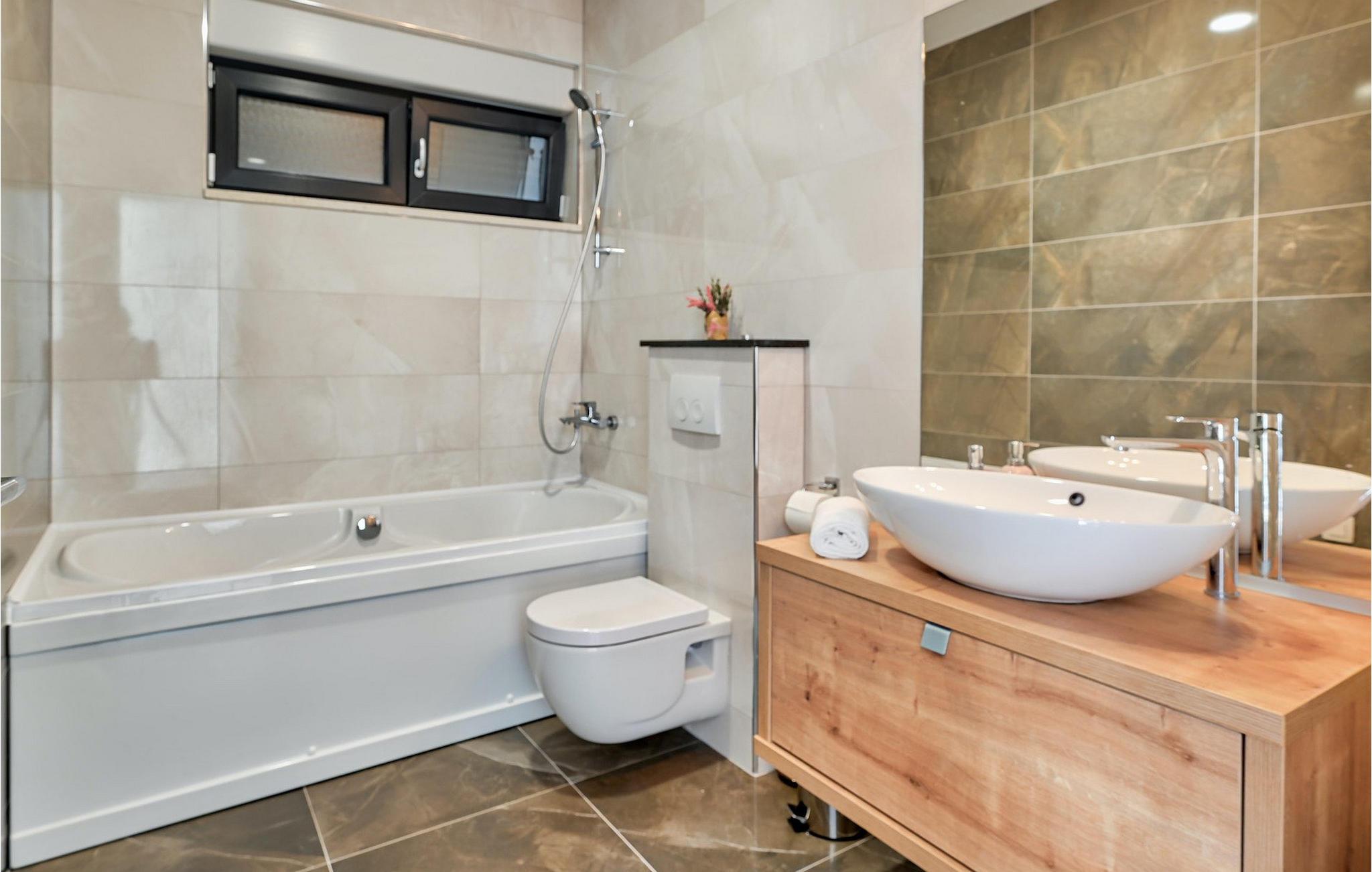 - WC mit warmem und kaltem Wasser, Badewanne