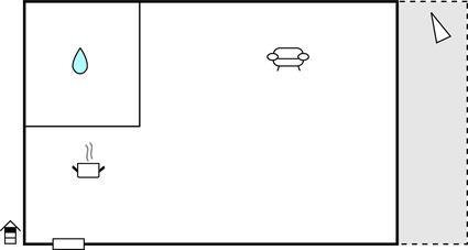 Wohnraum/Küche 14m2 - 2 Schlafmöglichkeiten. (Doppelbett(en)).
