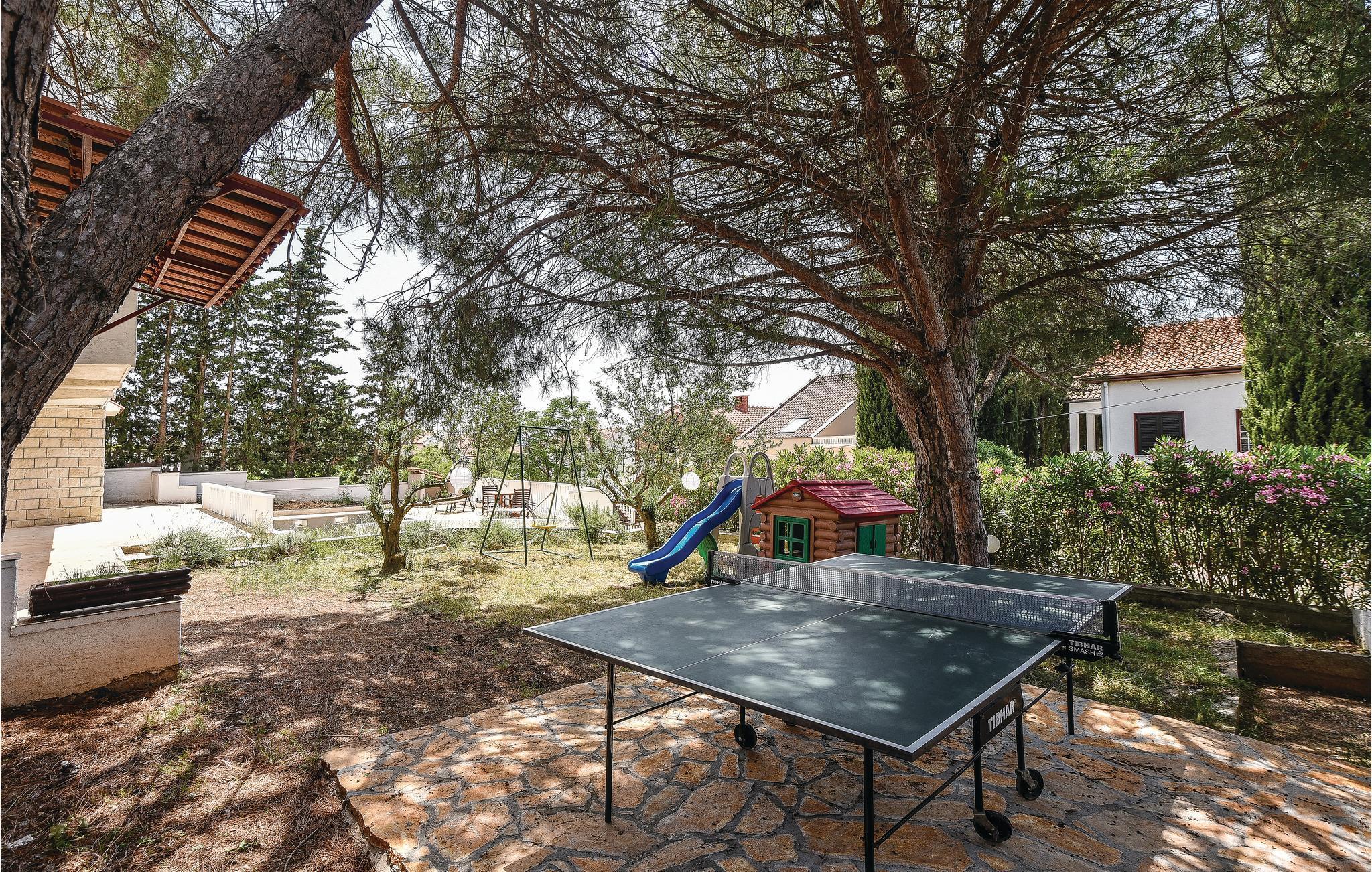 Der Pool liegt auf der Rückseite des umzäunten Grundstücks und bietet dadurch mehr Privatsphäre. Olivenbäumen verleihen dem gepflegten Grundstück eine angenehme Atmosphäre, während Darts und Tischtennis für Unterhaltung sorgen. Den Gästen des Hauses steht es ebenfalls frei die Konoba mit Grillplatz zu nutzen. Genießen Sie Ihre Freizeit zum Relaxen und Sonnenbaden am Sandstrand oder machen Tagesausflüge zum nahe gelegenen Vrana See, den größten natürlichen See Kroatiens. Ein Besuch der Städte Šibenik und Zadar ist empfehlenswert.