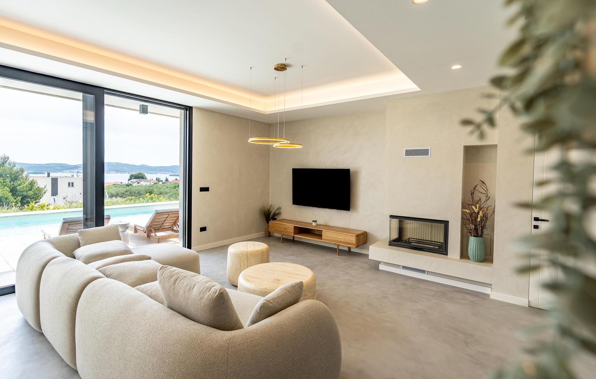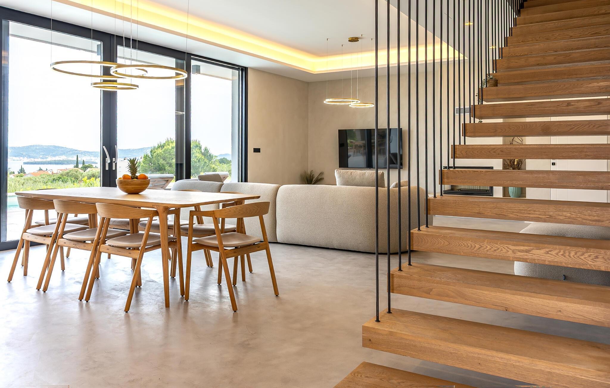Dieses moderne Urlaubsdomizil verwöhnt Sie mit einem hellen, stilvoll und hochwertig eingerichteten Wohnbereich sowie komfortablen Extras, die Ihre gemeinsame Zeit mit Ihren Liebsten zu einem unvergesslichen Erlebnis machen. Freuen Sie sich bei geselligen Mahlzeiten auf einen sensationellen Panoramablick aufs Meer, trainieren Sie im Fitnessraum, entspannen Sie in der Sauna und nehmen Sie für einen gemütlichen Filmabend im Wohnzimmer Platz.