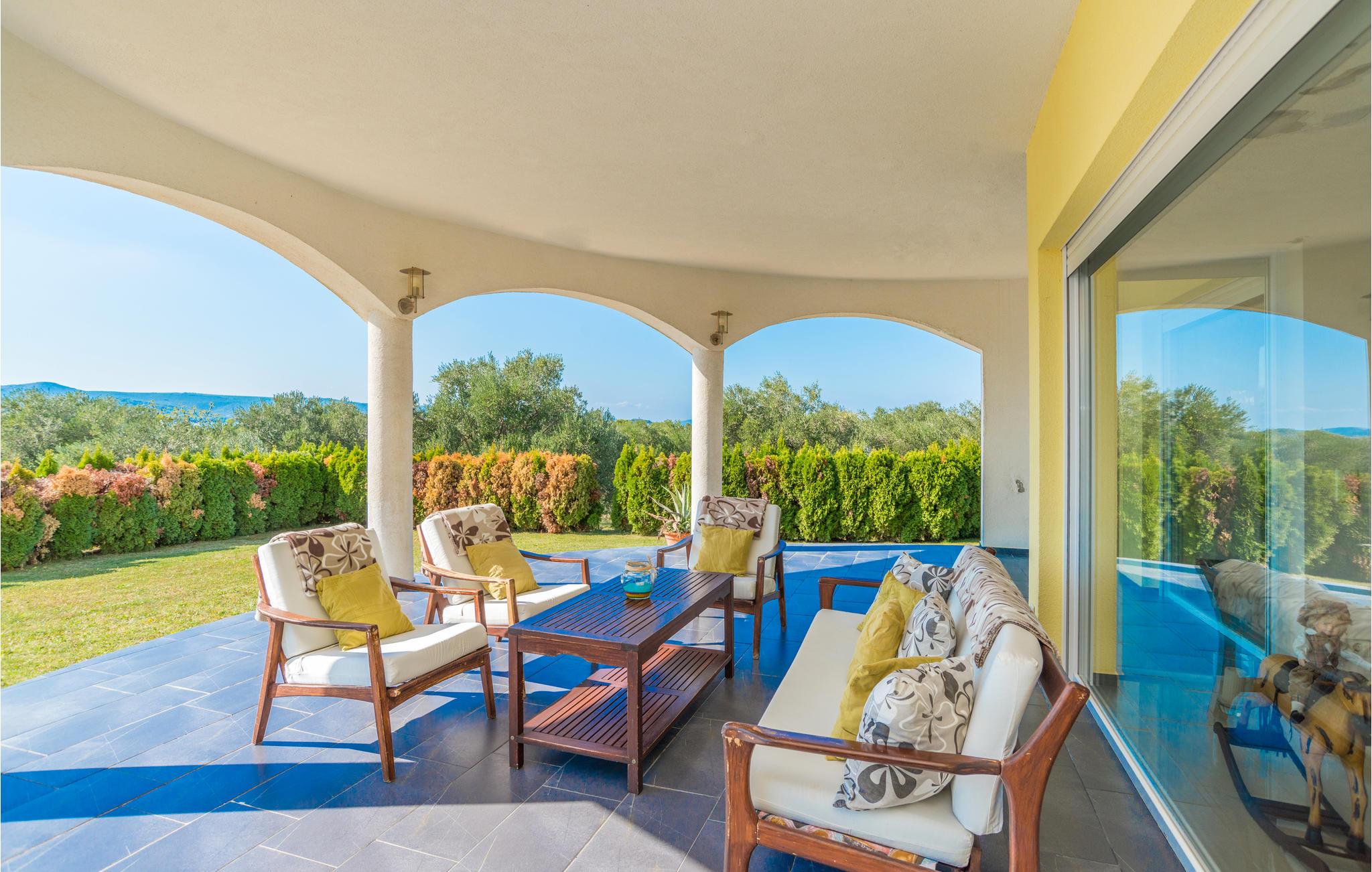 Dieses Ferienhaus mit Pool befindet sich im ruhigen Ortsteil von Turanj, nahe Zadar. Es hat eine große Wohnung im Erdgeschoss und im Obergeschoss befinden sich mehrere Wohneinheiten: zwei Wohnungen mit je zwei Schlafzimmern, eine Wohnung mit einem Schlafzimmer und ein Studio-Apartment. Das Haus ist sehr geräumig und mit allem ausgestattet, was Sie für einen komfortablen Urlaub benötigen. Auf dem begrünten und umzäunten Grundstück gibt es einen beheizten Pool, neben dem eine Konoba mit Kamin, eine zusätzliche Toilette und eine Dusche eingerichtet sind. Jeder Teil des Ferienhauses ist gut ausgestattet und bietet ausreichend Komfort, während der Außenbereich mit Freizeiteinrichtungen Abwechslung bietet. Die überdachte Terrasse bietet kühlenden Schatten an heißen Sommertagen. Kinder werden den Platz auf jeden Fall für Spiele auf dem Rasen oder im Pool nutzen. Biograd ist ein touristisches und nautisches Reiseziel in Norddalmatien und ein ausgezeichneter Ausgangspunkt für den Besuch von Nationalparks wie Kornati, Paklenica, Krka-Wasserfällen und Plitvicer Seen.