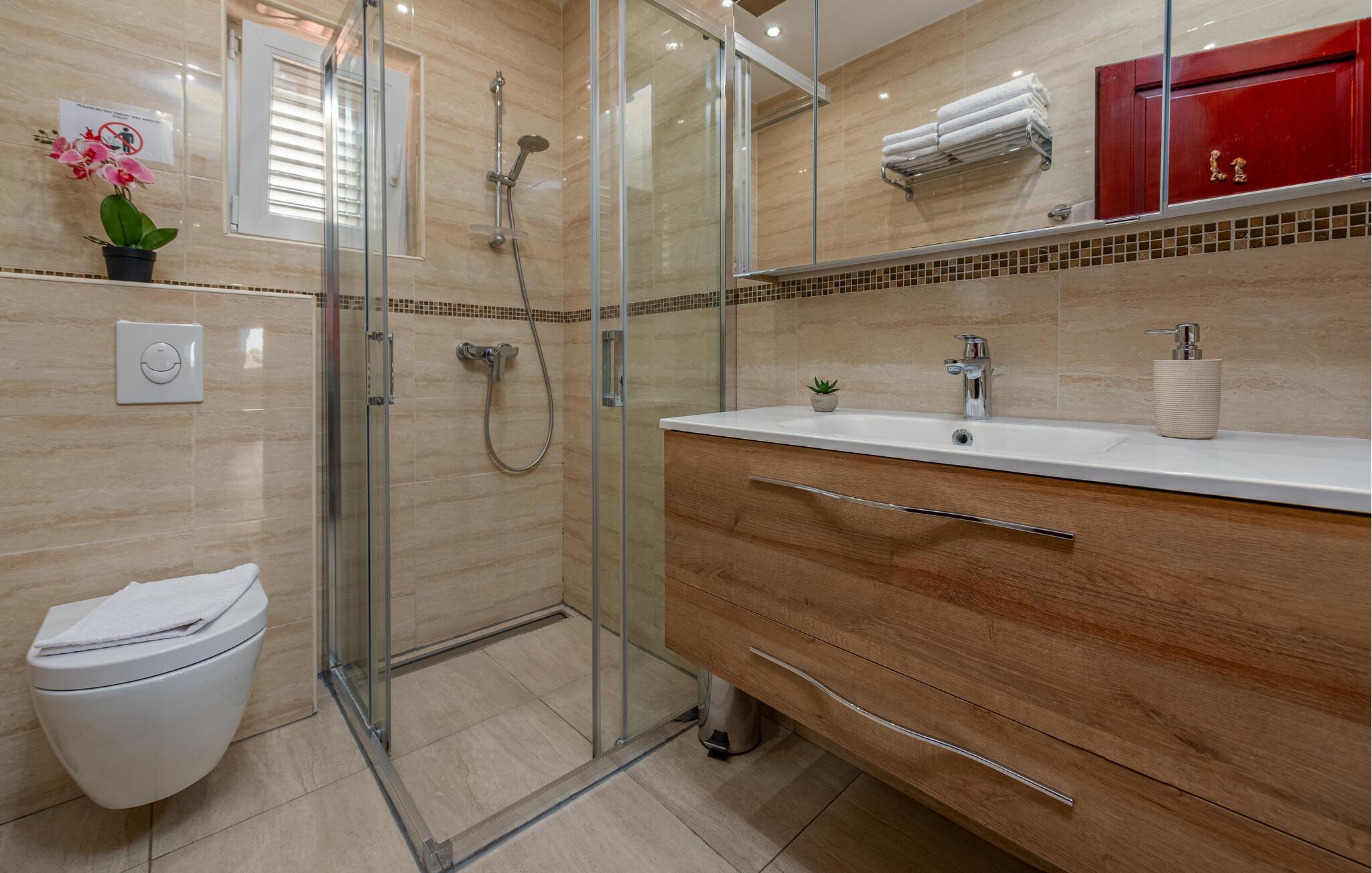 - WC mit warmem und kaltem Wasser, Dusche