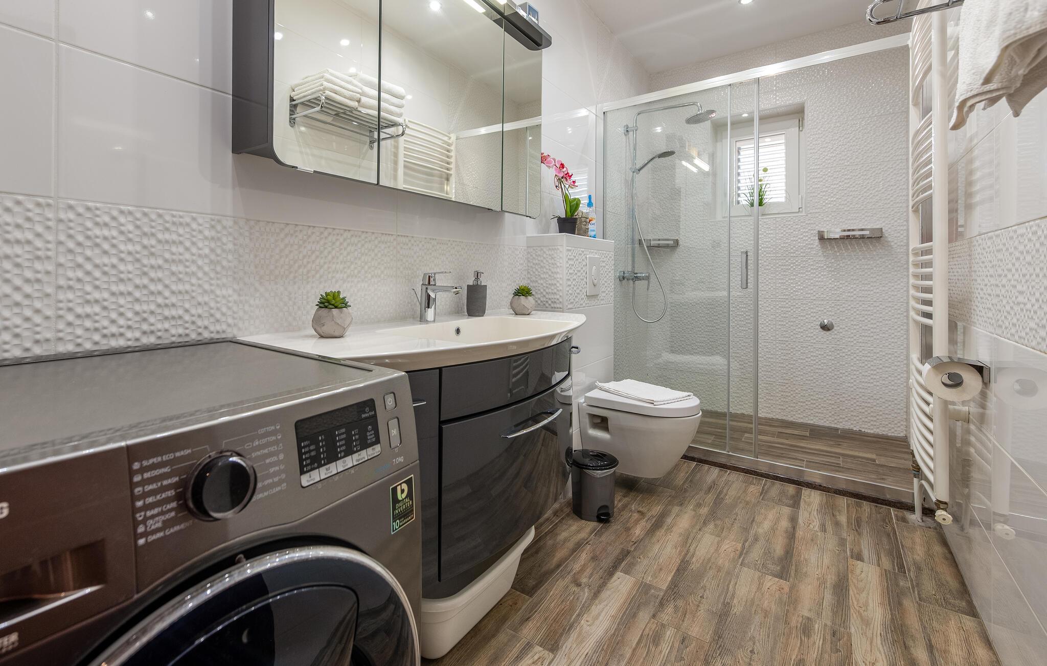 Diese geräumige XXL Doppelhaushälfte befindet sich in dem kleinen Küstenort Turanj.