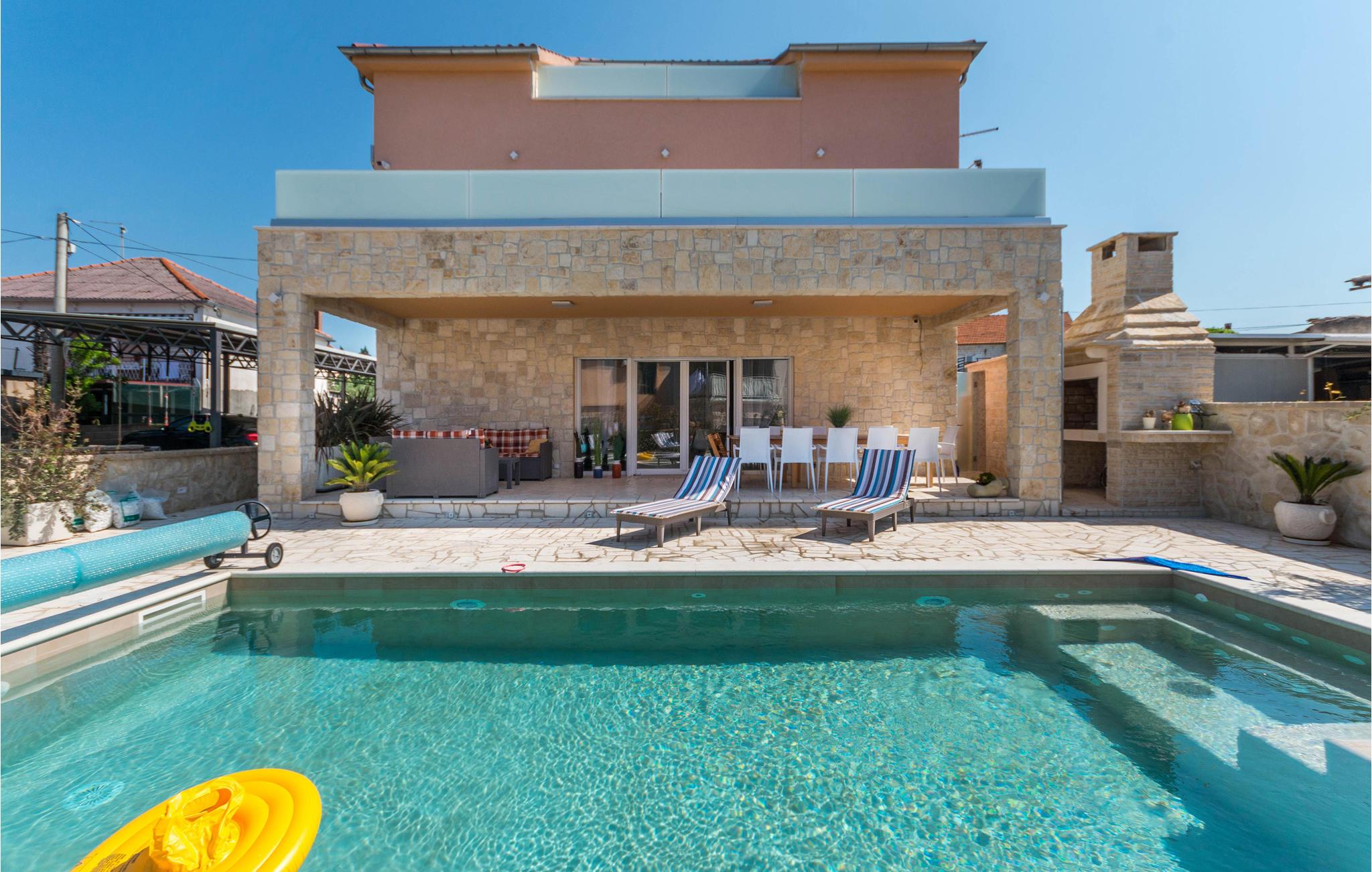 Einen Katzensprung vom Meer entfernt empfängt Sie dieses geräumige Ferienhaus mit Swimmingpool und Meerblick in Turanj.