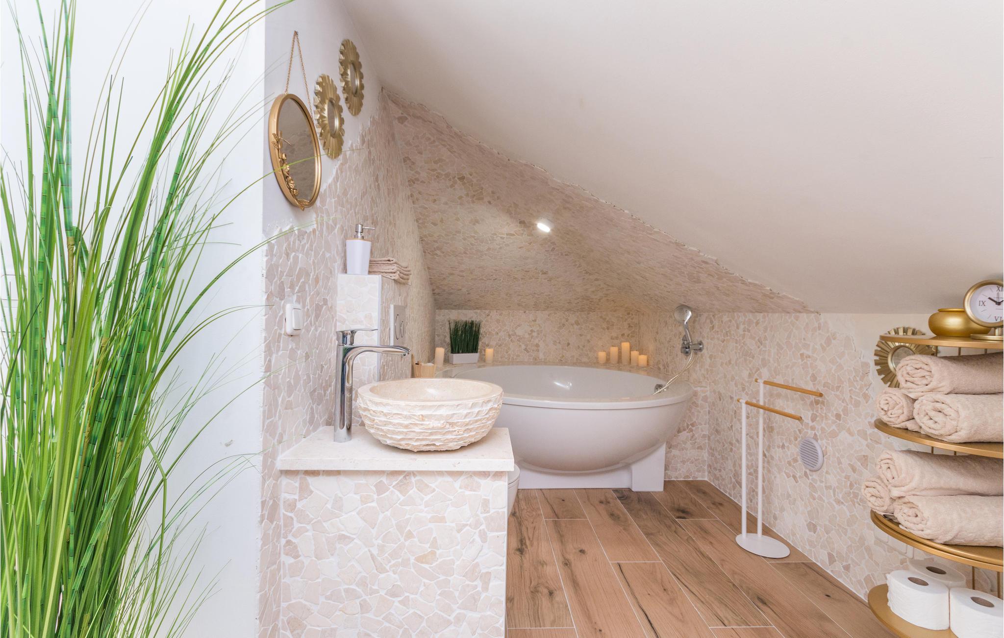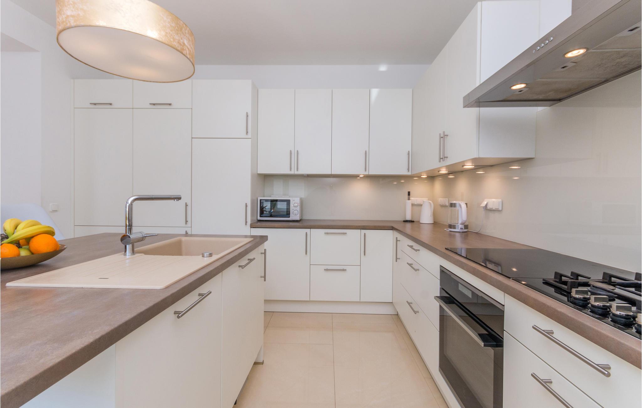 Sie suchen die ideale Unterkunft für Ihre Großfamilie? Dann sind Sie hier genau richtig. Gemeinsam mit Ihren Lieben oder auch einer befreundeten Familie können Sie es sich hier gemütlich machen und das Ambiente des einladenden Hauses genießen. In hellen Farben und mit geschmackvollem Dekor lädt das Haus Sie ein, sich zu entspannen und die Zeit beim Kochen oder Spielen zu verbringen. Ihr Trainingsprogramm muss im Urlaub nicht unterbrochen werden, denn ein Fitnessraum steht für Sie bereit. Im Garten können Sie den fantastischen Pool und den Ausblick auf das Meer genießen. Legen Sie sich auf die Sonnenliegen und erfrischen Sie sich im Pool mit Drüsen.