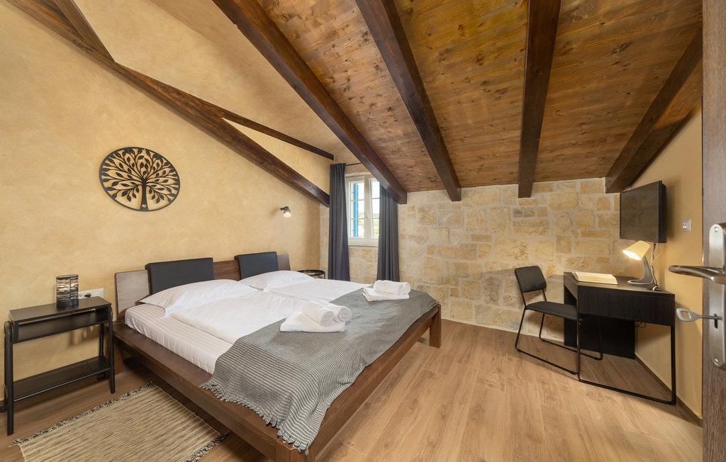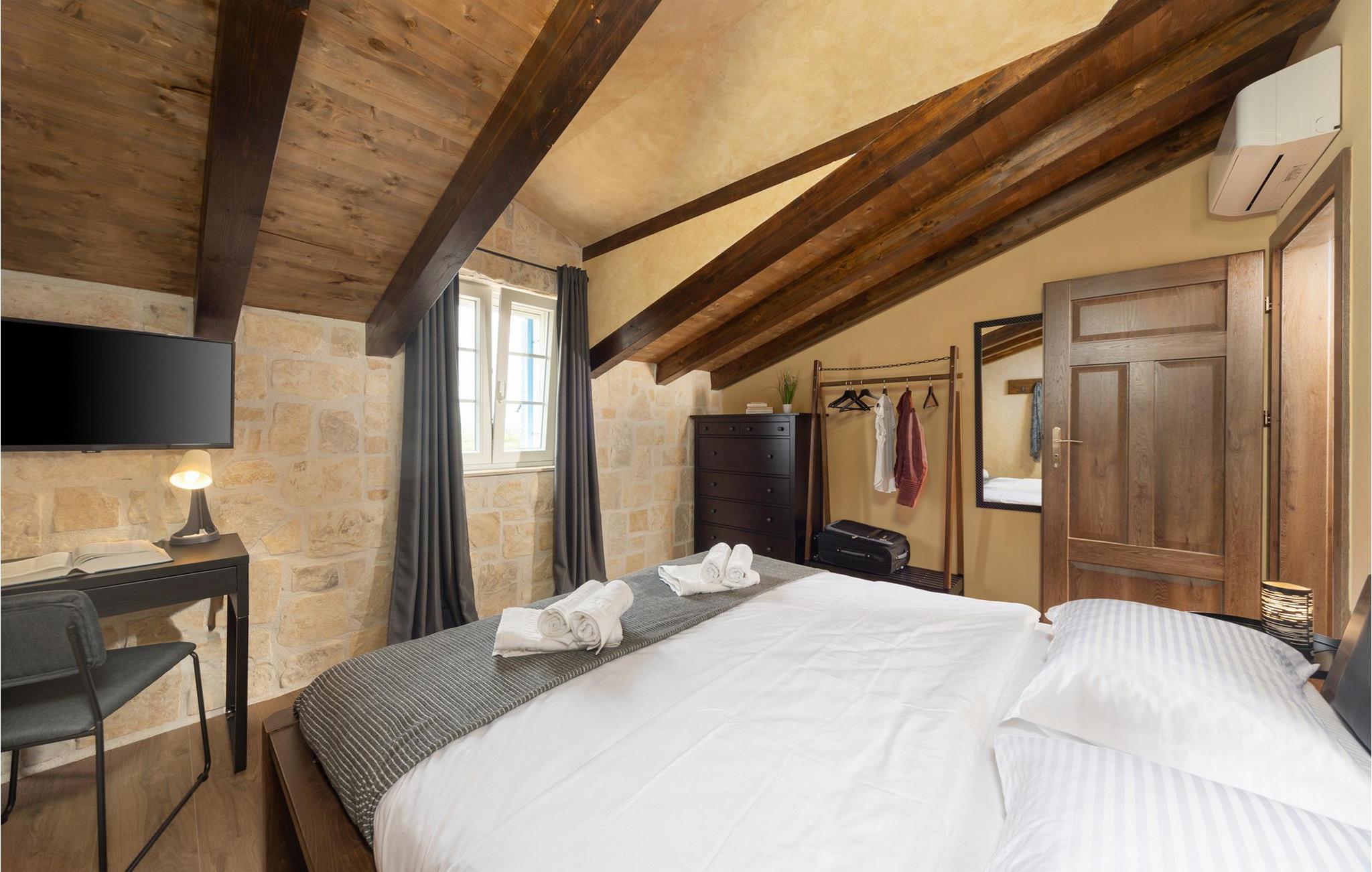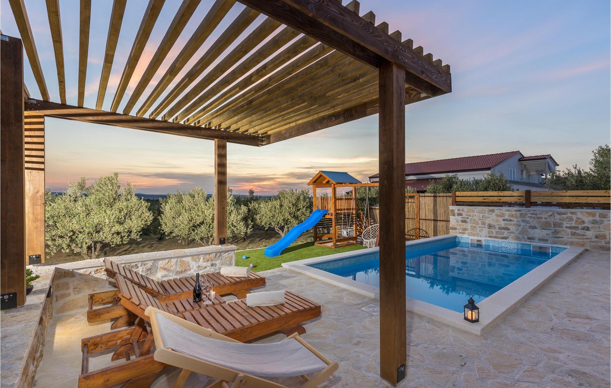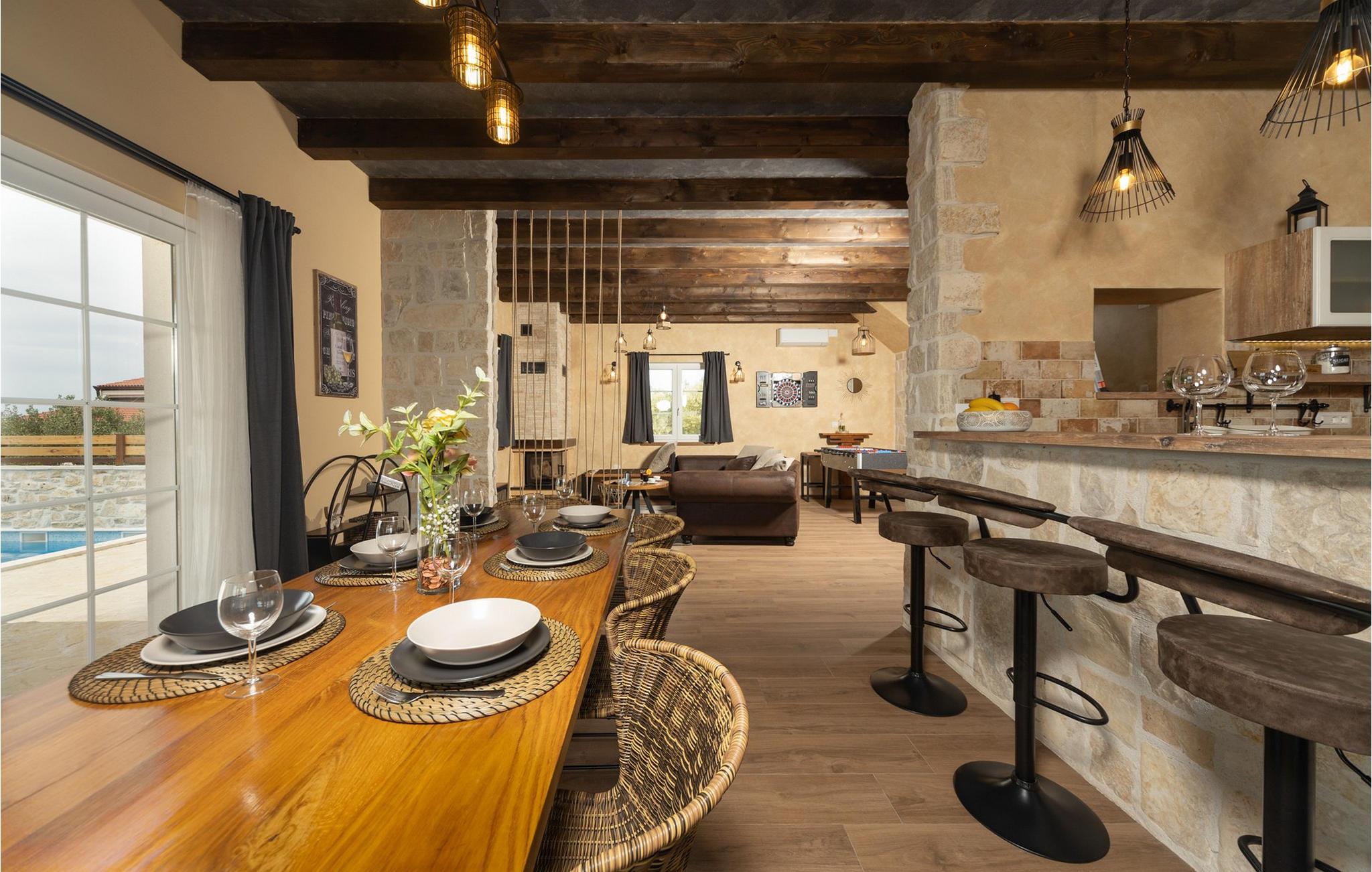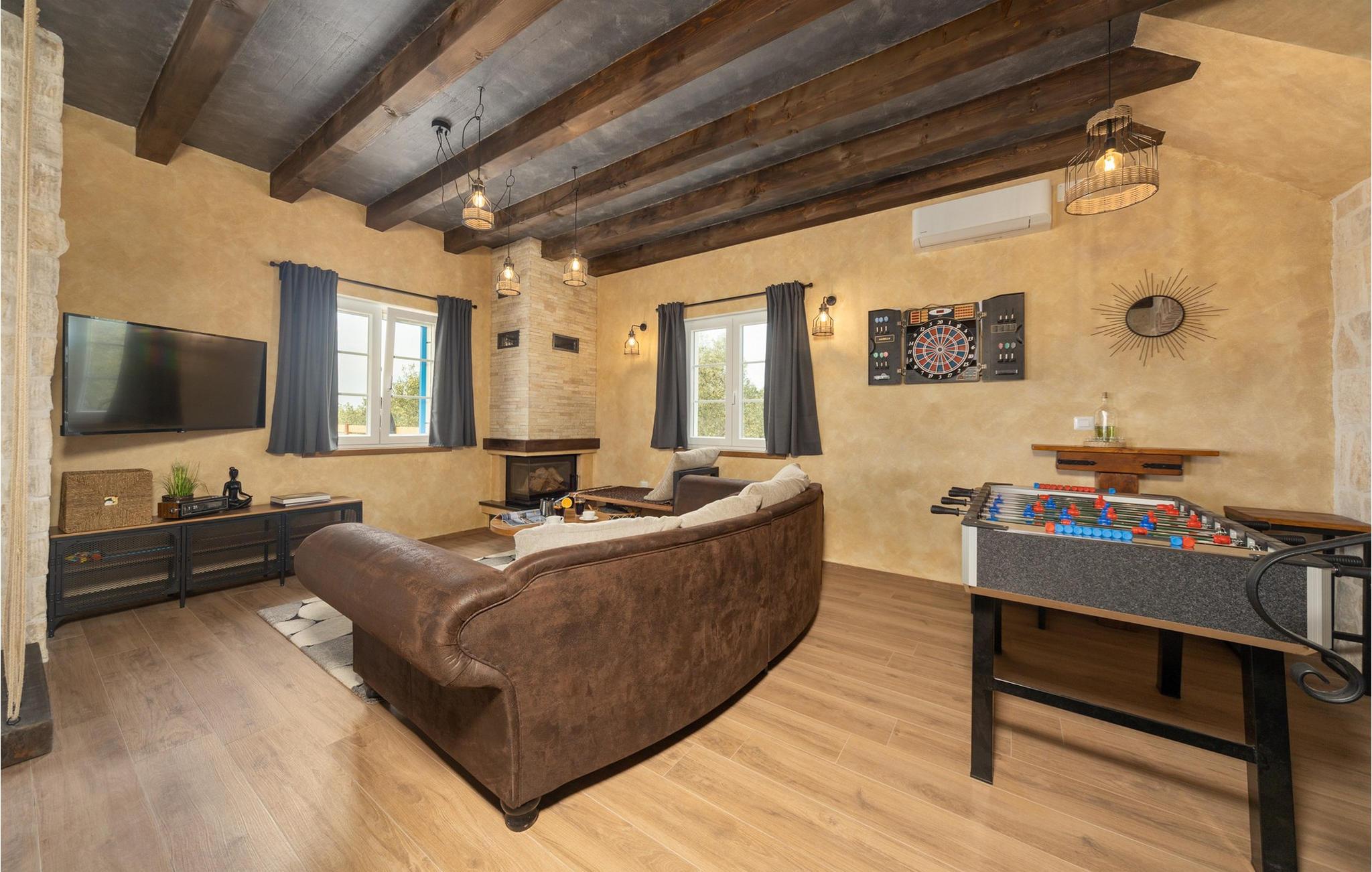 Die wunderschöne Villa Stella del Lago verdankt ihren Namen der Nähe zum bezaubernden Vrana-See mit seinem idyllischen Naturpark. Treten Sie ein und lassen Sie die harmonische, rustikale Atmosphäre auf sich wirken, in der Sie mit der ganzen Familie zur Ruhe kommen. Viel Holz und Naturstein, eine angenehme Beleuchtung und geschmackvolle Möbel schaffen ein Ambiente, in dem Sie sich vom ersten Tag an wohlfühlen werden. Planen Sie Ihre Unternehmungen am einladenden Esstisch, messen Sie sich am Kickertisch oder an der Dartscheibe und lassen Sie einen langen Tag mit einem gemütlichen Spieleabend ausklingen.