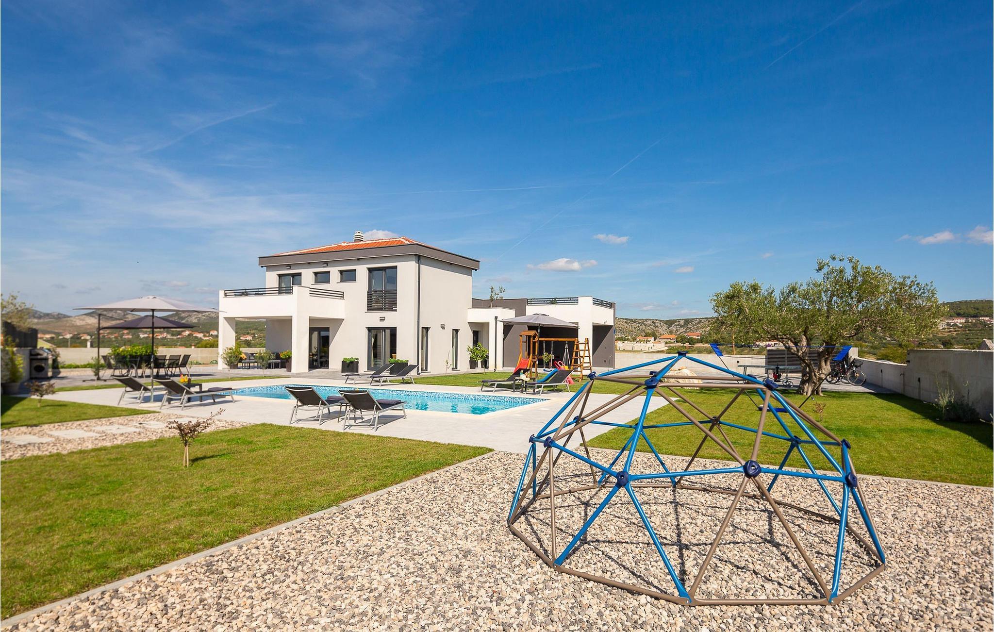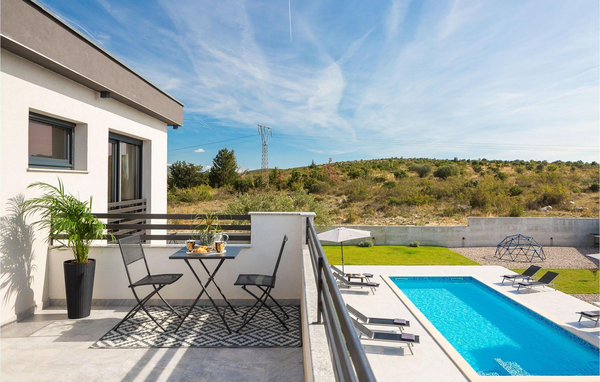 Genießen Sie eine erholsame Auszeit in diesem luxuriösen Ferienhaus mit Pool und weitem Blick in die mediterrane Landschaft.