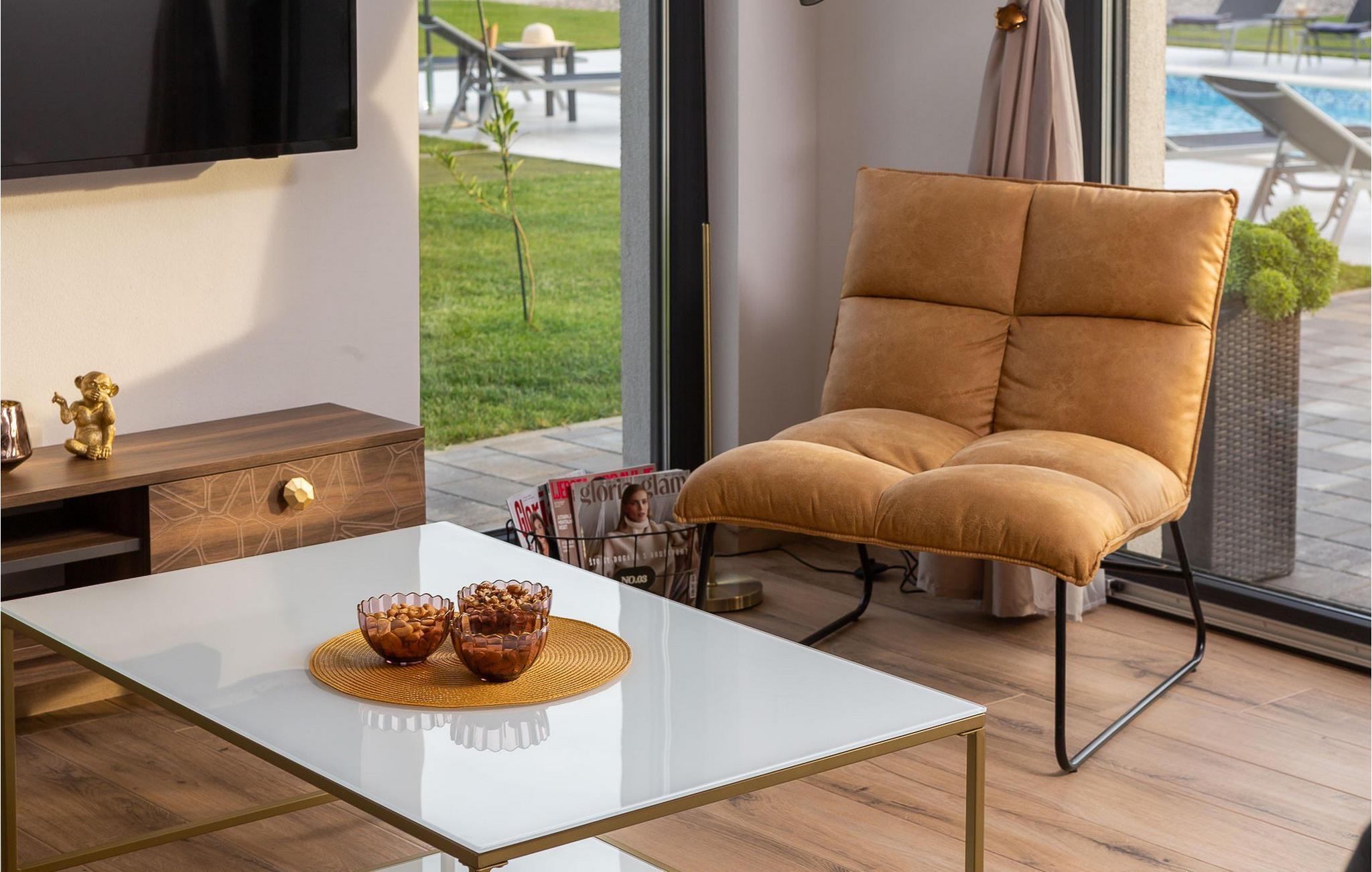 Die Villa Lacus empfängt Sie mit einem hellen und modernen Ambiente, das Stil und Gemütlichkeit harmonisch verbindet. Im großzügigen Wohnbereich mit bequemen Sofas und großen Fenstern können Sie entspannte Stunden verbringen und dabei den Blick in den Garten und zum Pool genießen. Kommen Sie hier zur Ruhe und tanken Sie neue Energie beim Musikhören, Plaudern oder einem gemeinsamem Filmabend. Die offene Küche mit eleganter Kochinsel, hochwertigen Geräten und einem Essbereich lädt dazu ein, gemeinsam zu kochen und die zubereiteten Köstlichkeiten in geselliger Runde zu genießen.