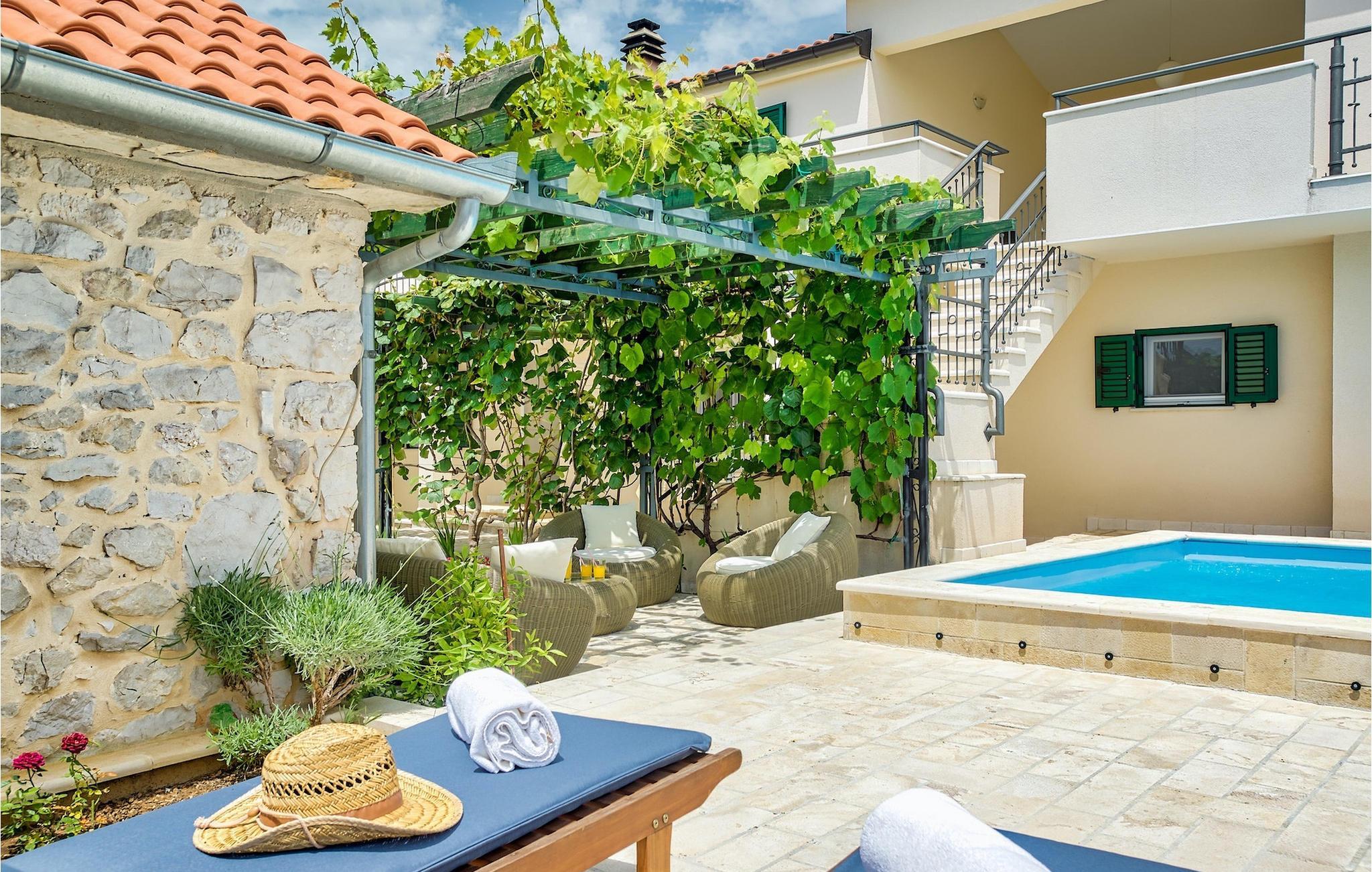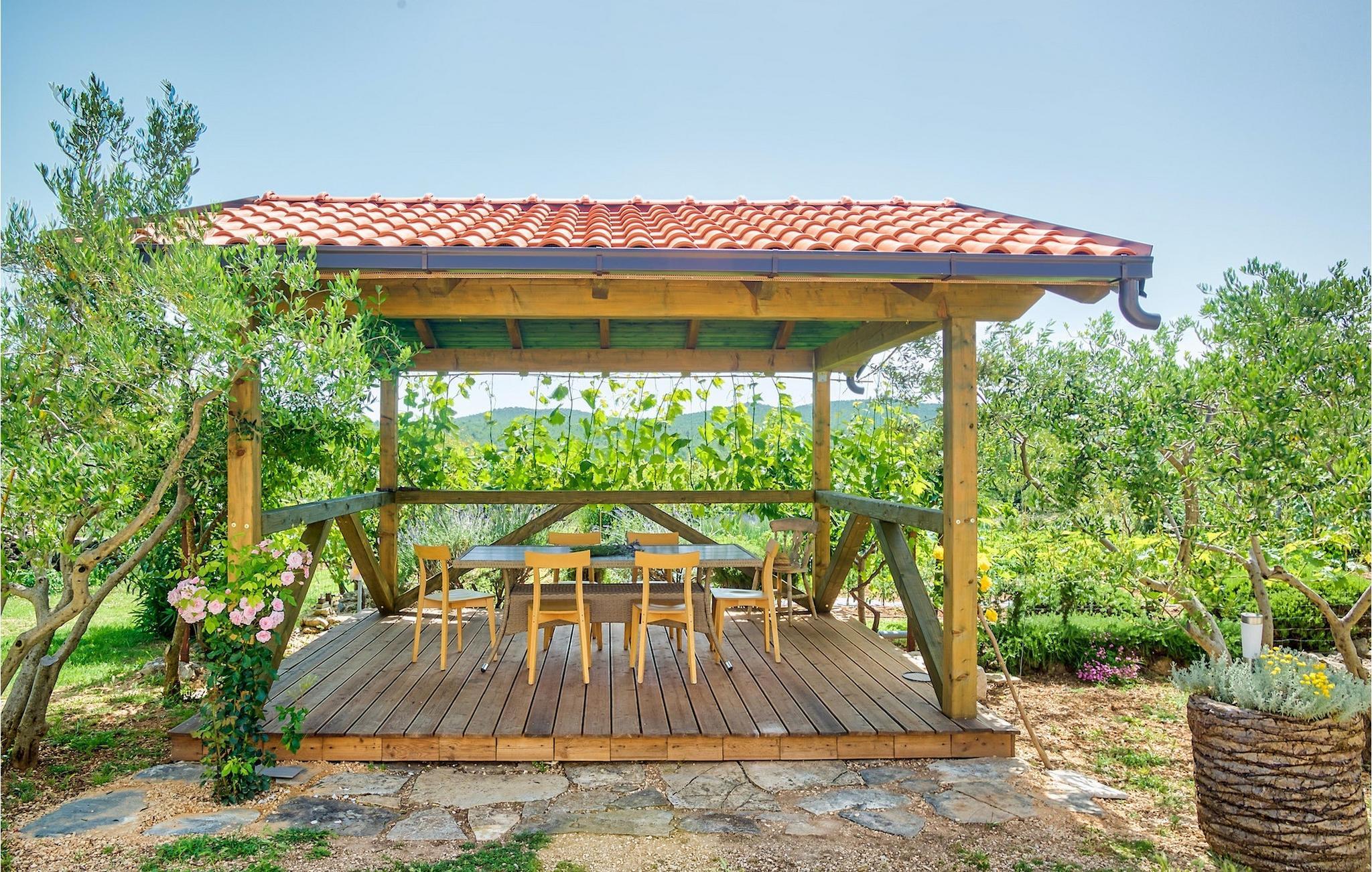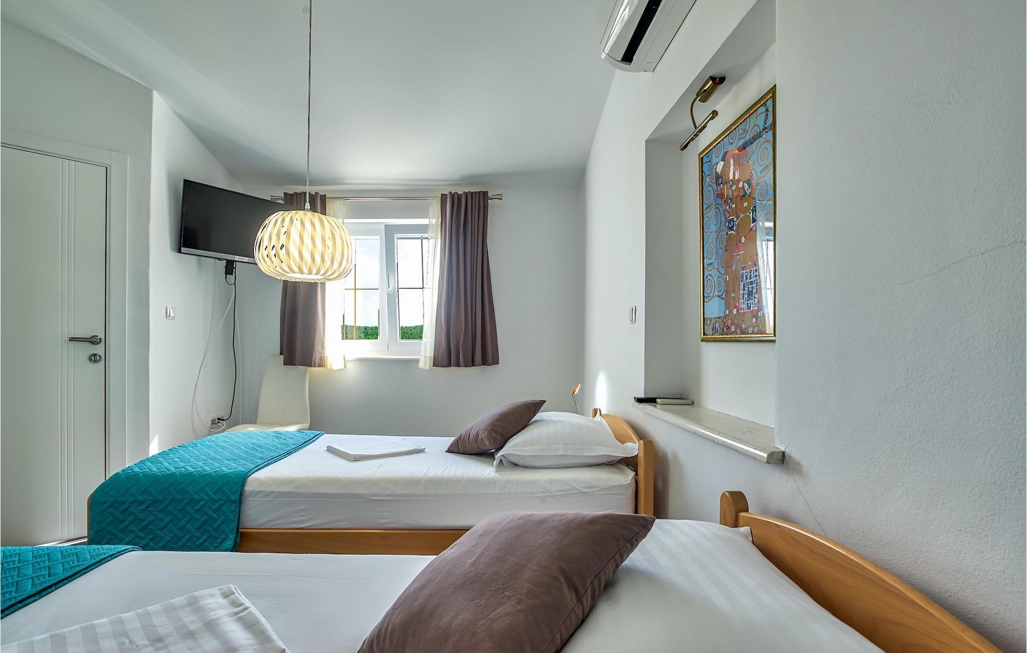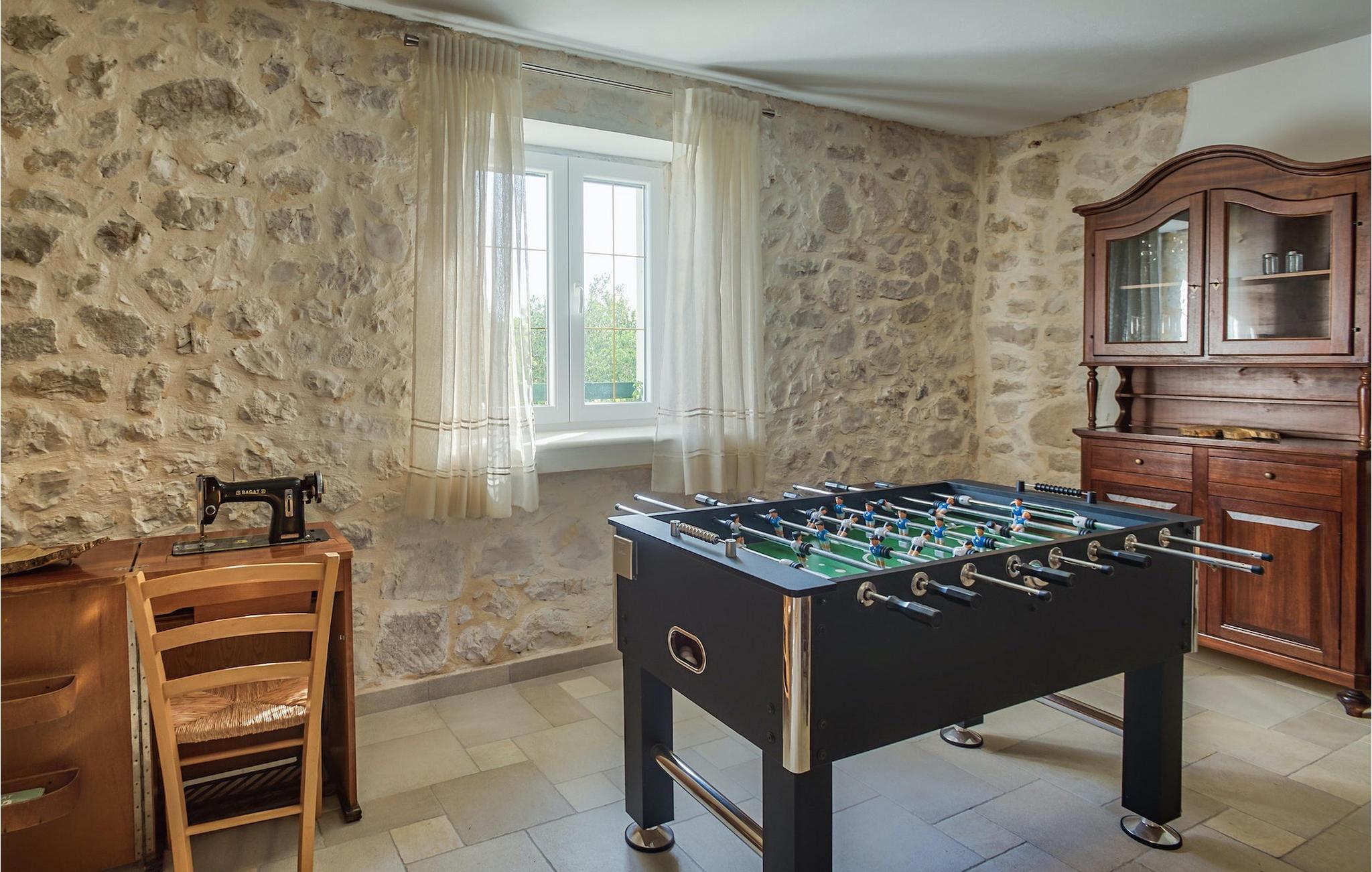 Träumen Sie von einer geräumigen Villa auf einem großen Grundstück umräumt mit Olivenhainen und den gepflegten Garten mit viel natürlichen Schatten, viel Platz zum Entspannen im Garten und um den Pool herum ebenso, wie viel Platz zum Essen im Offenen? Genießen Sie im Außenbereich, wo Sie Grillgerichte vorbereiten können während andere Erfrischung suchen im einladendem Pool oder sich auf den Liegestühlen sonnen. Die Villa Torine im Ort Zapuzane in der Umgebung von Zadar, erwartet Sie! Villa Torine streckt sich auf 2 Etagen mit 7 Schlafzimmern, alle mit privaten Badezimmern und bietet Unterkunft für bis zu 14 Gäste an. Zwei Schlafzimmer befinden sich im Erdgeschoss, wo Sie auch einen Unterhaltungsraum (mit Billardtisch), eine Küche und ein großes Wohnzimmer verbunden mit Esszimmer finden. Hier können Sie eine schöne Zeit zusammen verbringen. Die anderen 5 Schlafzimmer befinden sich auf der ersten Etage mit privaten Badezimmern und den Ausgang zur 2 großen Terrassen, die einen ruhigen Blick auf die grüne Umgebung bieten. Während Sie neben dem Pool in der Sonne einweichen, werden Sie sicherlich im grünen Außenbereich genießen. Der Garten entzückt mit vielen Blumen und mediterranen Pflanzen und Kräutern. Im breiten zweiten Teils des Gartens gegenüber dem Eingang der Villa befindet sich eine charmante Pergola, der ideale Ort um ein Glas von dalmatinischen Plavac zu durchkosten. Entspannen Sie sich auf Ihren Urlaub in Dalmatien in dieser alt restaurierten, authentischen Villa nur 14 km vom Meer entfernt.Diese entzückende Villa befindet sich im kleinen Dorf Zapuzane nahe Benkovac und in der Nähe von größeren touristischen Städten wie Zadar ( etwa 40 km entfernt). Dies ist ein guter Ausgangspunkt falls Sie gerne die schöne Natur der Inseln (z. B. Pasman, Ugljan, Iz) bewundern möchten. Besuchen Sie naheliegende Inseln und genießen Sie einsame Buchten, das kristallklare Meer und den natürlichen Duft der Kiefern. Nur 14 km von der Villa entfernt befindet sich auch der Vrana See bekannt für wunderschöne Natur. Erleben Sie einen See direkt am Meer, umgeben von Bergen. Hier können Sie wandern, Rad fahren oder ein Camping Ausflug machen. Falls Sie mit dem Auto unterwegs sind, lohnt es sich auch Zadar zu besuchen und das alte Forum mit der Kirche des hl. Donatus (aus den 9. Jahrhundert) zu besuchen.