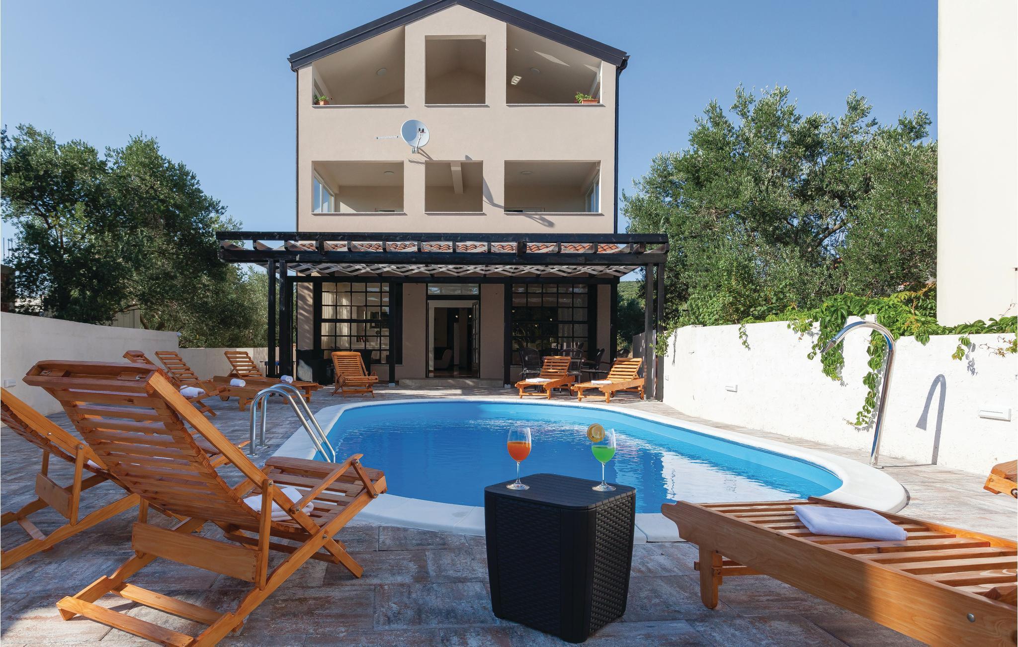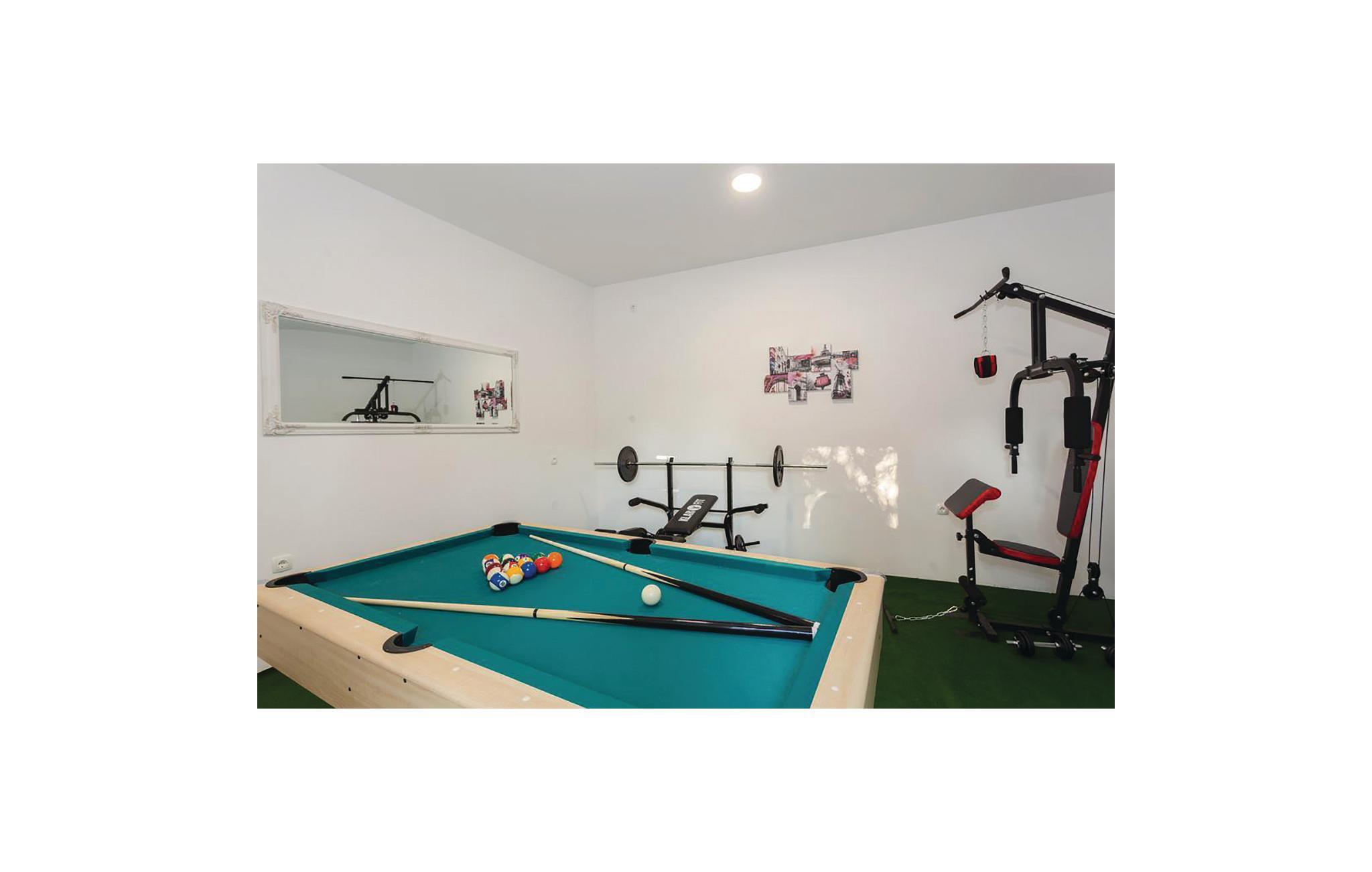 Im kleinen mediterranen Ort Sv. Petar na Moru liegt dieses geräumige Ferienhaus mit Pool. Das Haus ist geschmackvoll eingerichtet und bietet den notwendigen Komfort für einen erholsamen Urlaub. Die Unterkunft erstreckt sich auf drei Etagen, die mit einen Innentreppe verbunden sind und verfügt über sieben Schlafzimmer. Aktivurlauber können sich besonders am Fitnessraum erfreuen. Erkunden Sie die Umgebung, besuchen Sie die Städte Biograd na Moru und Zadar, die beide mit verschiedenen Sommerevents für Unterhaltung sorgen. Naturliebhaber sollten die Nationalparks Krka und Kornati besuchen und sich von den Naturschönheiten dort begeistern lassen.
