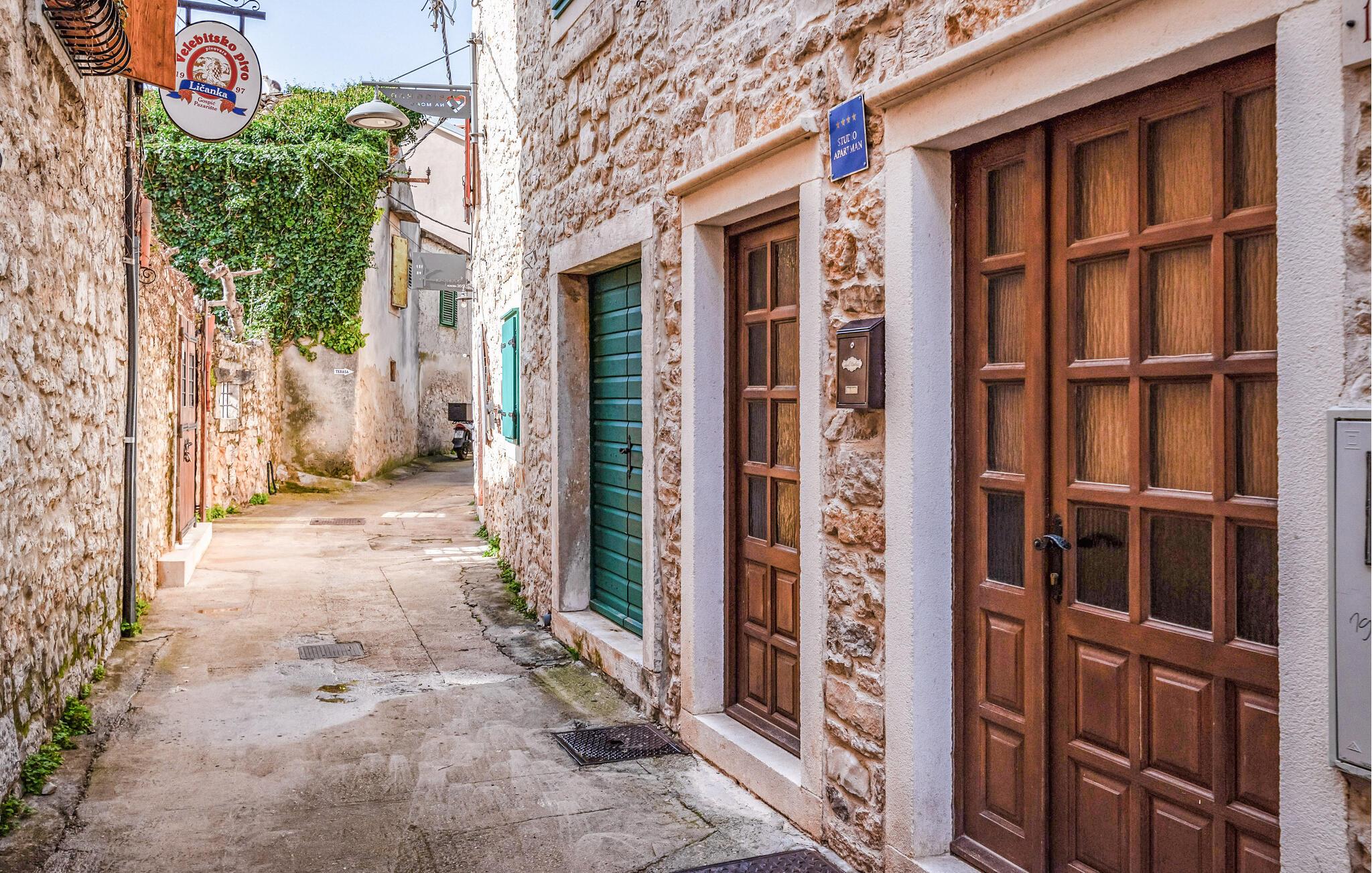 Die verträumte Gasse direkt vor Ihrer Ferienwohnung lädt zu romantischen Spaziergängen ein, die Sie durch die historische Innenstadt zu versteckten Cafés und charmanten kleinen Läden führen, deren Auslagen und Delikatessen zum Verweilen einladen. Profitieren Sie von der ausgezeichneten lokalen Gastronomie in unmittelbarer Nähe Ihrer Unterkunft. Die reizvollen Strände und der bekannte Jachthafen von Biograd sind ebenfalls schnell erreichbar. Erwandern Sie auch den Nationalpark Krka und bestaunen Sie die wilden Wasserfälle, Mühlen und alten Festungsruinen, die Ihnen hier begegnen. Auch der Vransko jezero, der größte See Kroatiens, ist ein beliebtes Reiseziel für Naturfreunde.