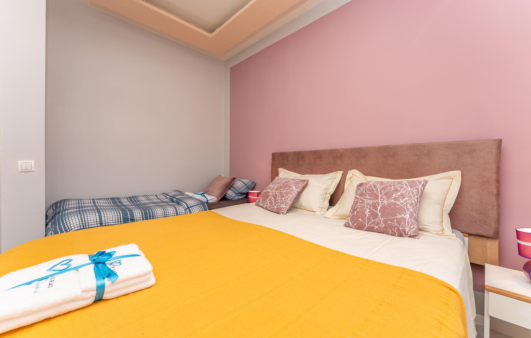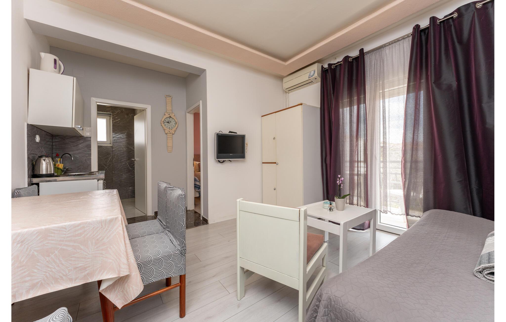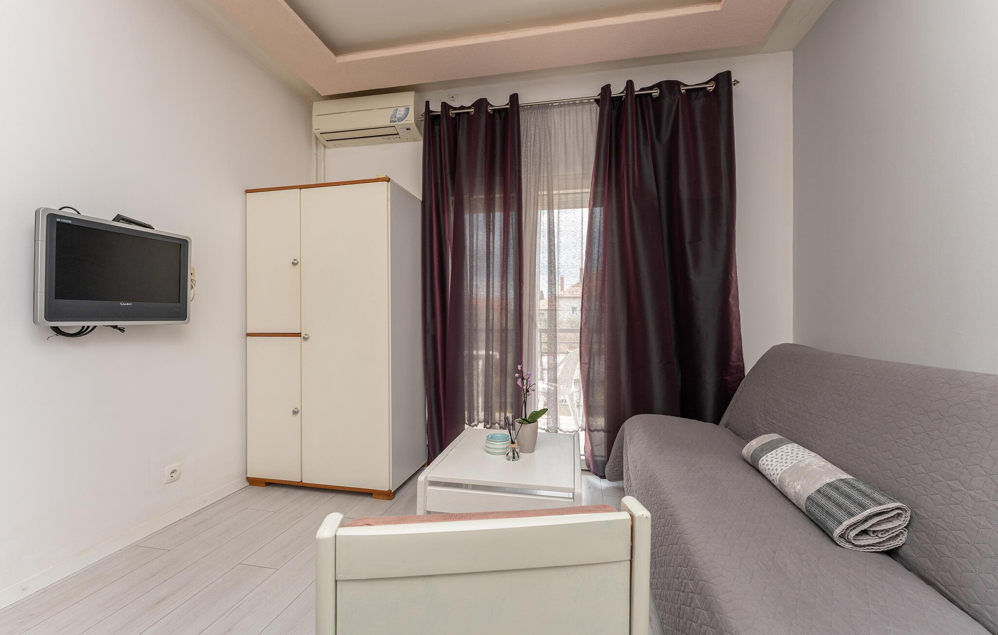Ihre Ferienwohnung im Zentrum von Biograd na Moru ist wie geschaffen für eine entspannte Auszeit. Starten Sie entspannt in den Tag mit einer Tasse Kaffee auf dem Balkon und lassen Sie den Blick über die Dächer der Stadt schweifen. Der gemütliche Essbereich und das Sofa im Wohnzimmer bieten den idealen Ort für gemeinsame Mahlzeiten und gesellige Stunden.