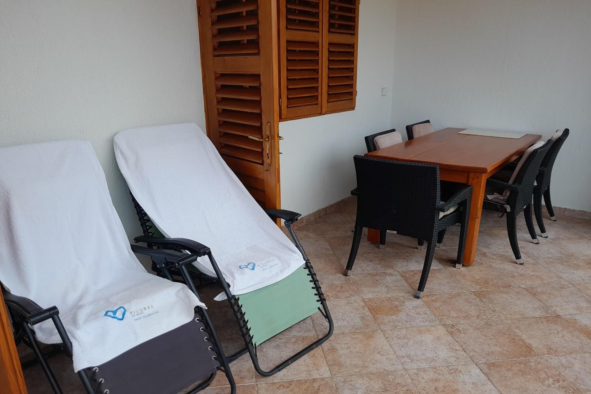 In a quiet area and just 80 meters from the beach. Each apartment has a separate entrance and a beautiful, large balcony. You can easily reach the center of Biograd on foot, as it is only 800 meters away. There are a total of four beaches near Biograd, where the beach of Drazica is especially popular with families with children. There are gastronomic offers and a large water slide. Between Biograd and Sveti Filip I Jakov you will find more swimming options and a nudist beach. During the day, life is mainly on the beach and the port promenade of Biograd. In the evening, the crowds shifts to the boulevard on the edge of the old city. Discover the small restaurants, taverns and cafes with specialties from the Dalmatian cuisine, such as freshly caught fish, seafood or firm grilled meat dishes. Night owls find bars, clubs and dance terraces and often events with live music. Biograd, the "white city by the sea" has two large marinas and an almost village-like old town with winding streets that are quiet and peaceful, which form a nice balance with the lively beaches and modern marinas. Details included: bed linen, final cleaning, wifi, registration fee, tourist tax. Activities in the area: Active holiday makers can practice numerous sports on the beaches of Biograd, from diving to beach volleyball and there are also varied leisure activities for small swimmers: animation programs and the large water slide on the beach of Drazica ensure fun and variety on the beach. For nature lovers, we recommend a trip to Krka National Park with its beautiful waterfalls and Paklenica National Park, which is close to Zadar. The Kornati National Park with around 130 islands is also worth it. You can also visit the historic cities of Zadar with its historic old town and Sibenik with the famous Mihovil fort. New highlight is the amusement park opened in the summer of 2017 with attractions for young and old. Mobility: not suitable for people with limited mobility. Parking: for each apartment 1 parking lot on the fenced property is available (included).