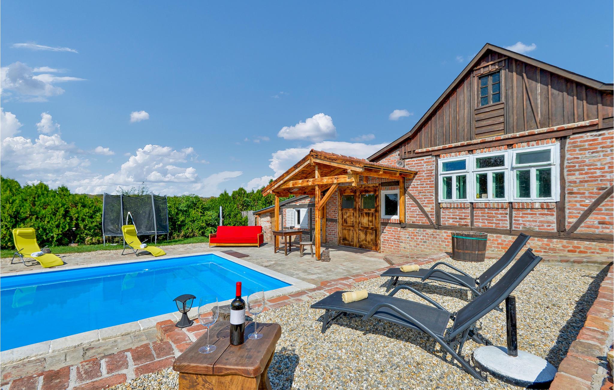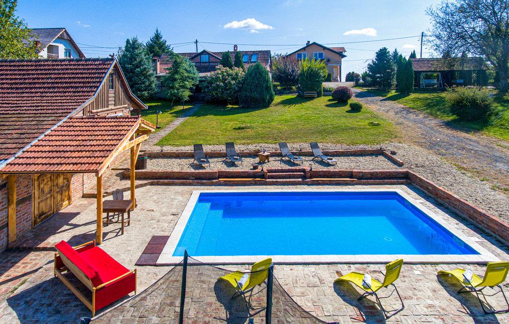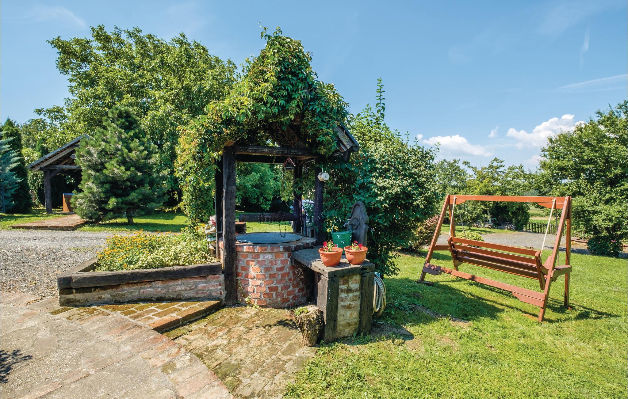 Dieses komfortable Ferienhaus liegt in der malerischen Region Podravska und ist eine wahre Oase der Entspannung. Es befindet sich in einer ländlichen Umgebung und ist mit Spa-Einrichtungen und vielen Unterhaltungsangeboten für Erwachsene und Kinder ausgestattet. Die Innenräume sind mit Naturmaterialien ausgebaut und die geräumige, überdachte Veranda hat einen großen Grill. Eine zusätzliche Ecke zum Entspannen und der große, eingezäunte Innenhof sind definitiv zusätzlichen Vorteile dieses schönen Ferienhauses. In der Umgebung können Sie hausgemachte Speisen, Honig und Wein probieren. Sie können aber auch aktiv werden und die Berge von Kalnik besteigen.