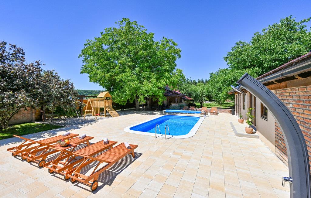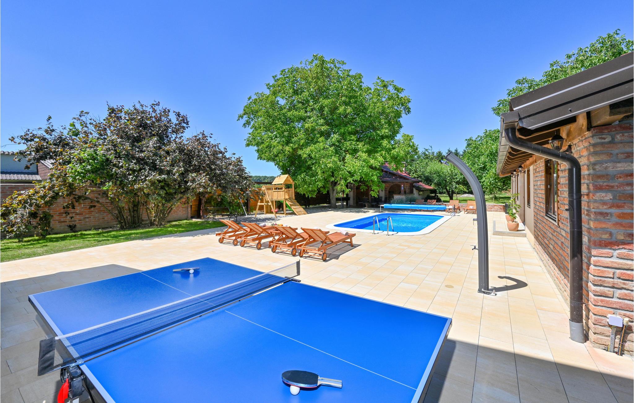 Kommen Sie mit Ihrer Familie in diese herrliche Ferienunterkunft im Landesinneren von Kroatien. Hier können Sie herrliche Stunden an der frischen Luft und in der Natur verbringen. Vor allem aber wird Sie das Haus beeindrucken, dass Sie für eine Weile bewohnen werden. Hier finden Sie alles, was Sie für eine angenehme Zeit benötigen. Viel Platz, eine vollständige Ausstattung und viele ansprechende Extras. Sie finden nicht nur viel Spielzeug für Kinder, sondern auch ein Klavier, eine Tischtennisplatte, einen Kicker sowie ein Volleyballfeld. Für Erfrischung an heißen Tagen sorgt der Pool. Hier können Sie wunderbar mit den Kleinen herumplanschen oder schon am Morgen ein paar erfrischende Runden drehen. Am Abend lockt die Konoba-artige Terrasse zu geselligen Grillabenden.