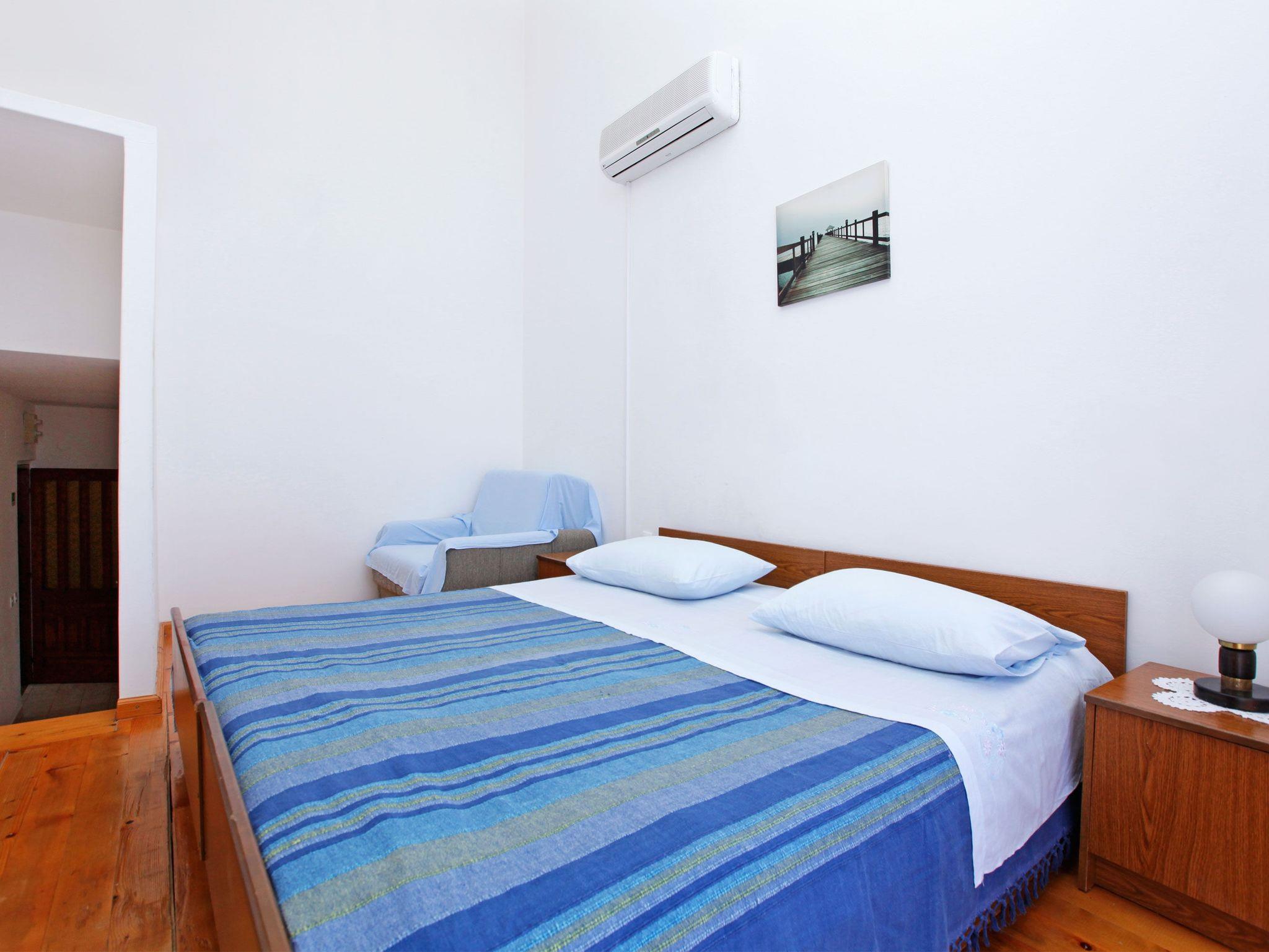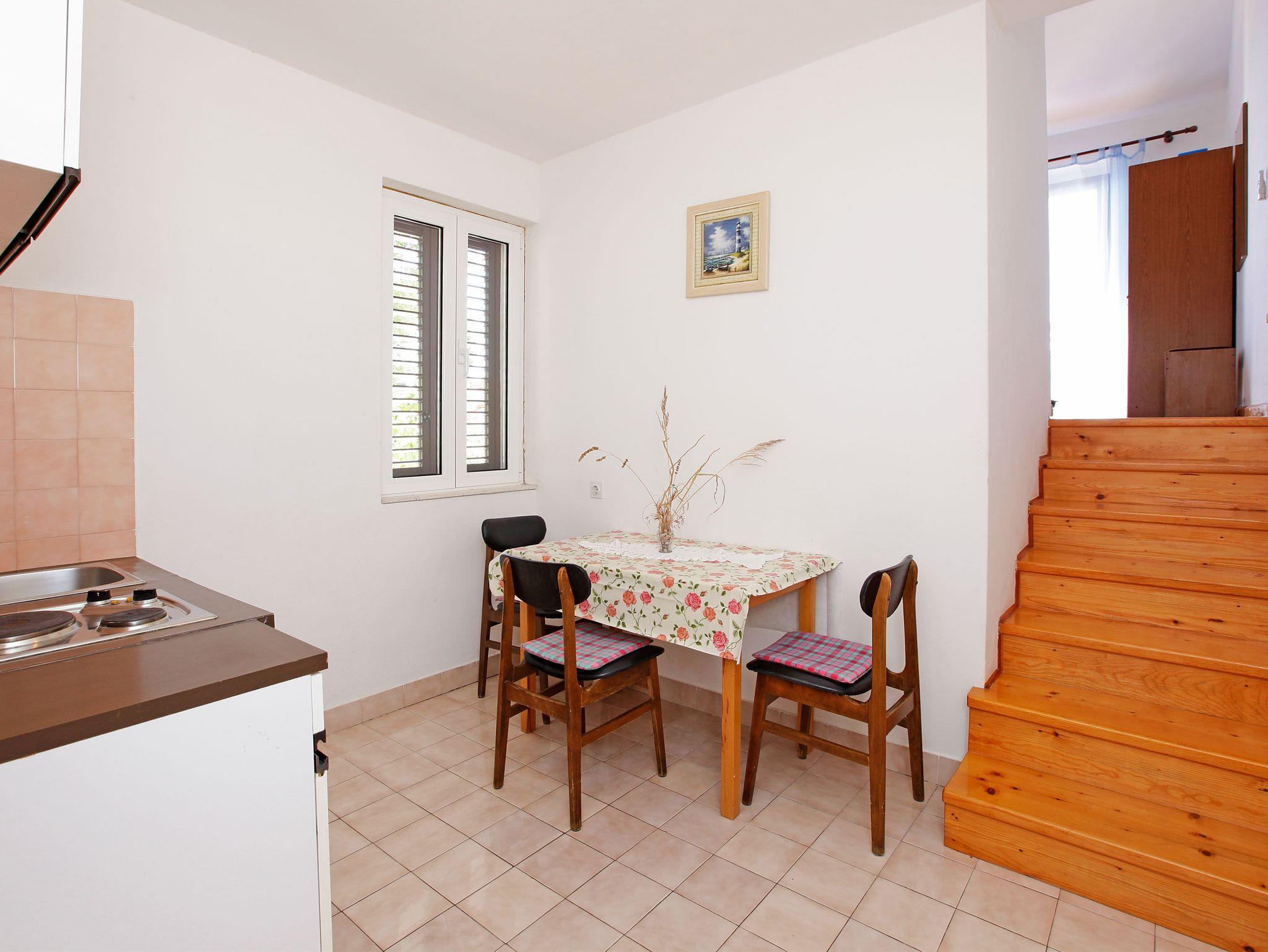Studio bietet Platz für 3 Gäste. Die Betten sind in Schlafzimmern, die es 1 gibt, innerhalb einer Gesamtfläche von 27m2, angeordnet. Die Gäste haben eine eigene Terrasse zur Verfügung, auf der sie in warmen Sommernächten genießen können. Das Studio-Apartment bietet Meerblick. In der Unterkunftseinheit besteht die Möglichkeit des Mitbringens von Haustieren gegen Aufpreis. IM PREIS INBEGRIFFEN: Kurtaxe, Endreinigung, Parkplatz, Internet, Bootsanlegeplatz. VERBINDLICHE ZUSÄTZLICHE KOSTEN: Aufzahlung für Kurzaufenthalte (prozentualer Zuschlag pro Nächtigungsanzahl: 30% - 1, 20% - 2, 10% - 3). UNVERBINDLICHE ZUSÄTZLICHE KOSTEN: Klimatisierung (5,00 € pro Nacht), Haustiere (5,00 € pro Nacht). Die Verfügbarkeit zusätzlicher Dienstleistungen in Ihrem reservierten Termin und die Preise derselben (falls nicht aufgeführt) müssen im Voraus überprüft werden. Zusätzliche Dienstleistungen die in der Zahlungsaufforderung nicht aufgeführt sind werden direkt beim Vermieter bezahlt, angenommen der Gast nutzt auch diese. Ermäßigung auf den Grundpreis: Gratistag 14=13 (bei einem Aufenthalt von 14 Tagen oder mehr erhalten Sie einen Gratistag für den Aufenthalt bis 31.12.26).