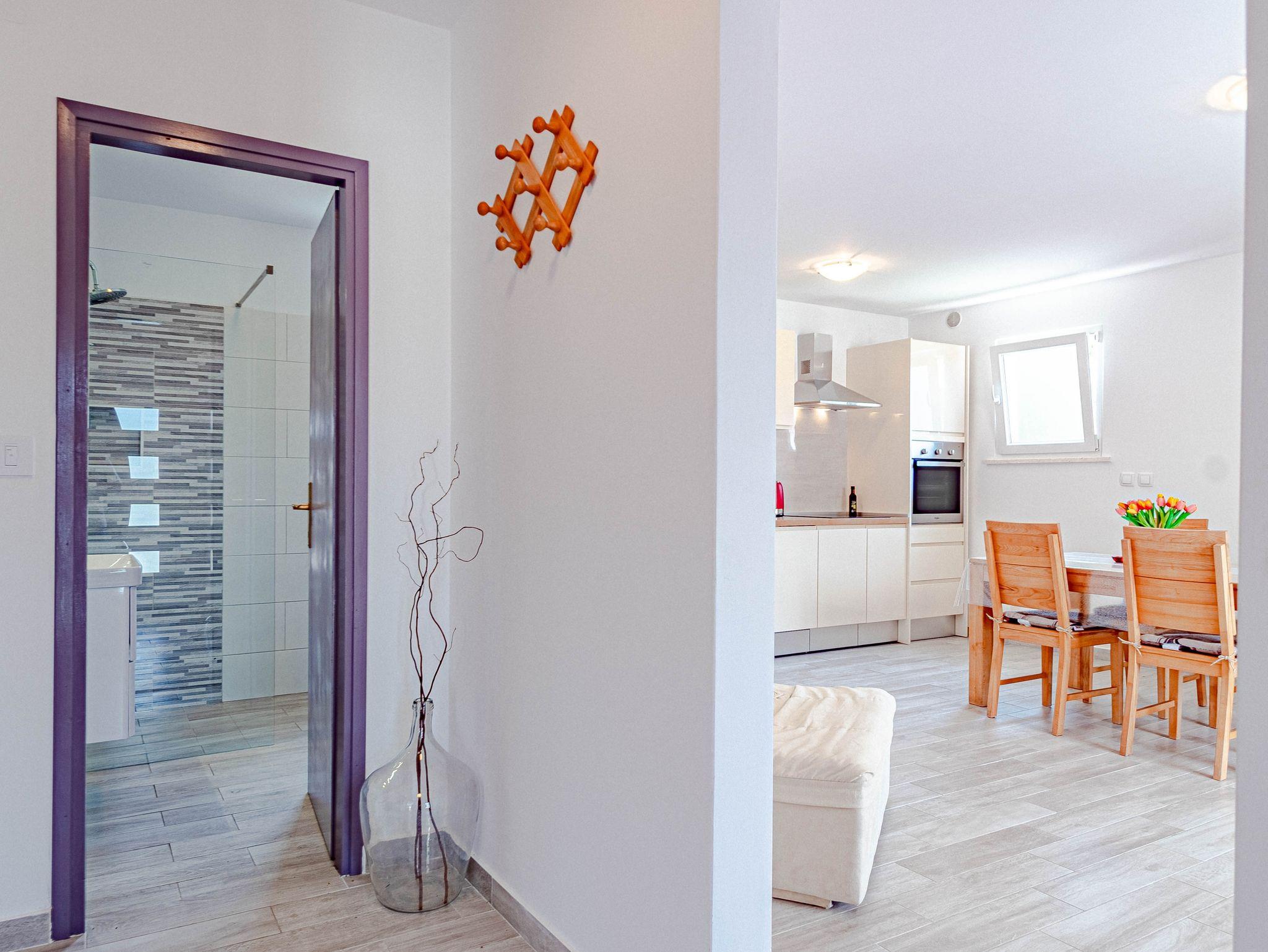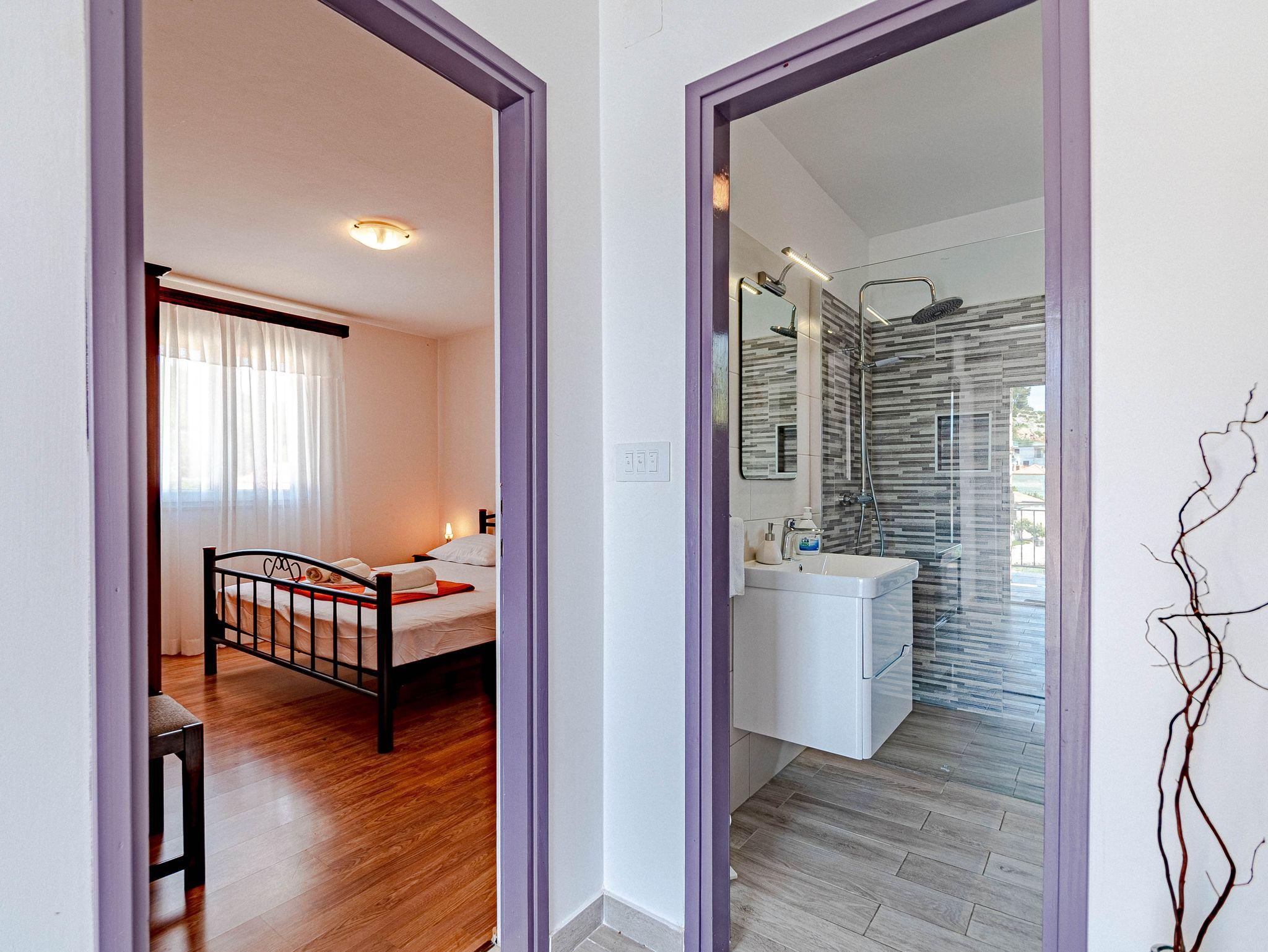 Ferienwohnung bietet Platz für 4 Gäste. Die Betten sind in Schlafzimmern, die es 2 gibt, innerhalb einer Gesamtfläche von 65m2, angeordnet. Die Gäste haben eine eigene Terrasse zur Verfügung, auf der sie in warmen Sommernächten genießen können. Das Apartment bietet Meerblick. In der Unterkunftseinheit besteht die Möglichkeit des Mitbringens von Haustieren gegen Aufpreis. Unterkunftseinheit hat Räume, die von dem Rest der Einheit abgetrennt werden. IM PREIS INBEGRIFFEN: Kurtaxe, Endreinigung, Klimatisierung, Parkplatz, Internet, Föhn. VERBINDLICHE ZUSÄTZLICHE KOSTEN: Aufzahlung für Kurzaufenthalte (prozentualer Zuschlag pro Nächtigungsanzahl: 30% - 1, 20% - 2, 10% - 3). UNVERBINDLICHE ZUSÄTZLICHE KOSTEN: Haustiere (10,00 € pro Nacht). Die Verfügbarkeit zusätzlicher Dienstleistungen in Ihrem reservierten Termin und die Preise derselben (falls nicht aufgeführt) müssen im Voraus überprüft werden. Zusätzliche Dienstleistungen die in der Zahlungsaufforderung nicht aufgeführt sind werden direkt beim Vermieter bezahlt, angenommen der Gast nutzt auch diese. Ermäßigung auf den Grundpreis: Gratistag 14=13 (bei einem Aufenthalt von 14 Tagen oder mehr erhalten Sie einen Gratistag für den Aufenthalt bis 31.12.26).