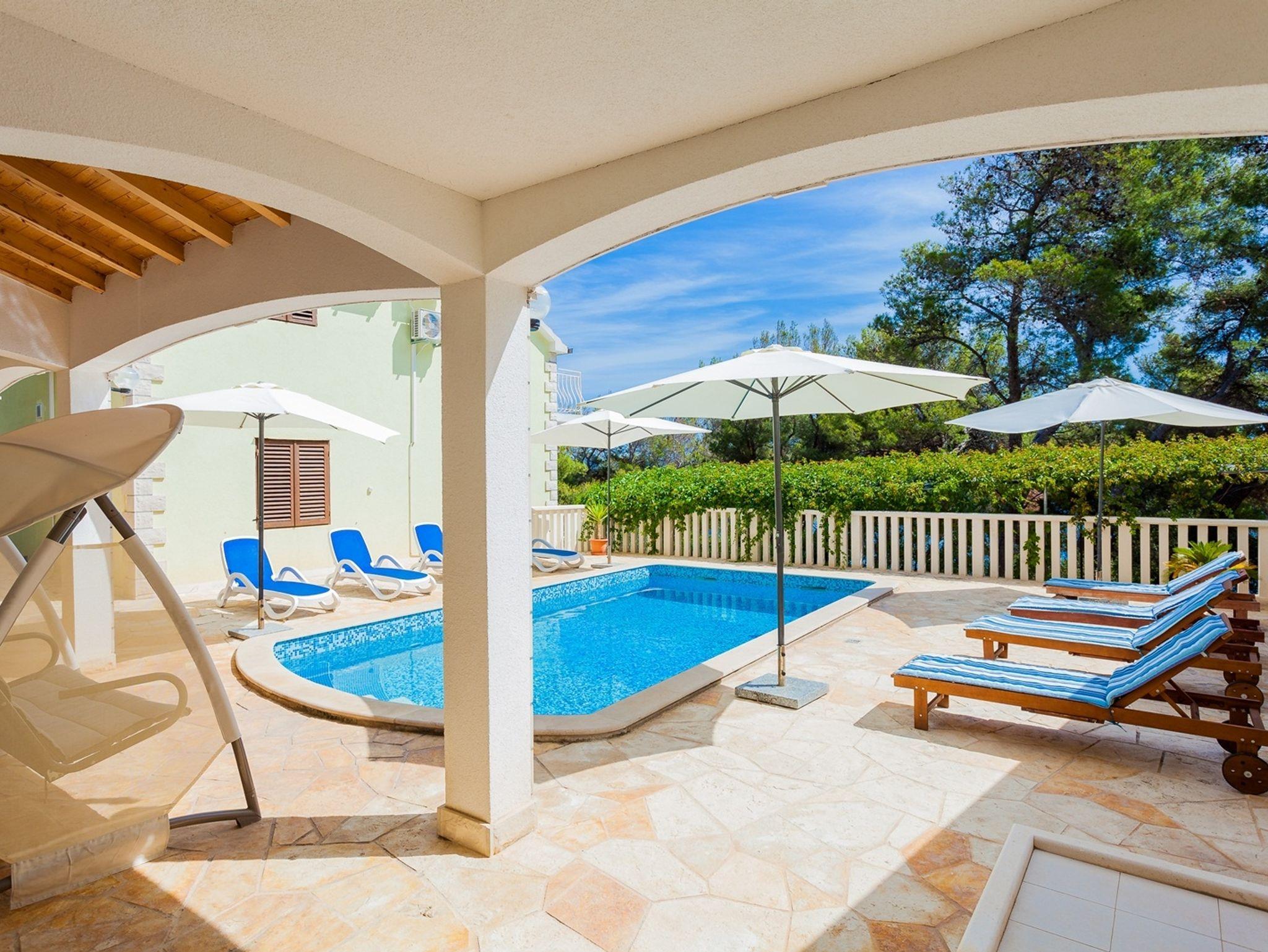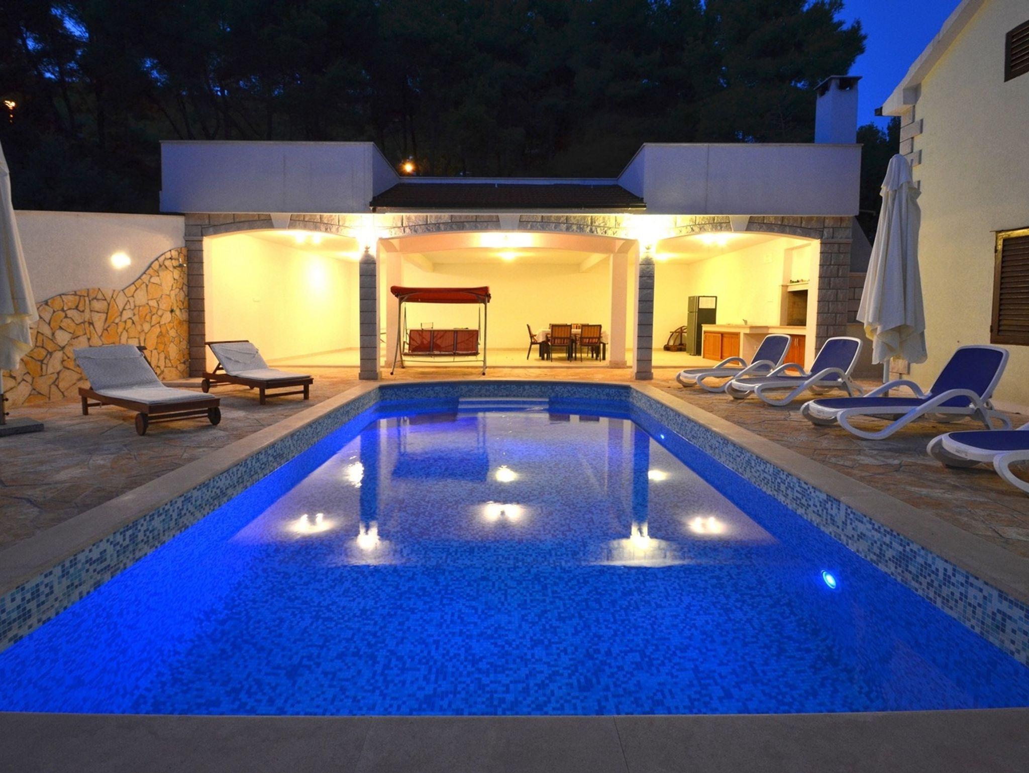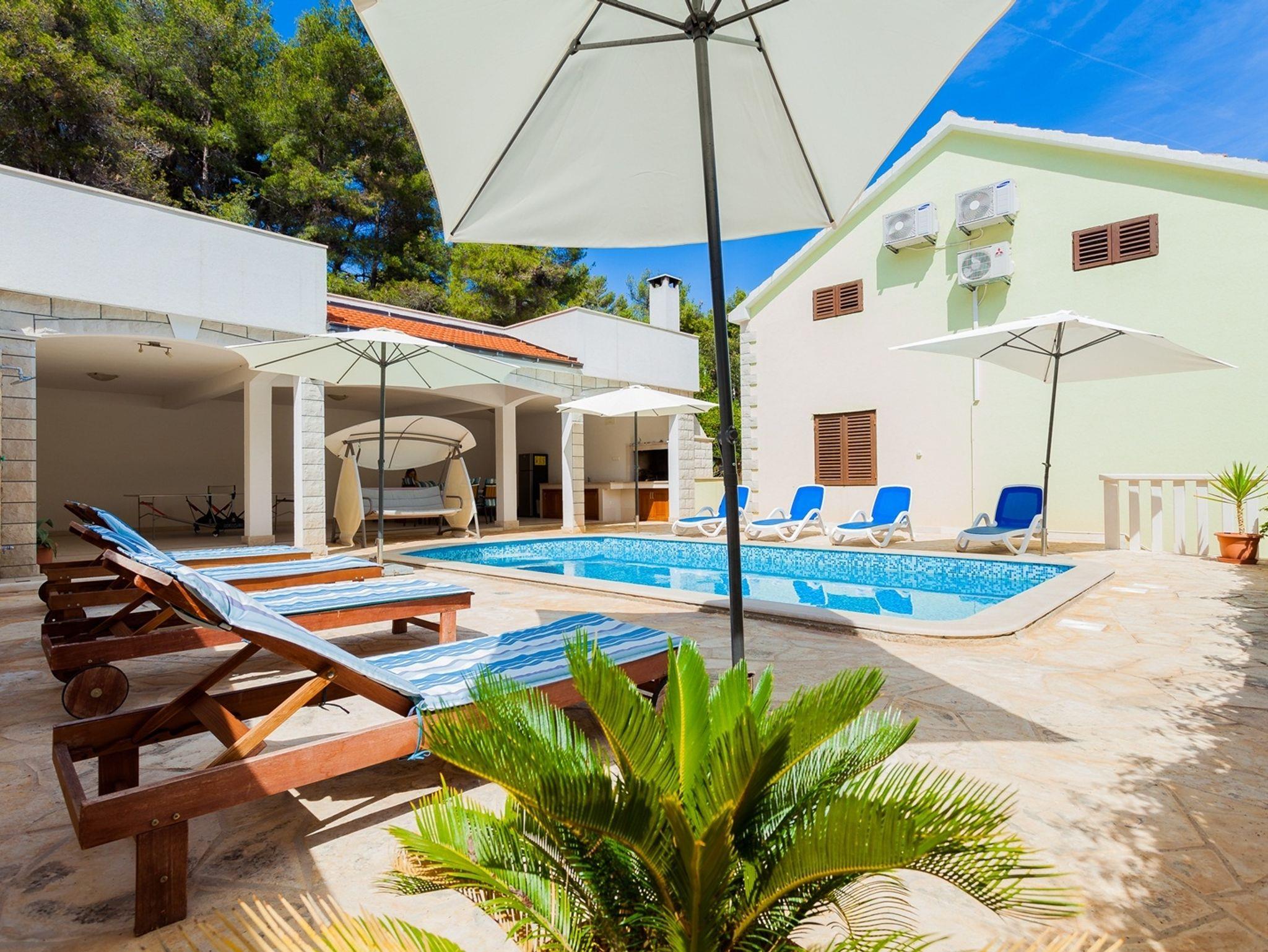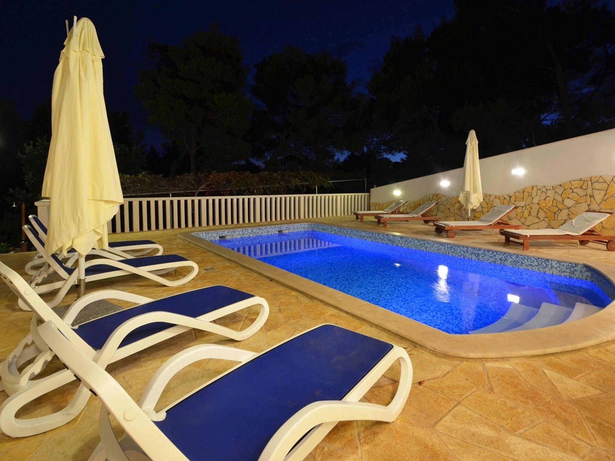 Haus bietet Platz für 11 Gäste. Die Betten sind in Schlafzimmern, die es 5 gibt, innerhalb einer Gesamtfläche von 128m2, angeordnet. Die Gäste haben eine eigene Terrasse zur Verfügung, auf der sie in warmen Sommernächten genießen können. Das Haus bietet Meerblick. Für vollen Genuss und Entspannung gibt es einen privaten Grill für Gäste dieser Unterkunft. Während ihres Aufenthalts können sich Gäste im privaten Schwimmbad entspannen. IM PREIS INBEGRIFFEN: Kurtaxe, Endreinigung, Klimatisierung, Pool, Parkplatz, Internet, Kinderbett, Bügeleisen, Bügelbrett, Föhn, Sonnenschirm, Liegestühle. Die Verfügbarkeit zusätzlicher Dienstleistungen in Ihrem reservierten Termin und die Preise derselben (falls nicht aufgeführt) müssen im Voraus überprüft werden. Zusätzliche Dienstleistungen die in der Zahlungsaufforderung nicht aufgeführt sind werden direkt beim Vermieter bezahlt, angenommen der Gast nutzt auch diese.