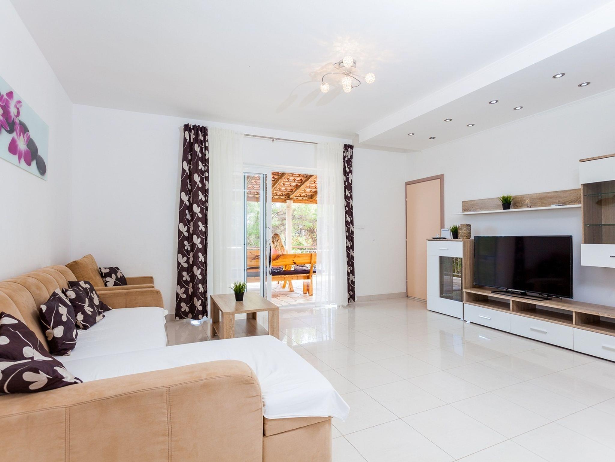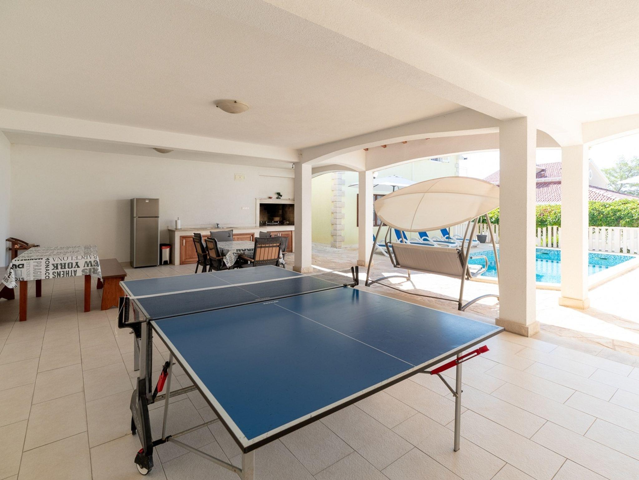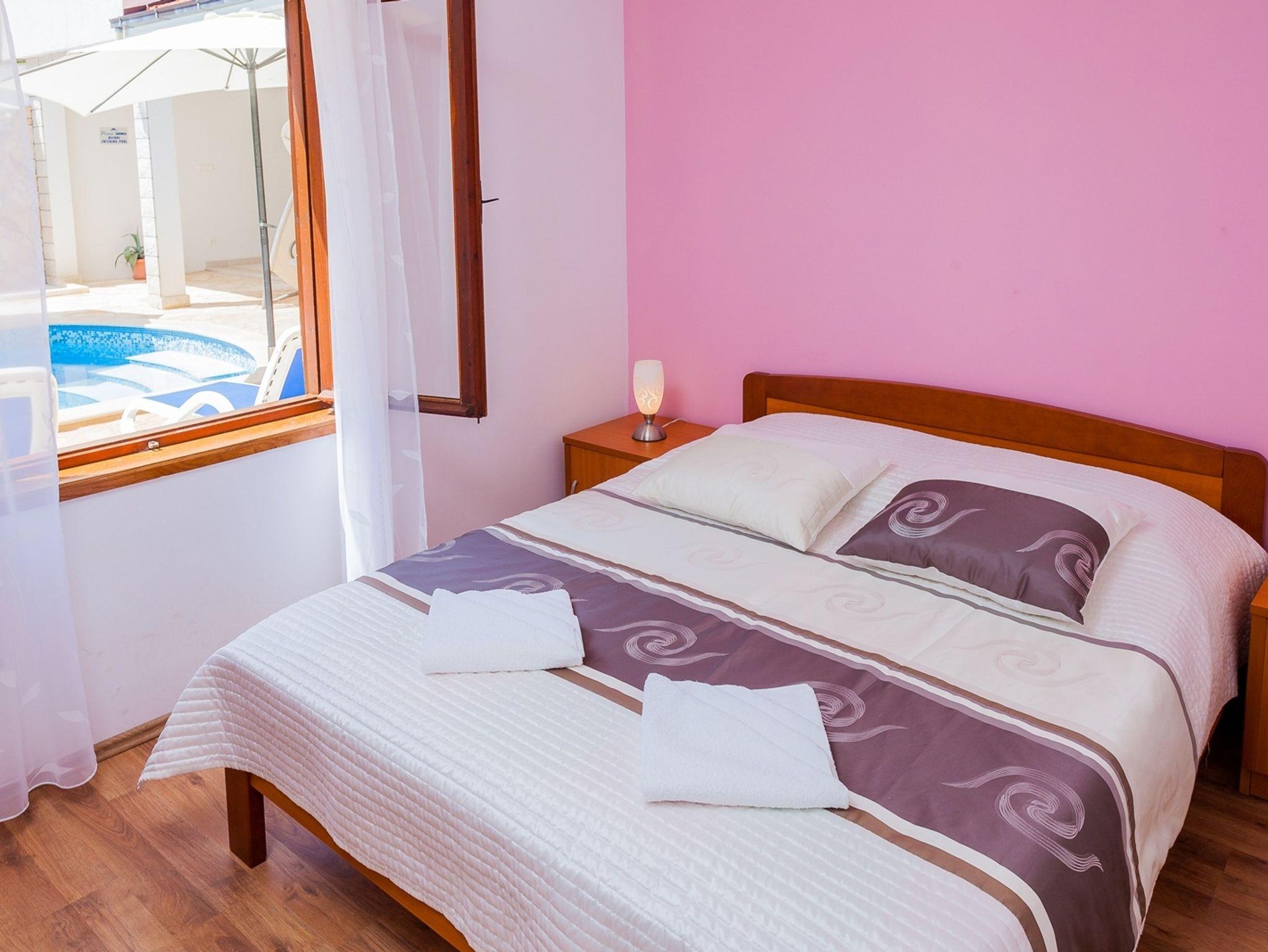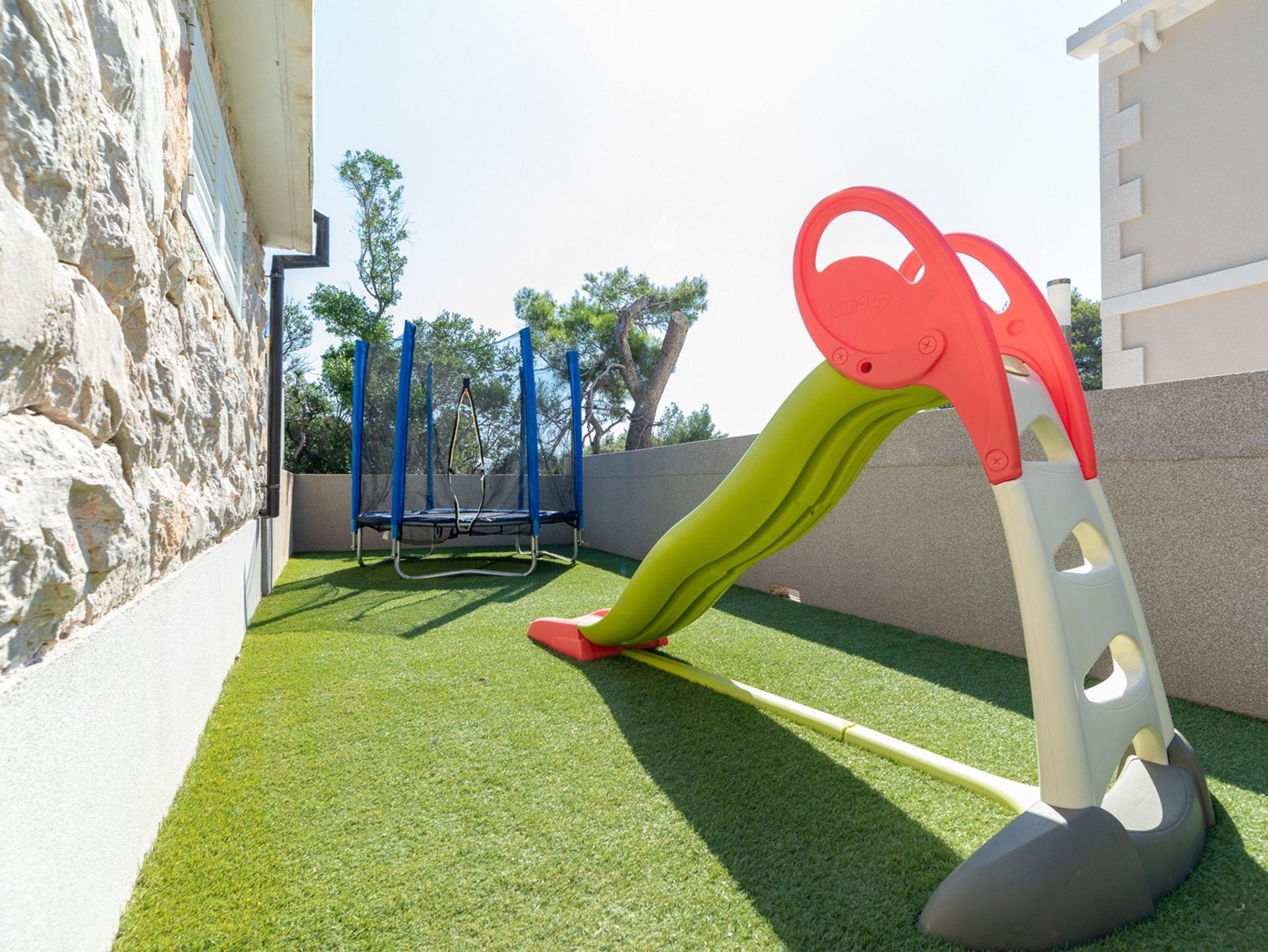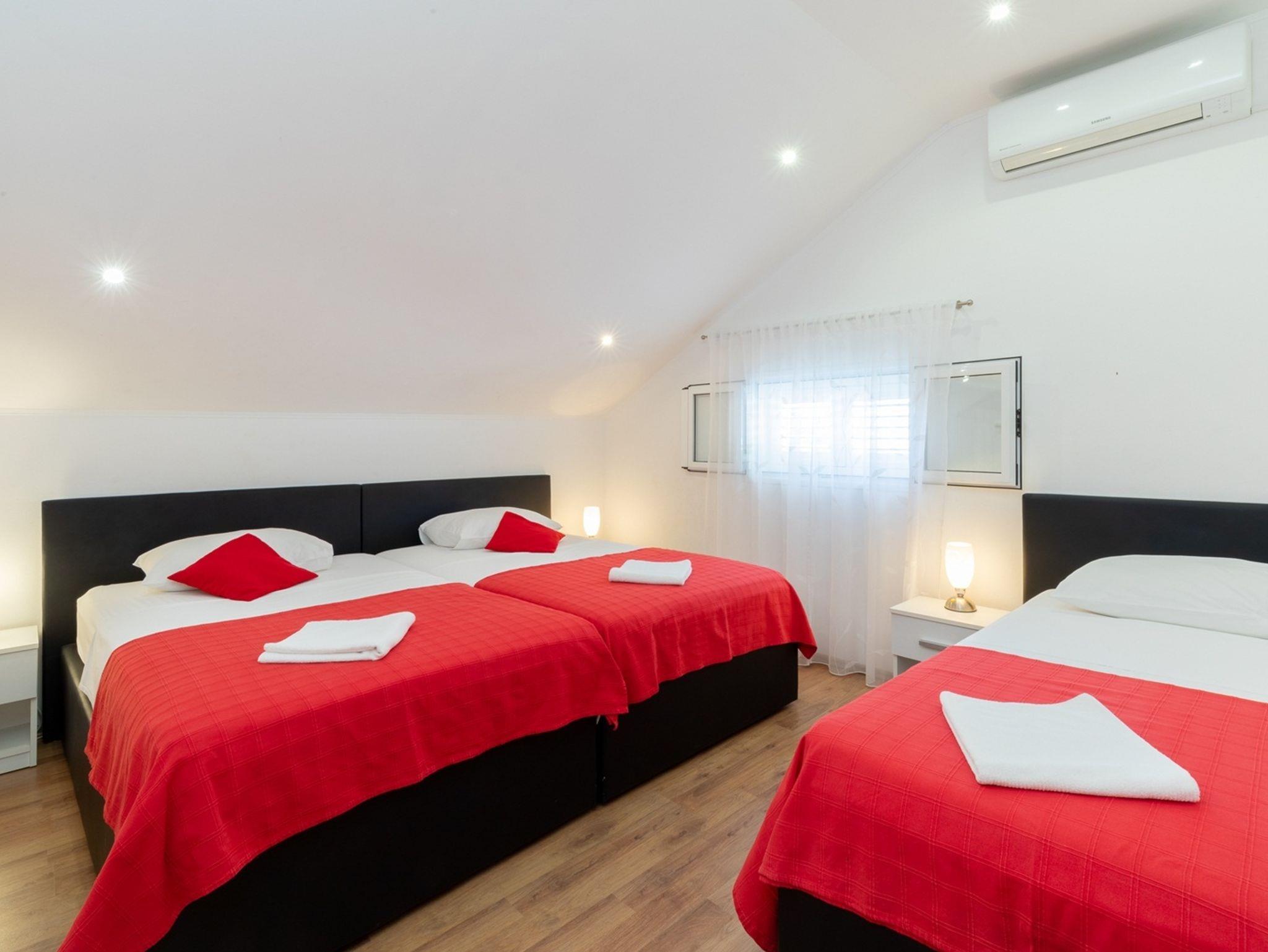 Haus bietet Platz für 11 Gäste. Die Betten sind in Schlafzimmern, die es 5 gibt, innerhalb einer Gesamtfläche von 128m2, angeordnet. Die Gäste haben eine eigene Terrasse zur Verfügung, auf der sie in warmen Sommernächten genießen können. Das Haus bietet Meerblick. Für vollen Genuss und Entspannung gibt es einen privaten Grill für Gäste dieser Unterkunft. Während ihres Aufenthalts können sich Gäste im privaten Schwimmbad entspannen. IM PREIS INBEGRIFFEN: Kurtaxe, Endreinigung, Klimatisierung, Pool, Parkplatz, Internet, Kinderbett, Bügeleisen, Bügelbrett, Föhn, Sonnenschirm, Liegestühle. Die Verfügbarkeit zusätzlicher Dienstleistungen in Ihrem reservierten Termin und die Preise derselben (falls nicht aufgeführt) müssen im Voraus überprüft werden. Zusätzliche Dienstleistungen die in der Zahlungsaufforderung nicht aufgeführt sind werden direkt beim Vermieter bezahlt, angenommen der Gast nutzt auch diese.