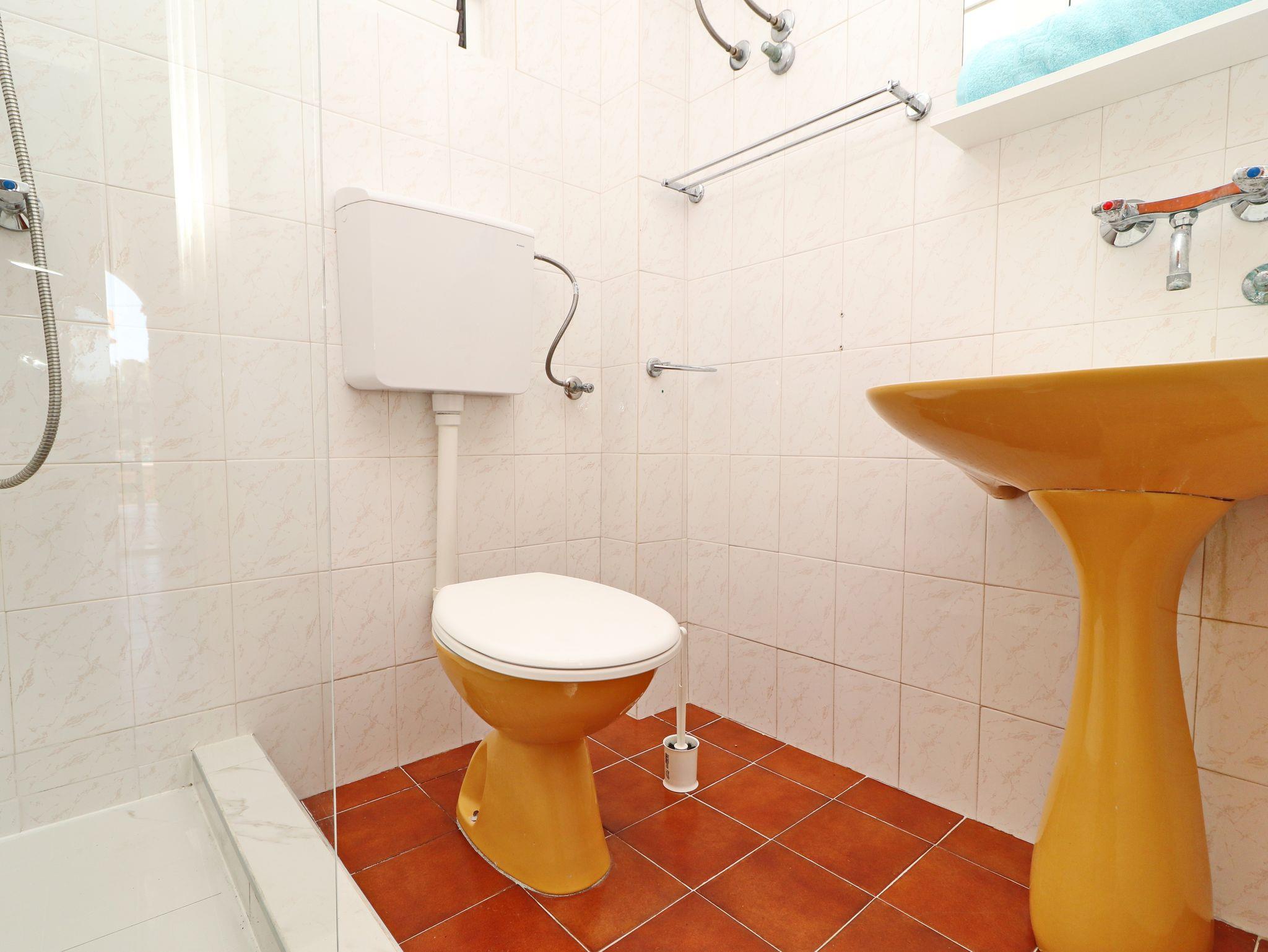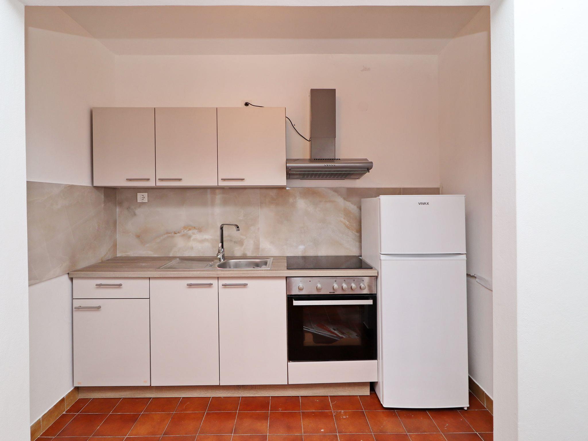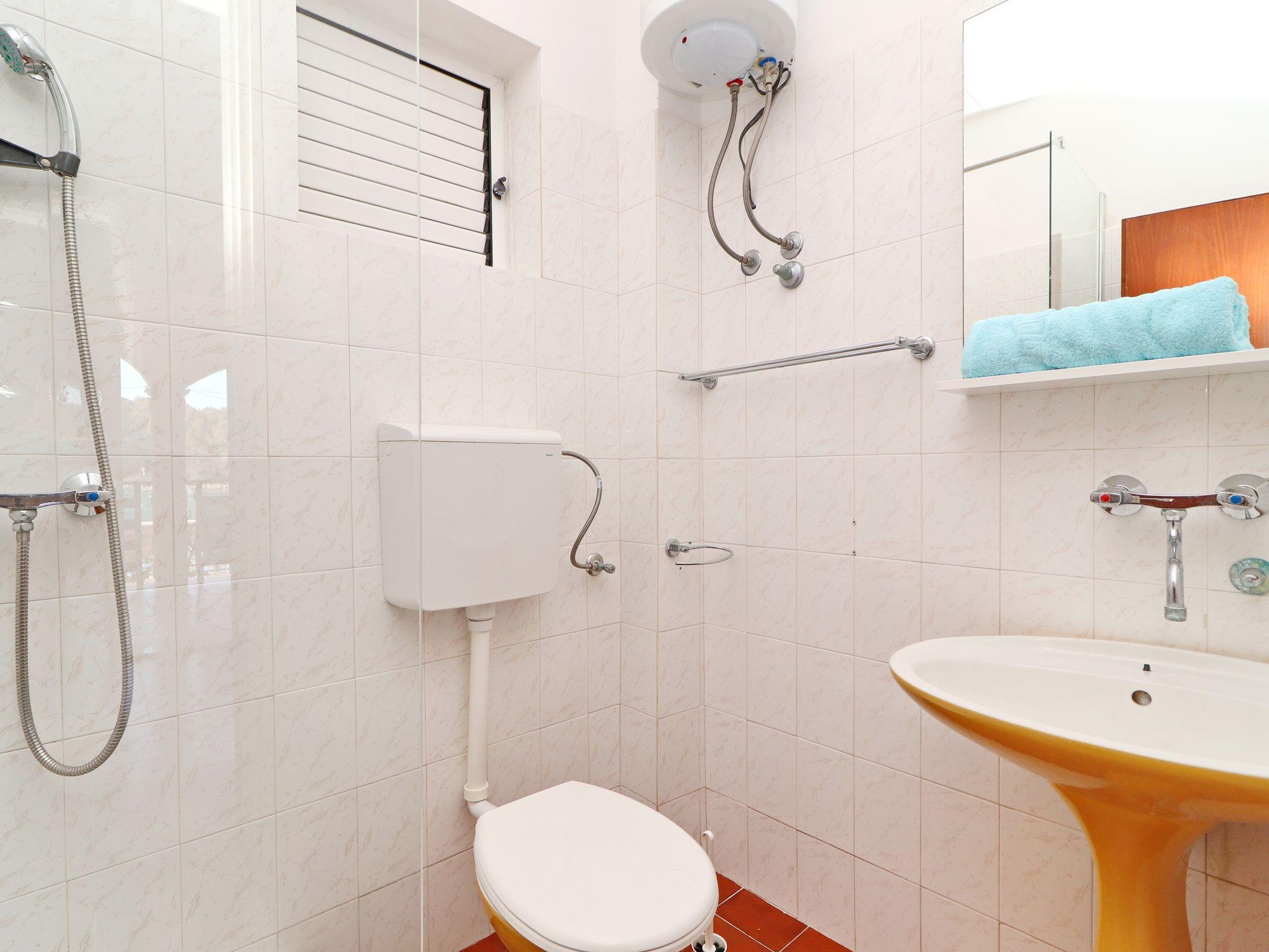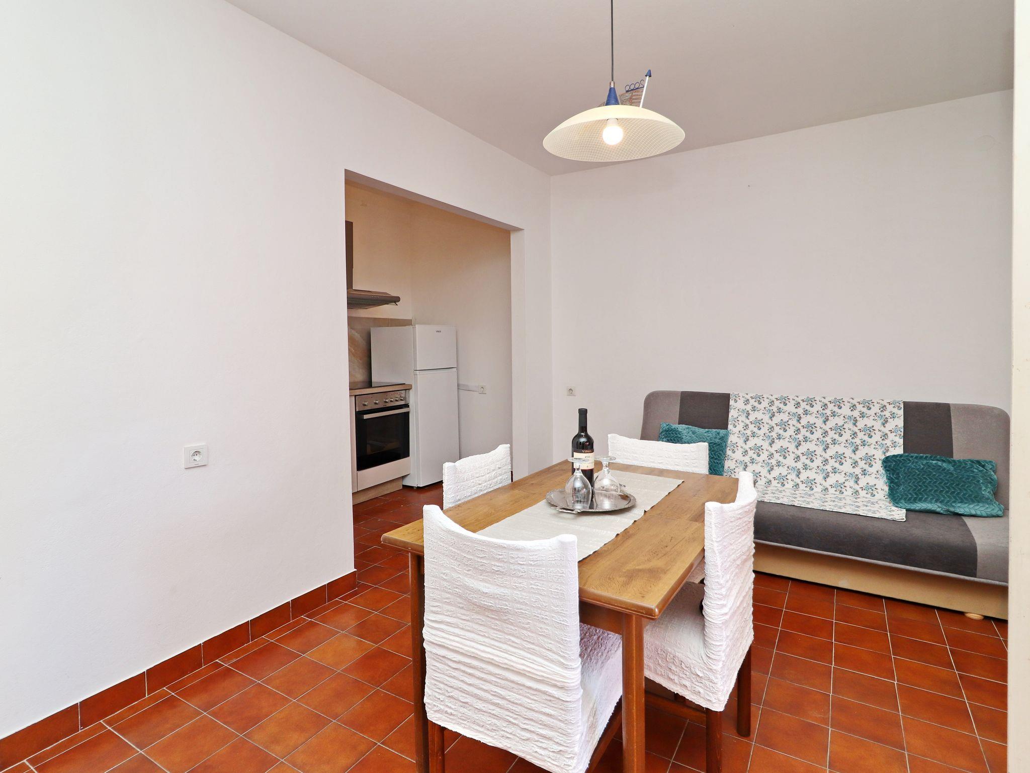 Ferienwohnung bietet Platz für 4 Gäste. Die Betten sind in Schlafzimmern, die es 2 gibt, innerhalb einer Gesamtfläche von 44m2, angeordnet. Die Gäste haben eine eigene Terrasse zur Verfügung, auf der sie in warmen Sommernächten genießen können. Das Apartment bietet Meerblick. Es ist erlaubt, Speisen auf dem Gemeinschafts-Grill vorzubereiten. IM PREIS INBEGRIFFEN: Kurtaxe, Endreinigung, Klimatisierung, Parkplatz, Internet, Kinderbett, Bügeleisen, Bügelbrett, Föhn, Sonnenschirm. VERBINDLICHE ZUSÄTZLICHE KOSTEN: Aufzahlung für Kurzaufenthalte (prozentualer Zuschlag pro Nächtigungsanzahl: 30% - 1, 20% - 2, 10% - 3). Die Verfügbarkeit zusätzlicher Dienstleistungen in Ihrem reservierten Termin und die Preise derselben (falls nicht aufgeführt) müssen im Voraus überprüft werden. Zusätzliche Dienstleistungen die in der Zahlungsaufforderung nicht aufgeführt sind werden direkt beim Vermieter bezahlt, angenommen der Gast nutzt auch diese. Ermäßigung auf den Grundpreis: Gratistag 21=19 (bei einem Aufenthalt von 21 Tagen oder mehr erhalten Sie 2 Gratistage für den Aufenthalt bis 31.12.26).